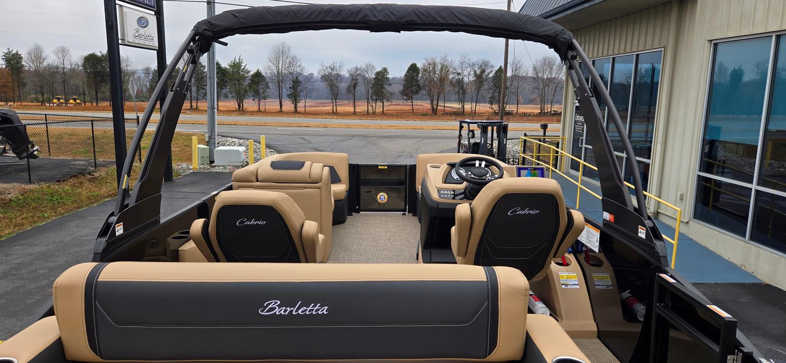 Step aboard and discover a world of thoughtful features and premium materials. The Railskin Color in Gray Moonstone, accented by Black Diamond, gives the exterior a sophisticated, modern appeal. The Blackout Package Cabrio adds a touch of elegance and exclusivity, ensuring your pontoon stands out wherever you go.Inside, the furniture is upholstered in Carmella Tan with Onyx accents, creating a warm and inviting atmosphere. The Amore Tan flooring is both stylish and practical, providing comfort underfoot and easy maintenance. The Triple Toon Package with midship storage on the Cabrio model offers enhanced stability and extra space for all your gear, making it easy to keep the deck clutter-free.For sun protection and relaxation, the Sport Bimini provides ample shade, allowing you to enjoy long days on the water in comfort. The on-board battery charger with two batteries ensures you have reliable power for all your electronic needs, so you can focus on fun without interruption.