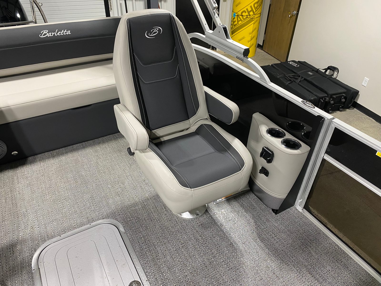 The Barletta Cabrio C22UC is loaded with features that set it apart from other pontoon boats for sale. The Black Diamond Railskin color gives the boat a modern and striking appearance, while the Marquesan Gray with Onyx furniture provides a plush and inviting seating area for all your guests. The Amore Gray flooring is both attractive and practical, designed to withstand the elements and provide a comfortable surface underfoot.The Triple Toon Package with Midship Storage not only improves the boat’s performance but also offers convenient storage solutions for your gear and essentials. The Mercury (M) 150L Four Stroke engine ensures reliable power, and the Mercury - Mechanical controls make operation straightforward and enjoyable. The Drop Ship Engine - NO PROP configuration allows for customization based on your preferences.For those who appreciate the finer details, the Barletta Cabrio C22UC includes a stainless steel flag pole with an American flag, adding a patriotic touch to your boating experience. The exterior lighting features white underdeck and underwater lights, creating a captivating ambiance during evening cruises. Inside, the RGB Lighting Package allows you to set the mood with customizable colors, making every outing unique and memorable.