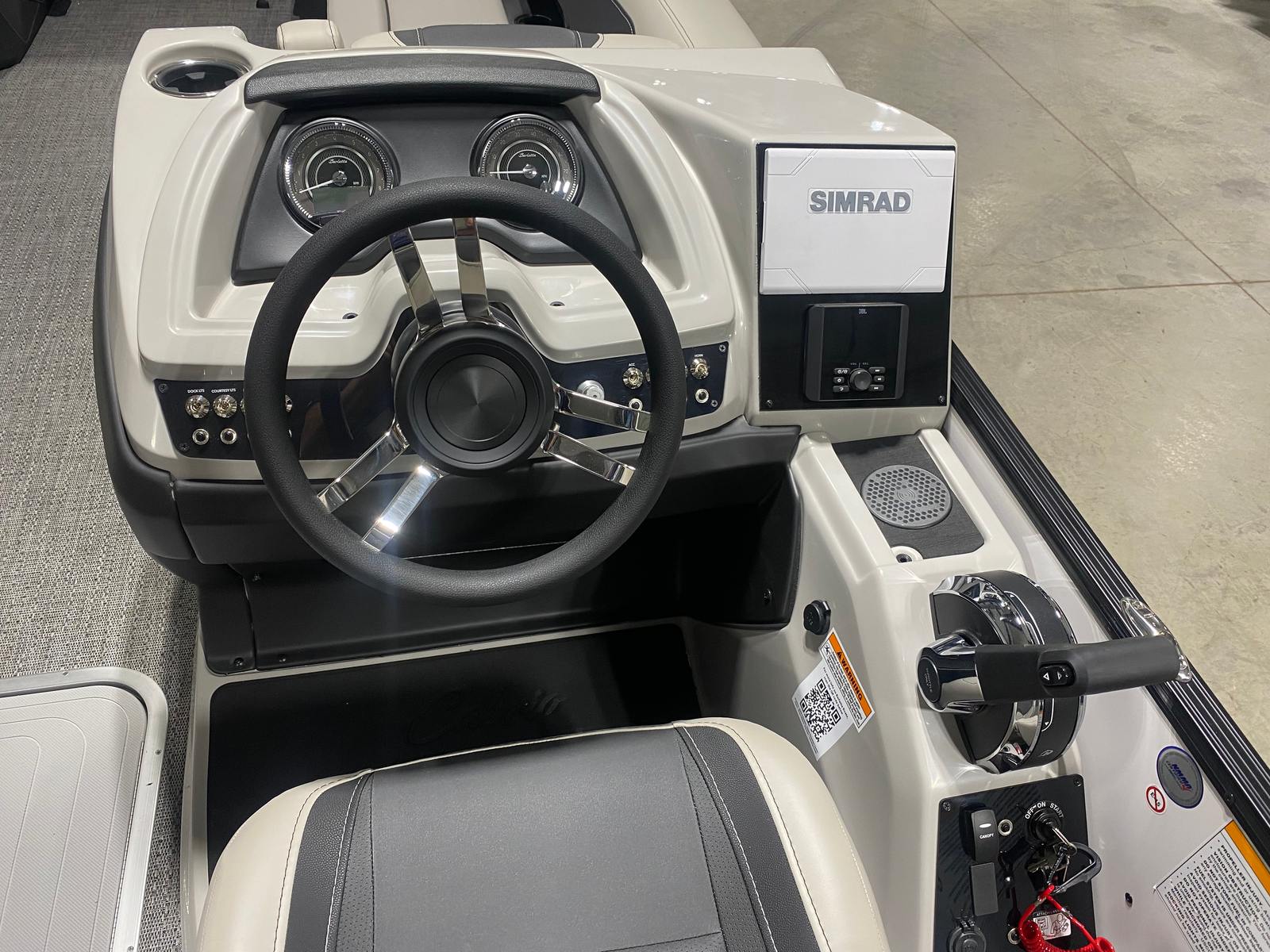Powering the Barletta Cabrio C24Q is a robust Mercury (M) 200L FourStroke engine, delivering an impressive 200 horsepower. This single-engine setup ensures smooth acceleration, reliable performance, and efficient cruising, making it ideal for both leisurely cruises and more spirited rides across the lake. The Mercury pre-rig mechanical system with power assist enhances maneuverability, allowing you to navigate with confidence and ease. Whether you are gliding through calm waters or picking up speed for a thrilling ride, the Cabrio C24Q’s performance capabilities ensure a responsive and enjoyable boating experience.