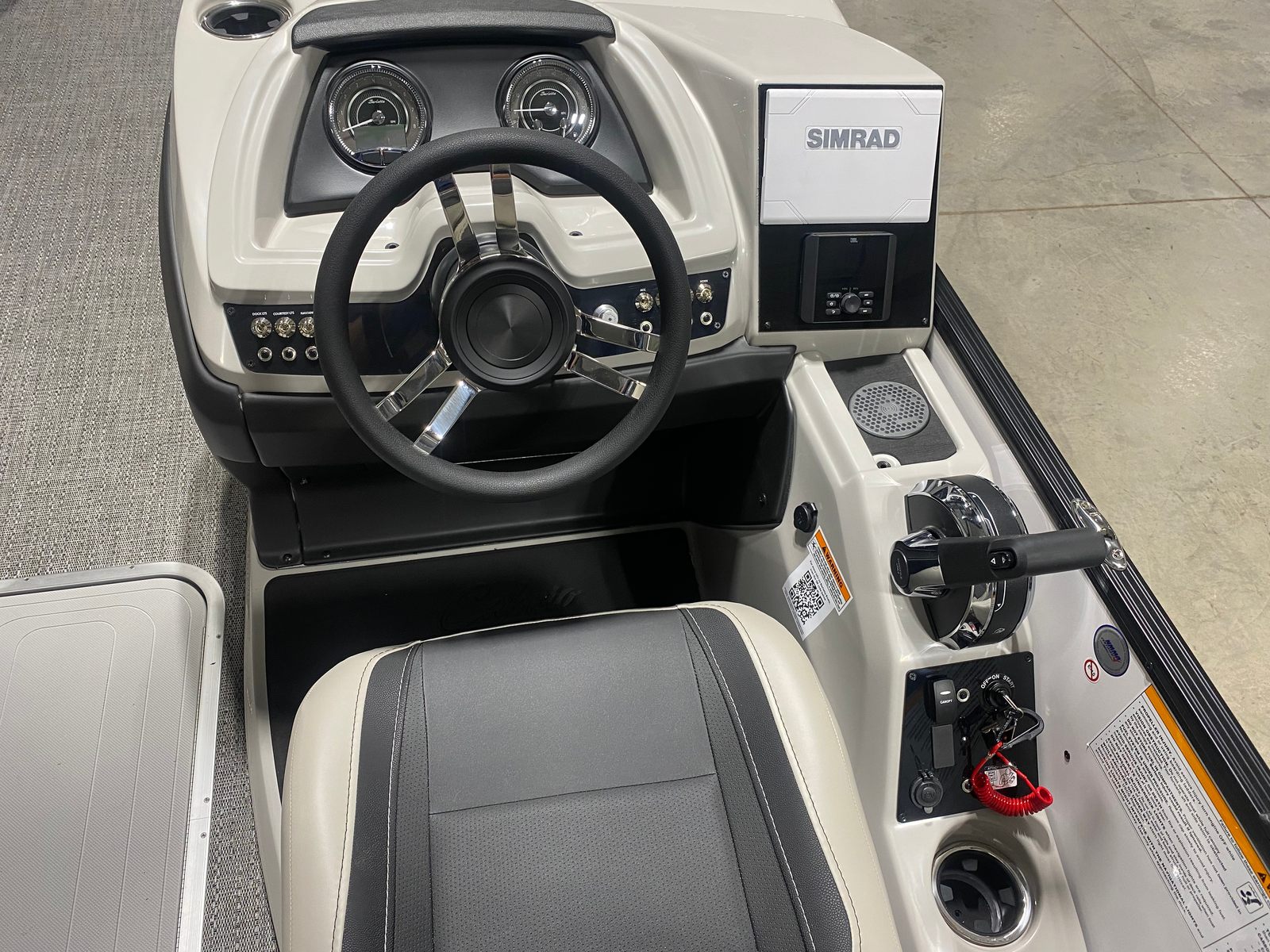 The Barletta Cabrio C24Q is designed with practicality in mind, making ownership as enjoyable as it is convenient. The midship storage compartment is perfect for stowing away life jackets, water toys, and other essentials, keeping the deck tidy and maximizing your usable space. The intuitive mechanical pre-rig with power assist makes docking and maneuvering a breeze, even for less experienced boaters.Fuel efficiency is another key advantage of the Cabrio C24Q, thanks to the advanced Mercury FourStroke engine. Spend more time on the water and less time at the fuel dock, making every outing more enjoyable and cost-effective. The durable flooring and high-quality upholstery are easy to clean and maintain, ensuring your pontoon looks great season after season.