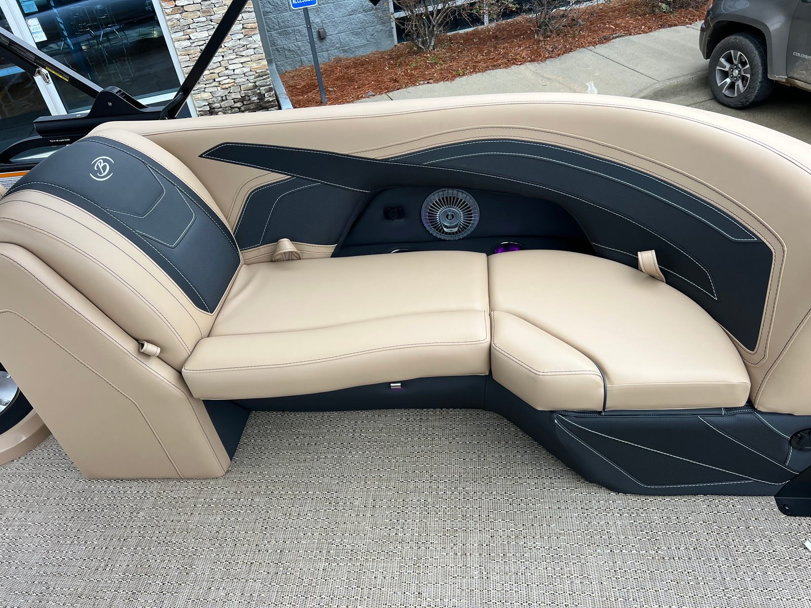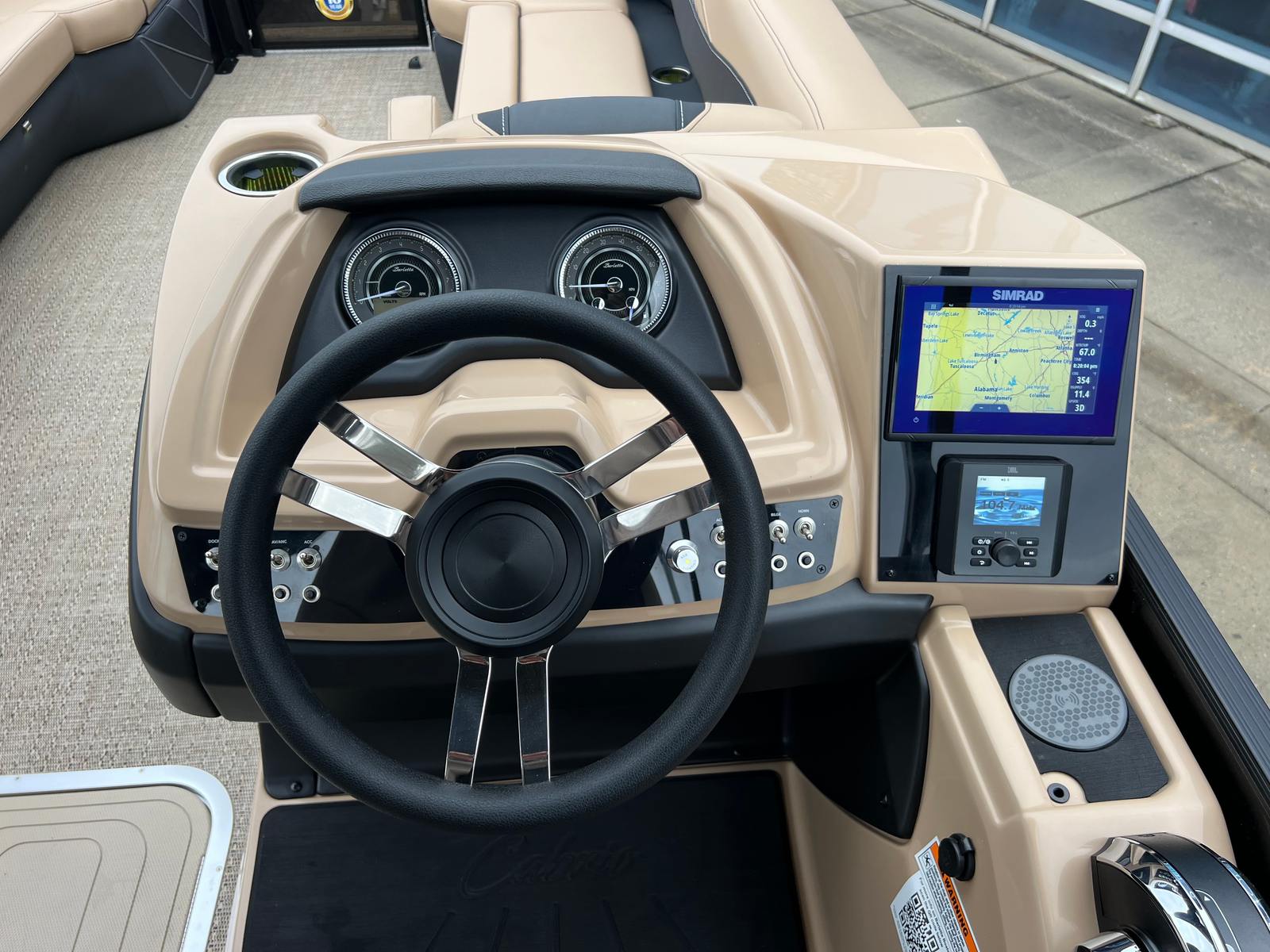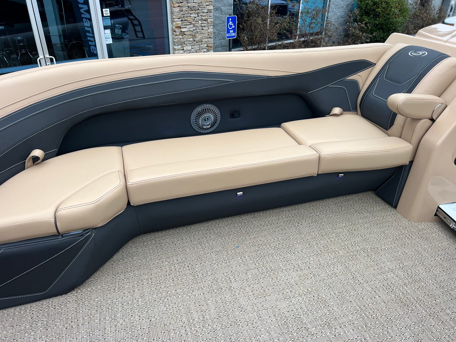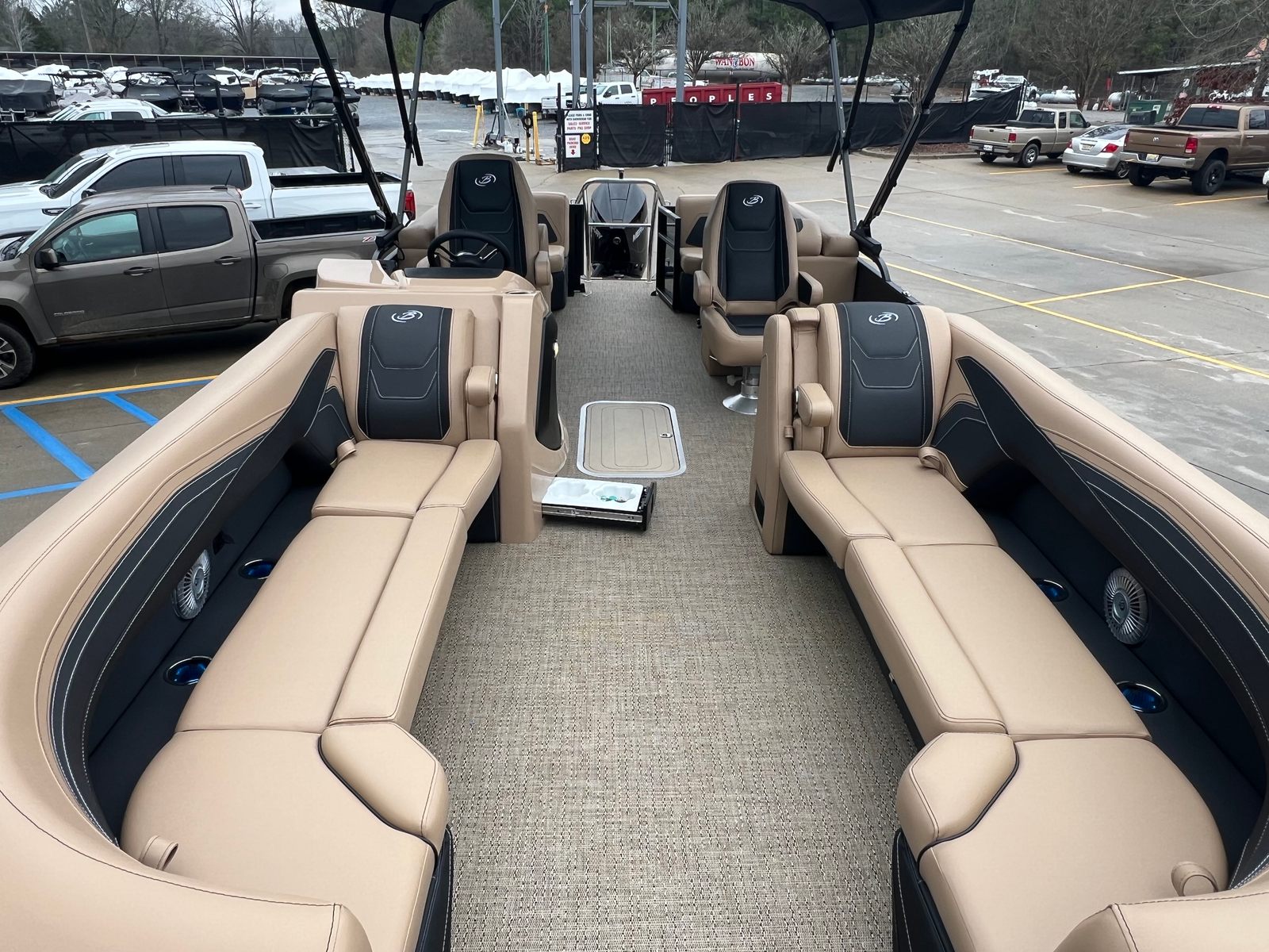 The 2026 Barletta Cabrio C24QC is a new pontoon boat that stretches an impressive 25 feet in length, offering ample space for entertaining, lounging, and enjoying the open water. Barletta’s renowned craftsmanship is evident in every detail, from the elegant Carmella Tan with Onyx furniture to the stylish Amore Tan flooring. This pontoon is engineered for those who demand both comfort and performance, making it a top contender among luxury pontoons on the market.