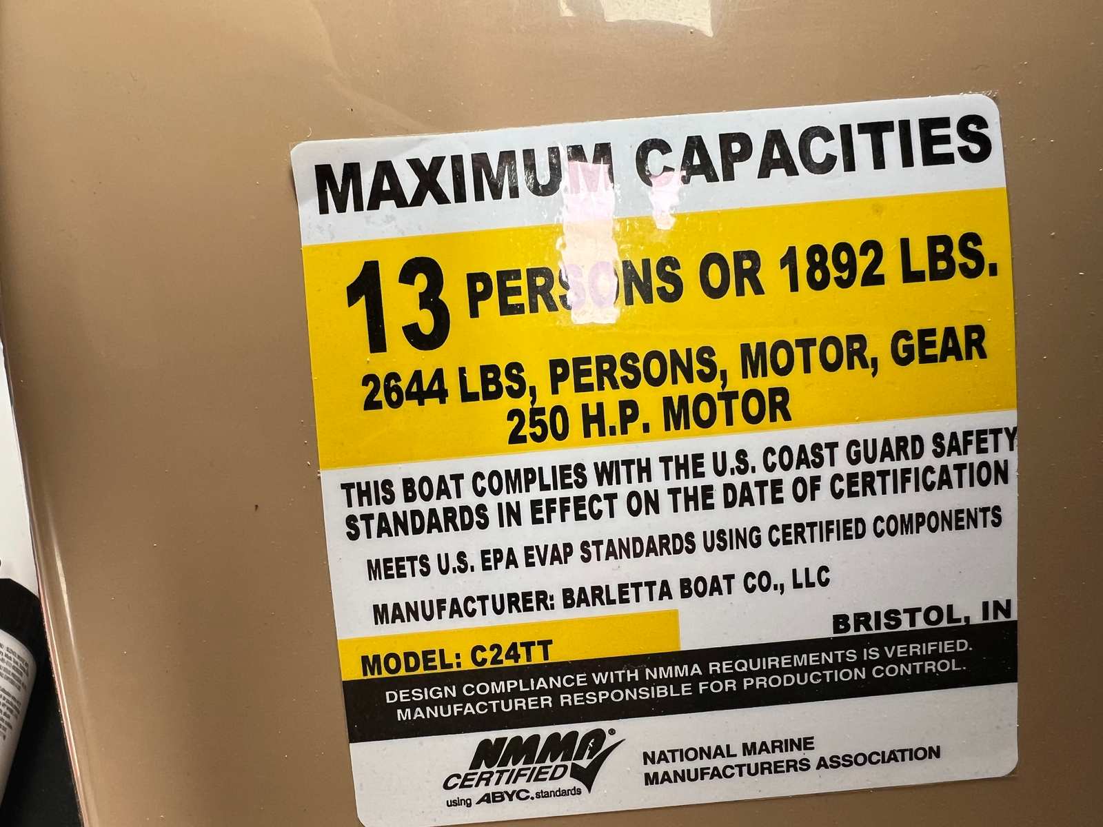 The Barletta Cabrio C24QC is loaded with features that set it apart from other pontoon boats for sale. The Black Diamond Railskin color, paired with the Blackout Package, gives this pontoon a bold, modern look that is sure to turn heads at the marina. Inside, the Carmella Tan with Onyx furniture offers plush seating and a sophisticated aesthetic, while the Amore Tan flooring provides a comfortable, slip-resistant surface underfoot.The triple toon package with midship storage not only improves performance but also adds valuable storage space for gear, water toys, and personal items. The onboard battery charger with two batteries ensures you have reliable power for all your electronics and accessories, while the metal jacket protectant helps keep your pontoon looking pristine season after season. A stainless steel flag pole with an American flag adds a patriotic touch, perfect for holiday weekends and special occasions.
