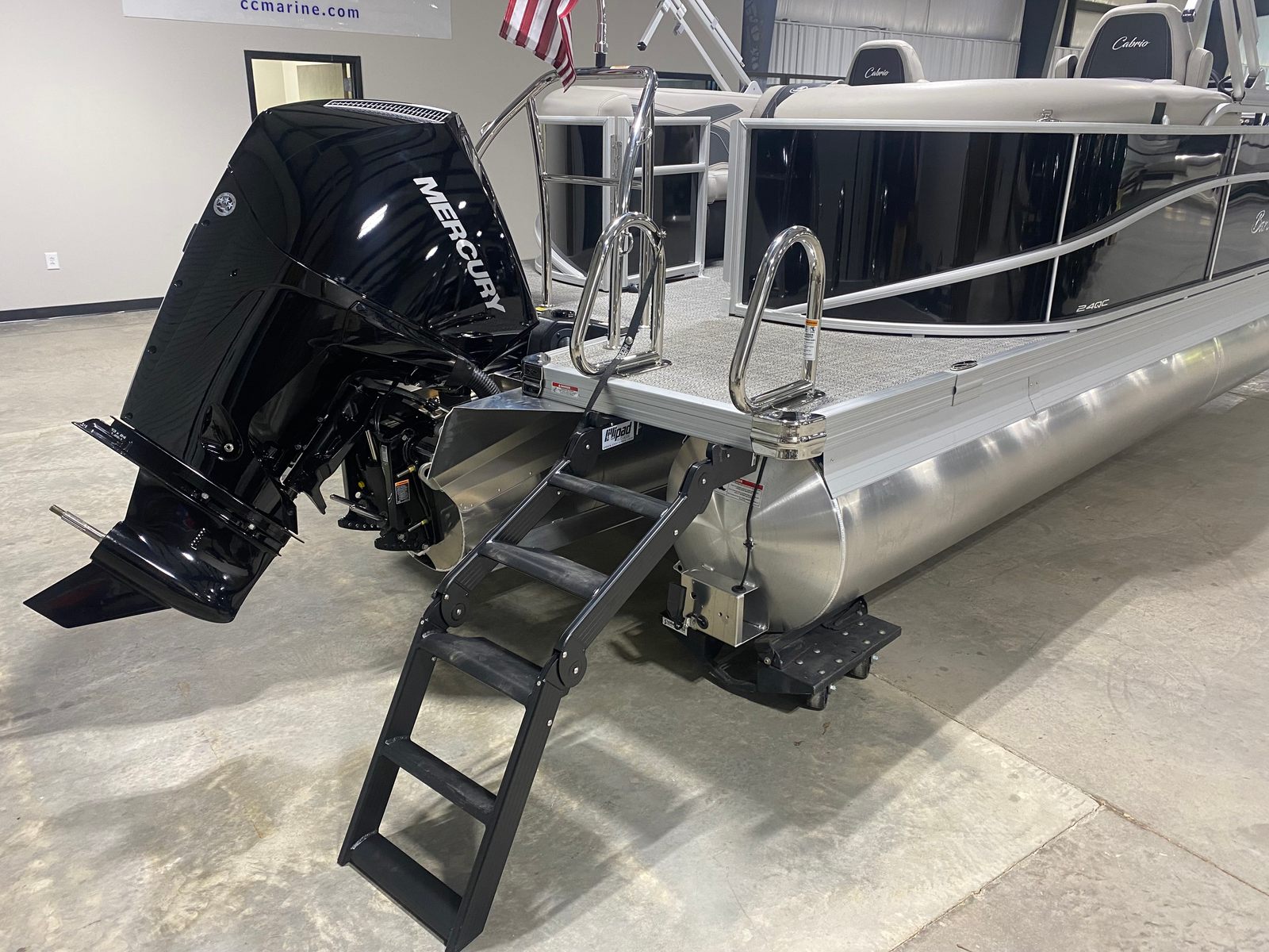 Powering the Cabrio C24QC is a robust Mercury 200L FourStroke engine, delivering an impressive 200 horsepower. This single-engine setup provides smooth, reliable performance whether you’re cruising across the lake or heading out for a day of watersports. The Mercury FourStroke is renowned for its fuel efficiency and quiet operation, allowing you to enjoy the serenity of the water without sacrificing power. The Pre-Rig: Mercury - Mechanical with Power Assist (200HP) ensures effortless handling and precise control, making docking and maneuvering a breeze even for novice boaters. The Triple Toon Package with Midship Storage further enhances stability and ride quality, so you can navigate choppy waters with confidence.