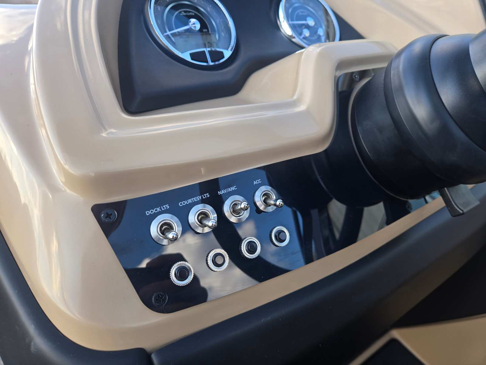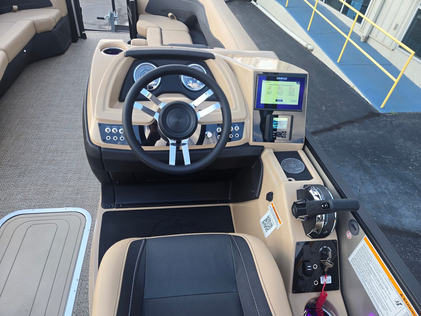 The 2026 Barletta Cabrio C24QC is loaded with premium features that set it apart from other pontoon boats for sale. The Black Diamond Railskin with Champagne accent creates a striking visual profile, while the Blackout Package Cabrio adds a modern, upscale touch. The Carmella Tan with Onyx furniture is both stylish and comfortable, offering plush seating for you and your guests. The Amore Tan flooring is not only attractive but also easy to maintain, ensuring your boat looks great season after season.The Triple Toon Package with midship storage provides enhanced stability and extra space for storing water toys, life jackets, and other essentials. The Mercury 250L FourStroke engine is pre-rigged with mechanical controls and power assist, making operation smooth and intuitive. The stainless steel prop is built for performance and longevity, while the Sport Bimini offers shade and protection from the sun, allowing you to enjoy long days on the water in comfort.