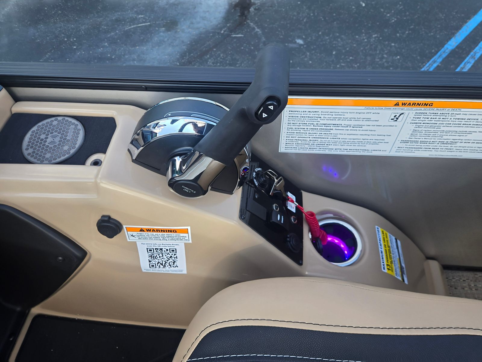 Under the hood, the Barletta Cabrio C24QC is powered by a Mercury (M) 250L FourStroke engine, delivering an impressive 250 horsepower. This single-engine setup is engineered for smooth, reliable, and efficient performance, whether you are cruising at a leisurely pace or picking up speed for watersports. The pre-rigged Mercury mechanical system with power assist ensures effortless handling and responsive steering, making it easy for both seasoned boaters and newcomers to navigate with confidence. The stainless steel prop enhances durability and performance, providing optimal thrust and efficiency on the water. With the Triple Toon Package and midship storage, this pontoon is designed for stability, agility, and plenty of room for all your gear.