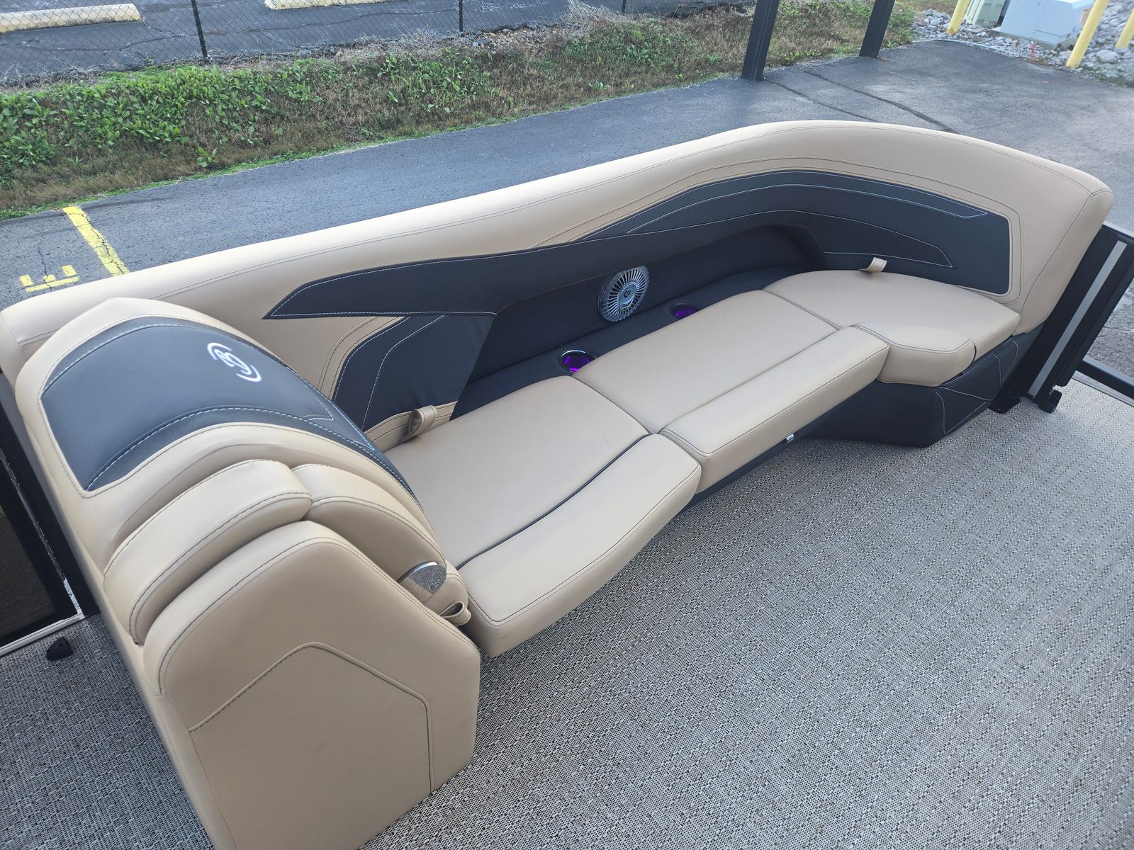The 2026 Barletta Cabrio C24QC is a 25-foot pontoon boat that stands out for its modern design and attention to detail. With a length of 25.17 feet, this pontoon offers ample space for socializing, lounging, and making memories on the water. The sleek Railskin Color in Black Diamond, accented with Champagne, gives the Cabrio C24QC a sophisticated and eye-catching appearance. The Blackout Package Cabrio adds a touch of elegance and exclusivity, ensuring that this Barletta boat for sale turns heads wherever it goes. The Carmella Tan with Onyx furniture and Amore Tan flooring create a warm and inviting atmosphere, making every outing feel like a special occasion.