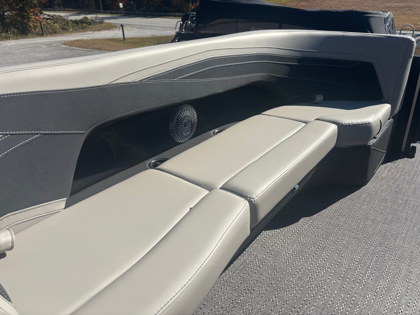 The 2026 Barletta Cabrio C24QC is packed with special features that elevate your boating experience. The Railskin Packages include the striking Blackout Package Cabrio, complemented by a Champagne color accent and Bohemian Blue railskin color, giving the exterior a sophisticated and modern look. A stainless steel flag pole with an American flag adds a touch of patriotism and style, making your boat stand out on the water.Inside, the Marquesan Gray furniture with Onyx accents creates a chic and inviting atmosphere, perfect for relaxing or entertaining guests. The Amore Gray flooring is both elegant and practical, designed to withstand the rigors of active days while maintaining a luxurious feel underfoot. The interior RGB lighting package allows you to set the mood for any occasion, whether it’s a sunset cruise or a lively evening celebration.For those who value storage and convenience, the Triple Toon Package with midship storage ensures ample space for all your gear, water toys, and essentials. This thoughtful design feature keeps the deck clutter-free and your belongings secure, so you can focus on enjoying your time on the water.