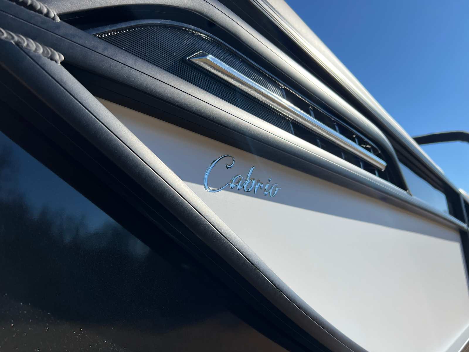 Step aboard the Barletta Cabrio C24U and you are greeted by a luxurious interior featuring Carmella Tan furniture with Onyx accents, creating an inviting and upscale atmosphere. The Amore Tan flooring not only adds to the visual appeal but also provides a comfortable and slip-resistant surface underfoot. The Blackout Package Cabrio, combined with the Black Diamond railskin and Winter White accent, gives this pontoon a distinctive and sophisticated look. The Triple Toon Package with midship storage offers ample space for stowing gear, water toys, and other essentials, keeping the deck uncluttered and organized. The boat is protected with Metal Jacket Protectant, ensuring its finish remains pristine and resistant to the elements.