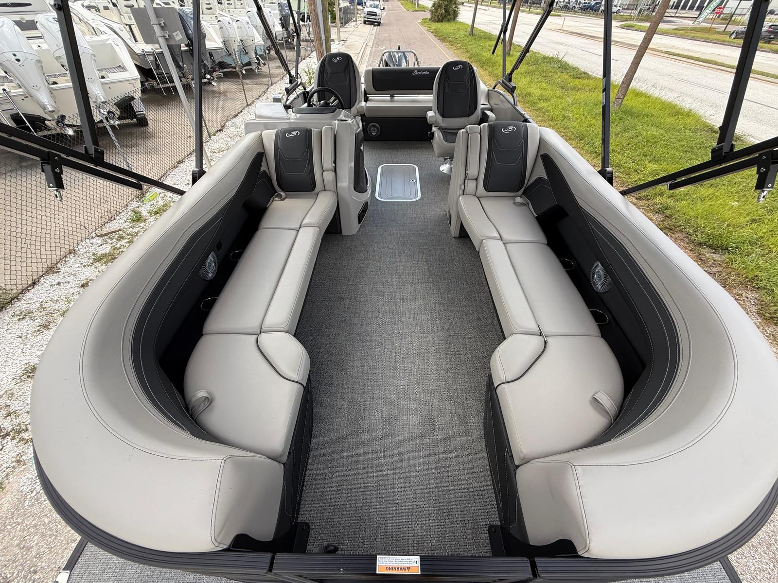 The Barletta Cabrio C24UC is as practical as it is luxurious. The midship storage provided by the Triple Toon Package makes it easy to stow water toys, fishing gear, or picnic supplies, keeping the deck clutter-free and organized. The boat’s length and design make docking straightforward, while the hydraulic and power assist steering allow for precise movements in tight spaces. Fuel efficiency is enhanced by the advanced Mercury Verado V8 engine, helping you make the most of every outing without frequent stops at the pump. The durable construction and high-quality materials ensure that your investment will stand the test of time, providing years of enjoyment and minimal maintenance.