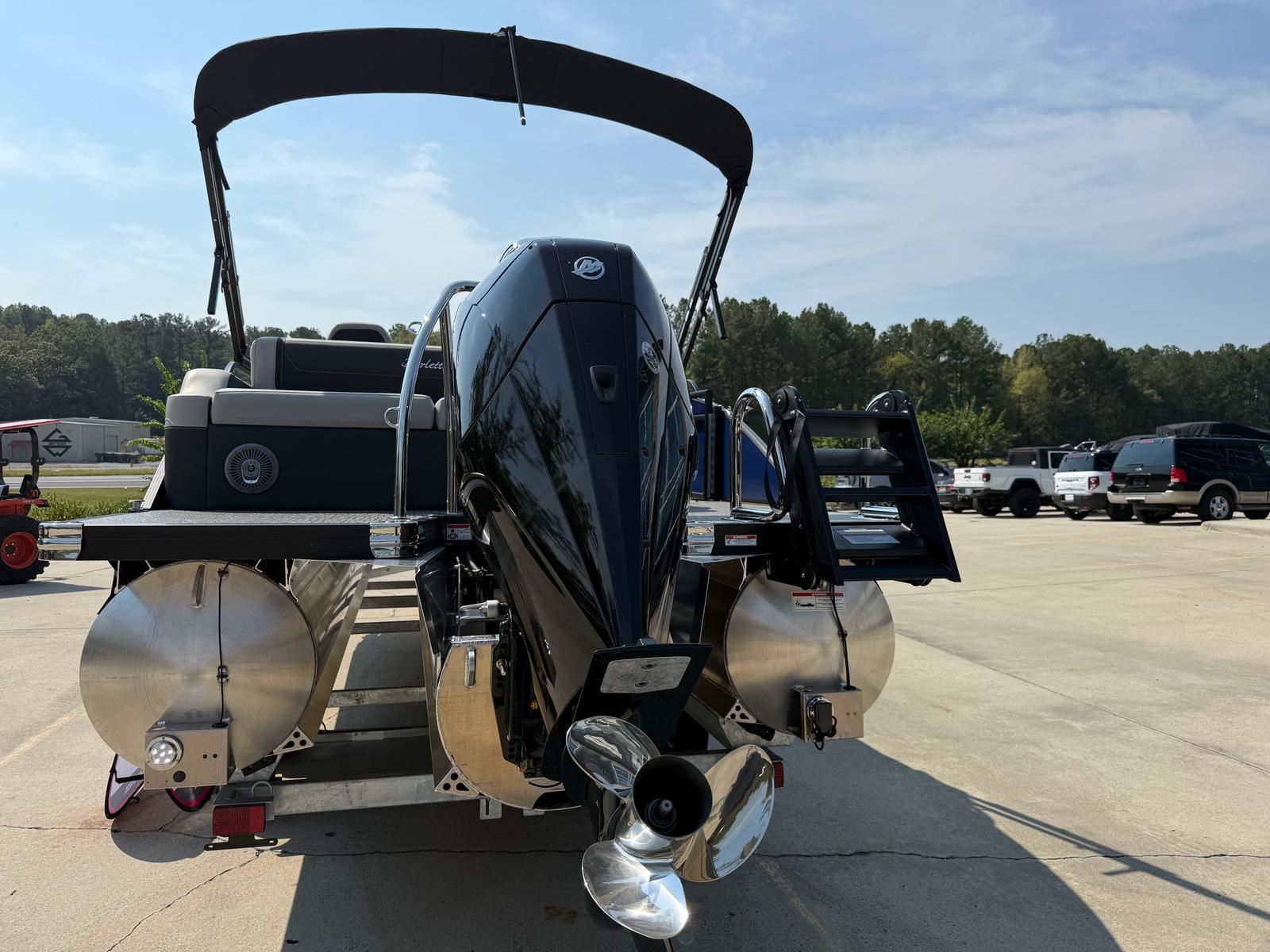 Powering the Barletta Cabrio C24UC is a robust Mercury (M) 250L FourStroke engine, delivering a thrilling 250 horsepower. This single-engine setup is expertly pre-rigged with Mercury mechanical controls and power assist, ensuring smooth and responsive handling whether you’re cruising at a leisurely pace or pushing the throttle for a burst of speed. The stainless steel prop enhances efficiency and durability, while the triple toon package with midship storage provides superior stability and buoyancy, allowing for confident navigation in various water conditions. With this level of performance, you’ll enjoy effortless acceleration, reliable power, and a smooth ride every time you hit the water.