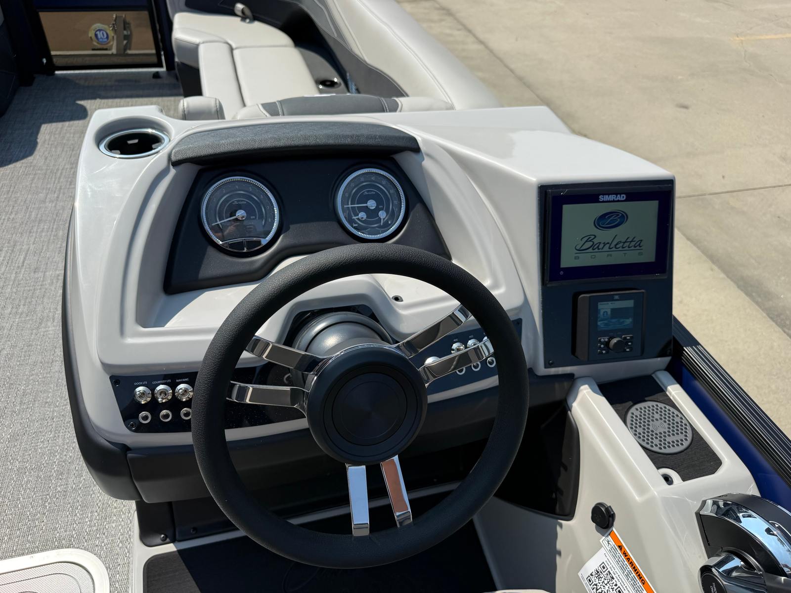 The 2026 Barletta Cabrio C24UC pontoon stretches an impressive 25.17 feet in length, offering ample space for passengers to relax, socialize, and enjoy the open water. Its sleek profile is accentuated by the Gray Moonstone railskin color, complemented by a Bohemian Blue accent, giving this pontoon a modern and sophisticated look that turns heads at every marina. The Blackout Package Cabrio adds a touch of elegance and exclusivity, ensuring your boat stands out from the crowd. With its new condition, you can be confident that every detail is pristine and ready for your next adventure.
