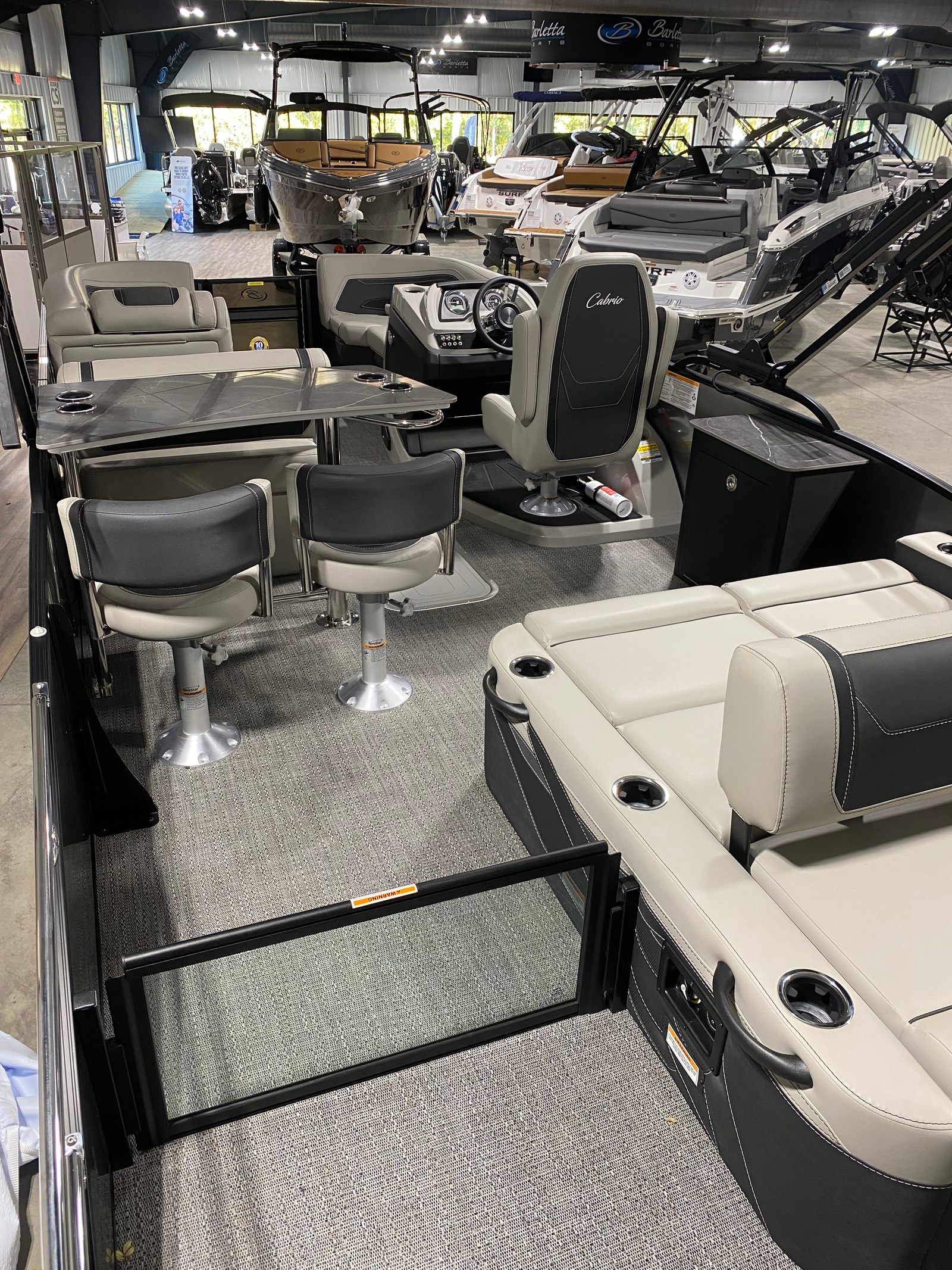 At the heart of the Cabrio C24UE is a powerful Mercury 200L FourStroke engine, delivering 200 horsepower for smooth, responsive handling and exhilarating speed. Whether you’re cruising leisurely or heading out for a day of watersports, this engine provides the perfect balance of efficiency and performance. The Pre-Rig Mercury mechanical system with power assist ensures effortless control, making docking and maneuvering a breeze. With the Triple Toon Package featuring midship storage, this Barletta boat for sale offers enhanced stability and buoyancy, allowing you to glide across the water with confidence and comfort.