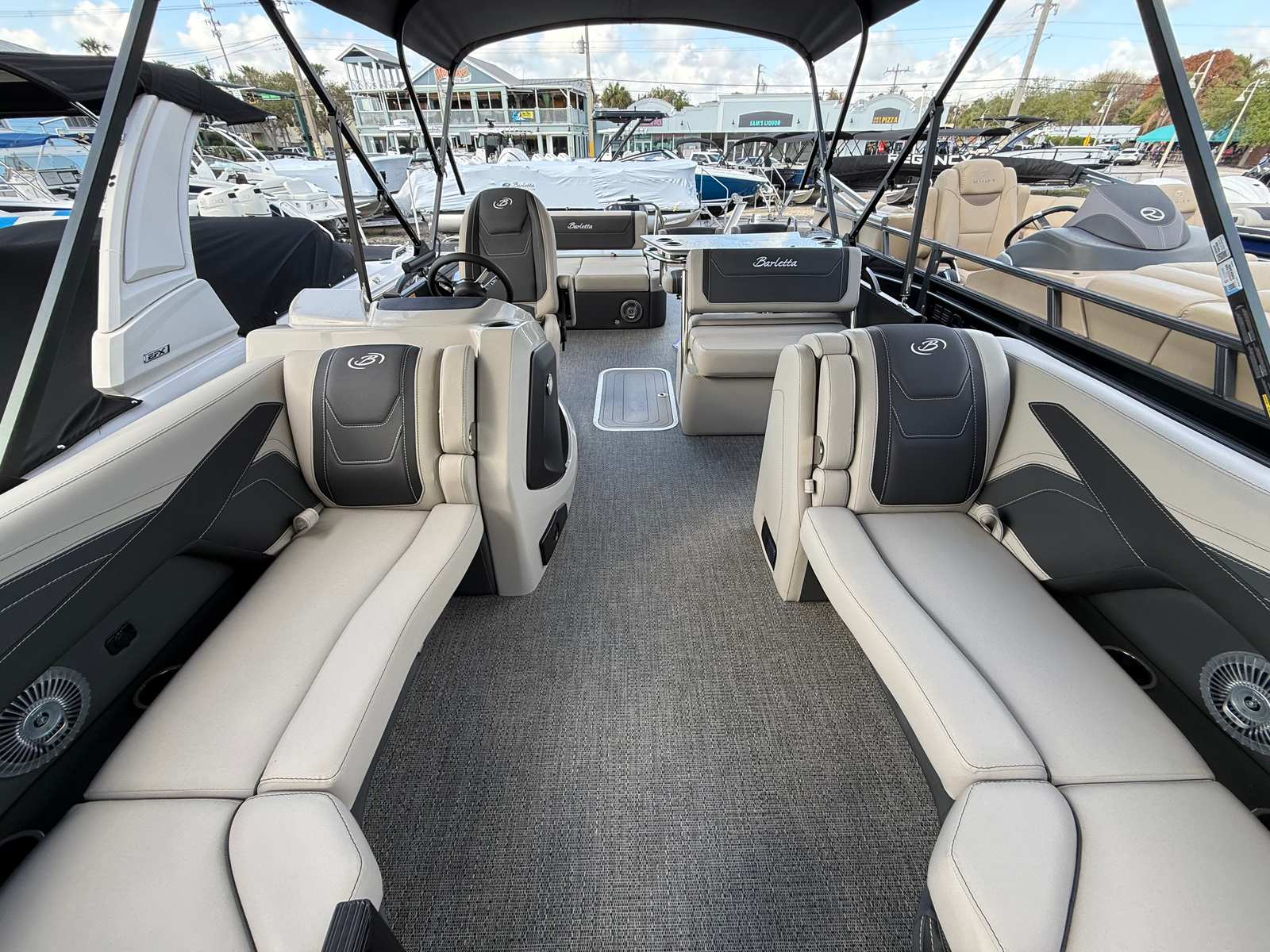 Owning the Barletta Cabrio C24UE means embracing a lifestyle of fun, relaxation, and unforgettable memories. This pontoon boat is designed for comfort and socializing, with spacious seating and a thoughtfully arranged deck that encourages conversation and connection. Whether you’re hosting a sunset cruise, enjoying a picnic on the water, or simply lounging with friends, the Cabrio C24UE offers the perfect setting.The plush Marquesan Gray with Onyx furniture invites you to sink in and relax, while the Amore Gray flooring is both stylish and easy to maintain. The double bimini canvas ensures you and your guests stay cool and protected from the sun, so you can make the most of every moment on the water.