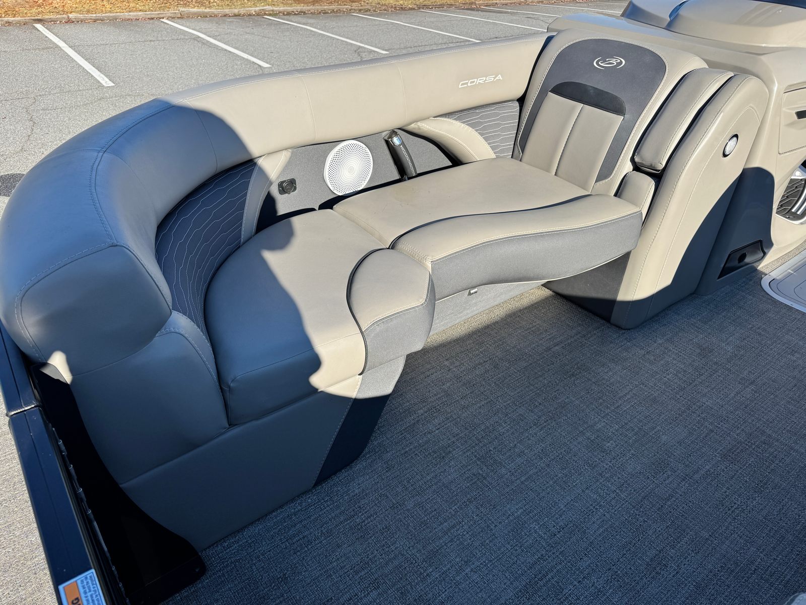The 2023 Barletta Corsa 23UCA is thoughtfully designed to maximize comfort, convenience, and enjoyment. Its 25-foot length provides ample space for socializing, sunbathing, or simply relaxing with your favorite people. The pontoon’s layout is optimized for versatility, making it easy to transition from a lively party atmosphere to a tranquil retreat. High-quality materials and finishes throughout the boat ensure durability and a premium feel, while the ergonomic seating arrangements offer exceptional comfort for long days on the water. Every detail, from the stylish helm to the spacious deck, is crafted to enhance your boating experience and make every outing memorable.