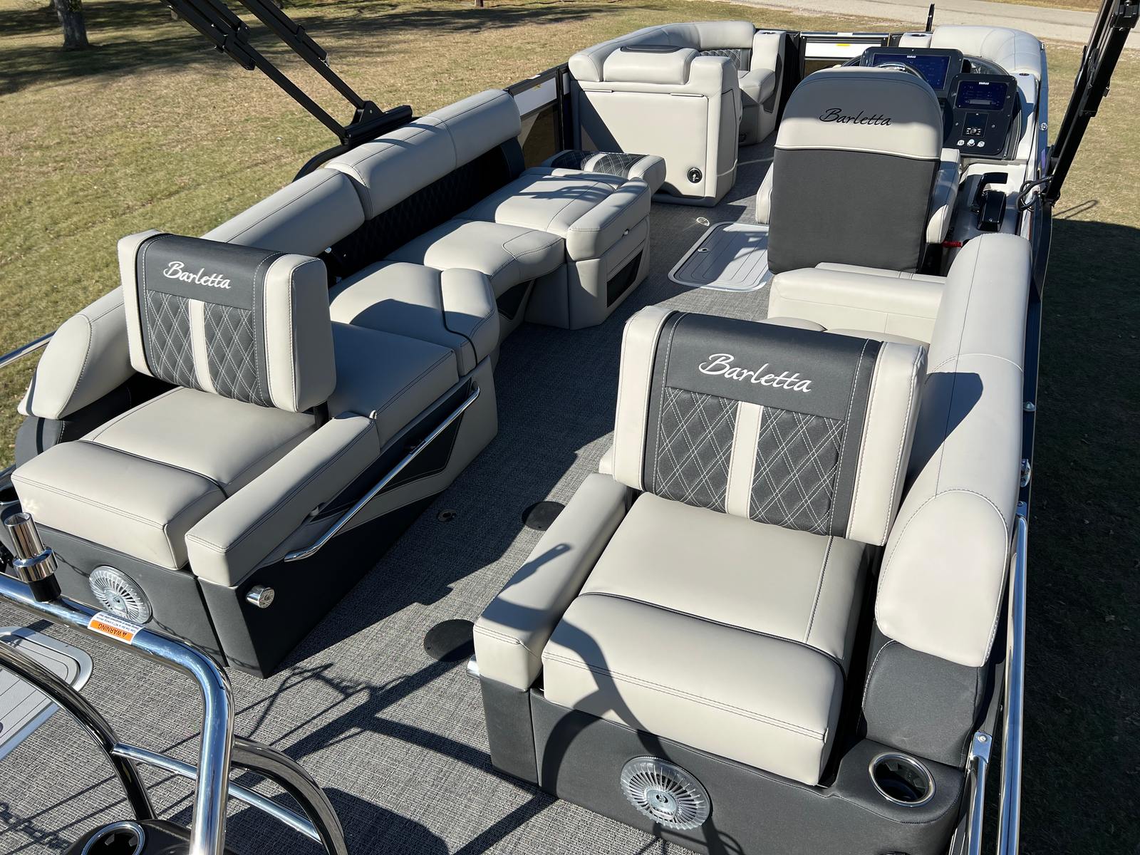 In summary, the 2026 Barletta Lusso L23M is a top-tier pontoon boat for sale that combines luxury, performance, and practicality in one stunning package. With its striking design, advanced Mercury engine, and a host of premium features—including the Winter White and Pacific Matte Blue color scheme, Blackout Package Lusso railskin, Marquesan Gray with Onyx furniture, Amore Gray flooring, Mercury Digital DTS Pre-Rig, hydraulic and power assist steering, digital gauges, stainless steel prop, onboard battery charger, and Metal Jacket Protectant—this Barletta boat for sale is ready to elevate your boating lifestyle. Discover the joy of owning a Barletta Lusso L23M and make every day on the water an extraordinary adventure. Contact your local dealer today to learn more about this exceptional pontoon boat and start planning your next unforgettable journey.