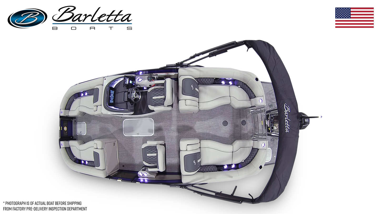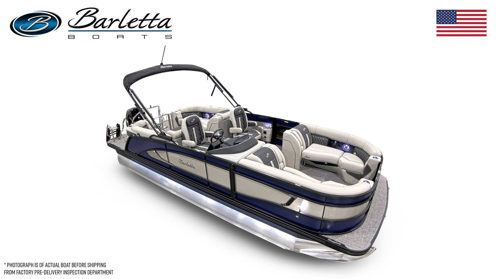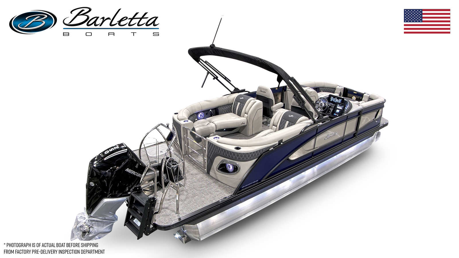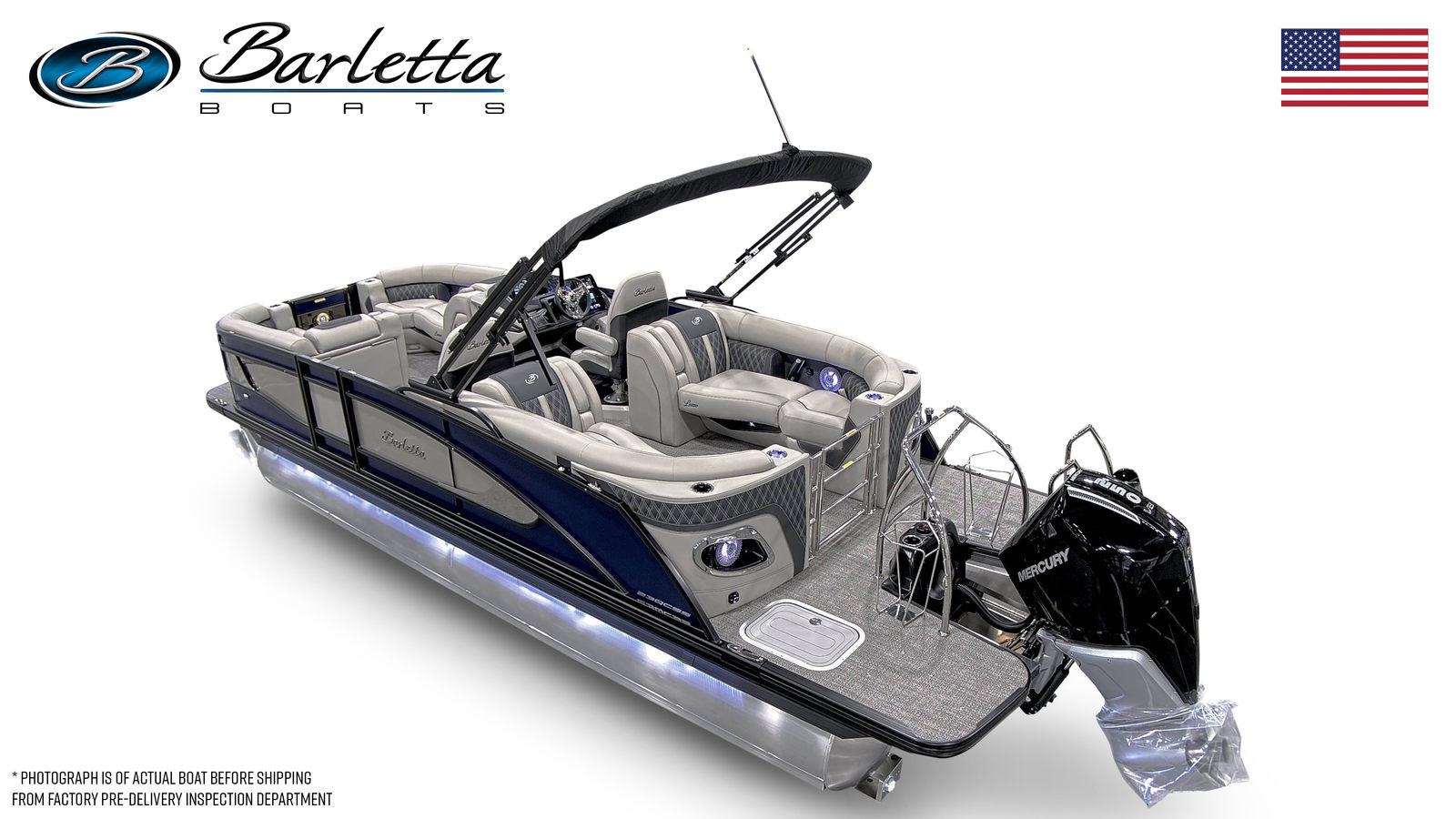 In summary, the 2026 Barletta Lusso L23QCSS is a premier pontoon boat for sale that blends luxury, performance, and practicality in one stunning package. With its powerful Mercury Verado V8 engine, striking Bohemian Blue and Champagne color scheme, Blackout Package Lusso railskin, Marquesan Gray with Onyx furniture, Amore Gray flooring, and captivating white underdeck and underwater lighting, this pontoon is designed to impress both on and off the water.Whether you are seeking adventure, relaxation, or the perfect setting for social gatherings, the Barletta Lusso L23QCSS delivers an unparalleled boating experience. Don’t miss your chance to own this exceptional Barletta boat for sale – contact your local dealer today to learn more and start your journey toward unforgettable days on the water.