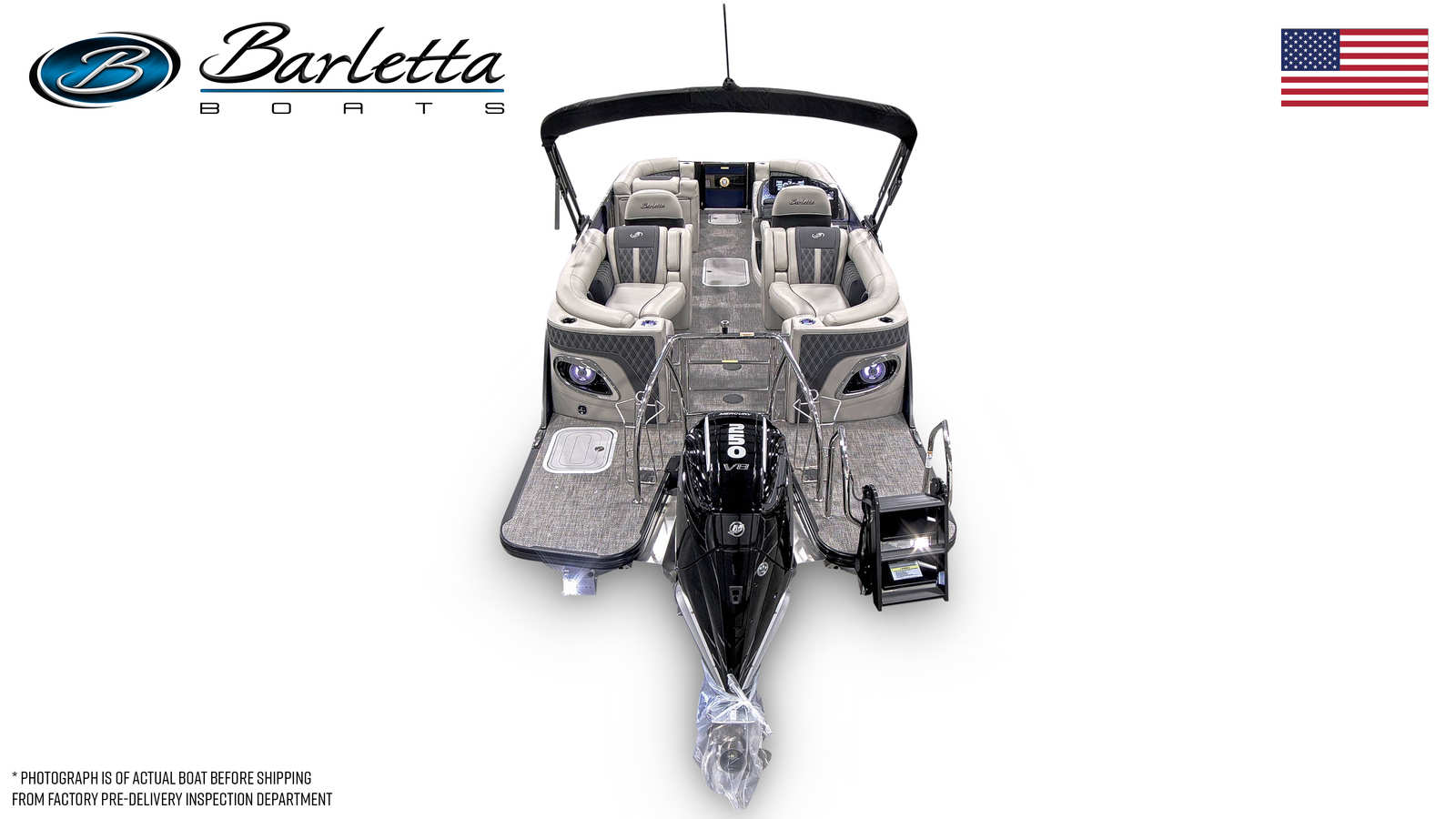 The Barletta Lusso L23QCSS is loaded with premium features that elevate comfort, style, and convenience. The Blackout Package Lusso railskin adds a sophisticated, modern touch to the exterior, perfectly complementing the Bohemian Blue and Champagne color scheme. Inside, the Marquesan Gray furniture with Onyx accents creates a refined and inviting atmosphere, while the Amore Gray flooring provides both durability and elegance underfoot.For those who appreciate ambiance, the exterior lighting package includes white underdeck and underwater lights, transforming evening cruises into magical experiences. The Mercury Digital DTS Pre-Rig for VERADO ensures that the engine’s advanced technology is fully integrated, providing smooth and reliable performance every time you hit the water. The rigged engine with a stainless steel prop not only boosts performance but also ensures long-lasting reliability.
