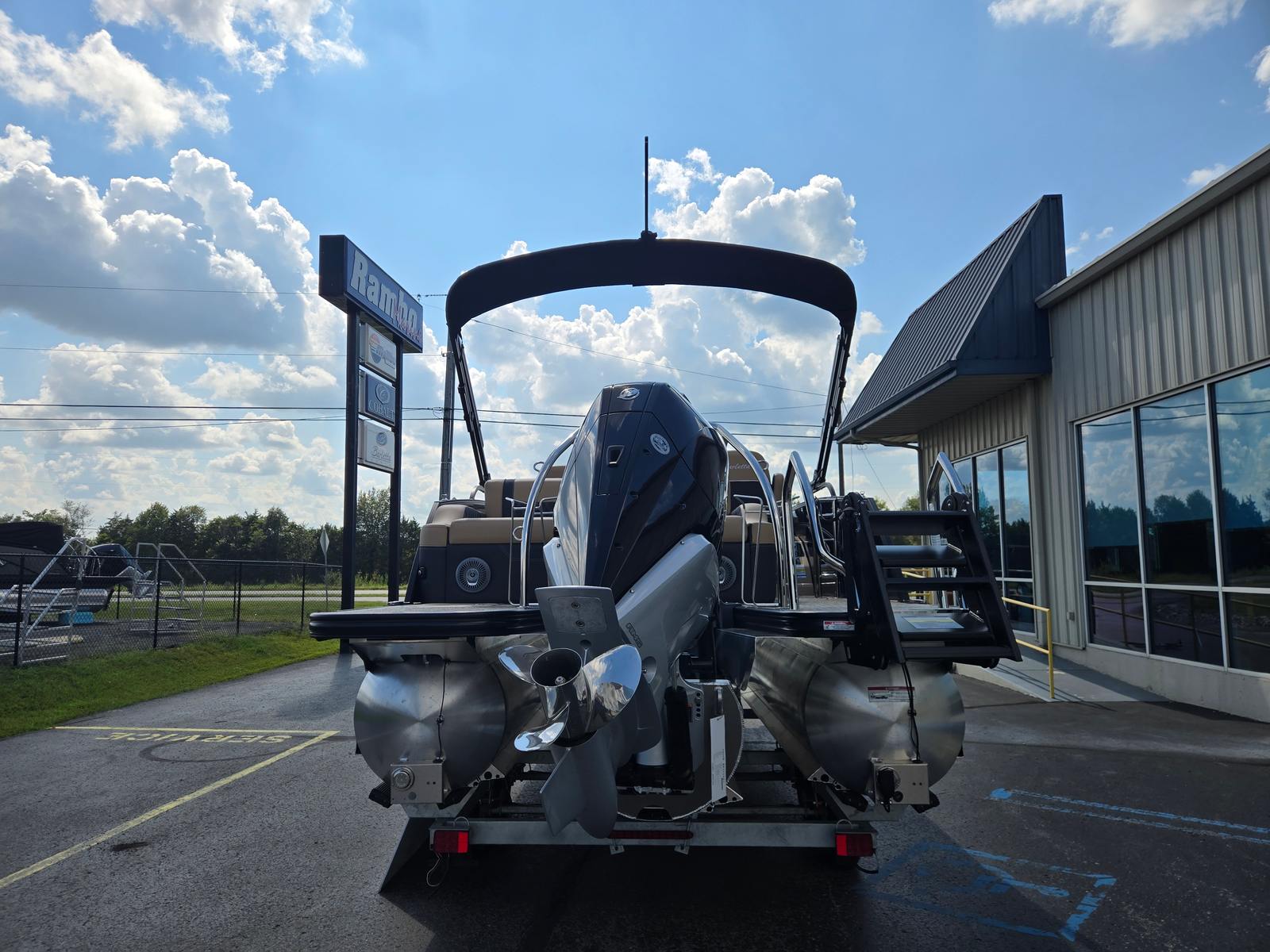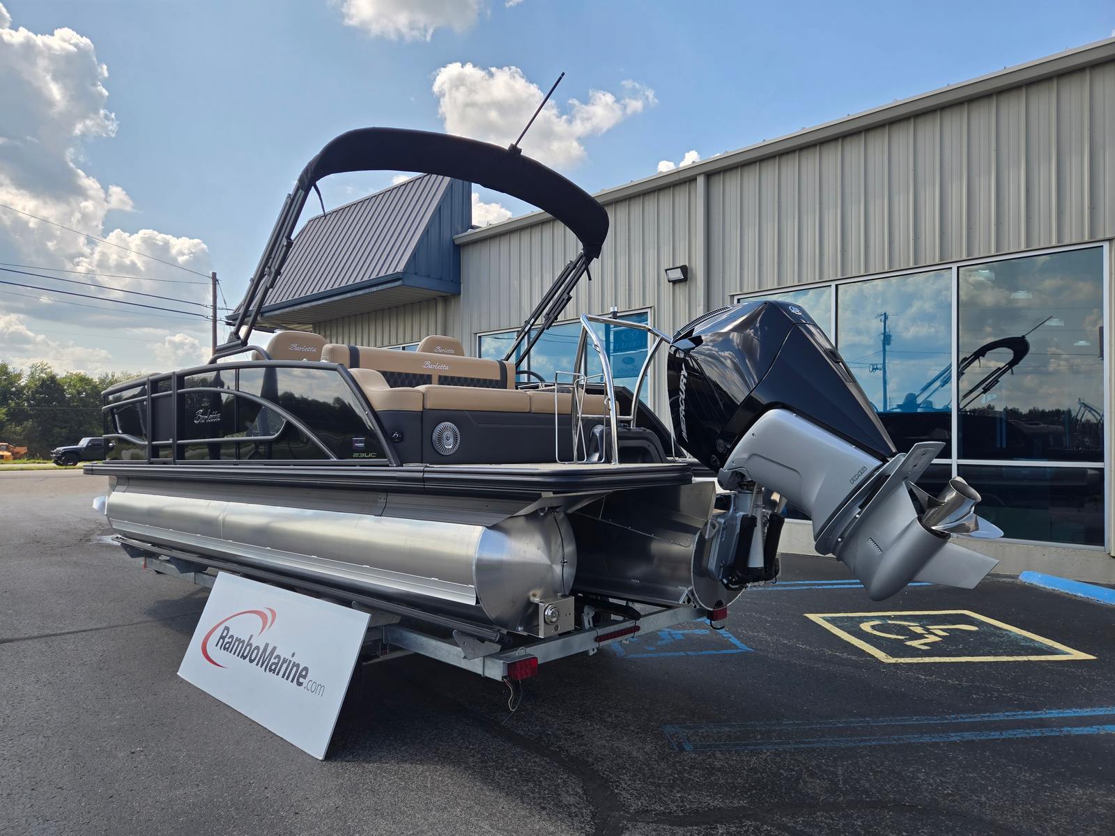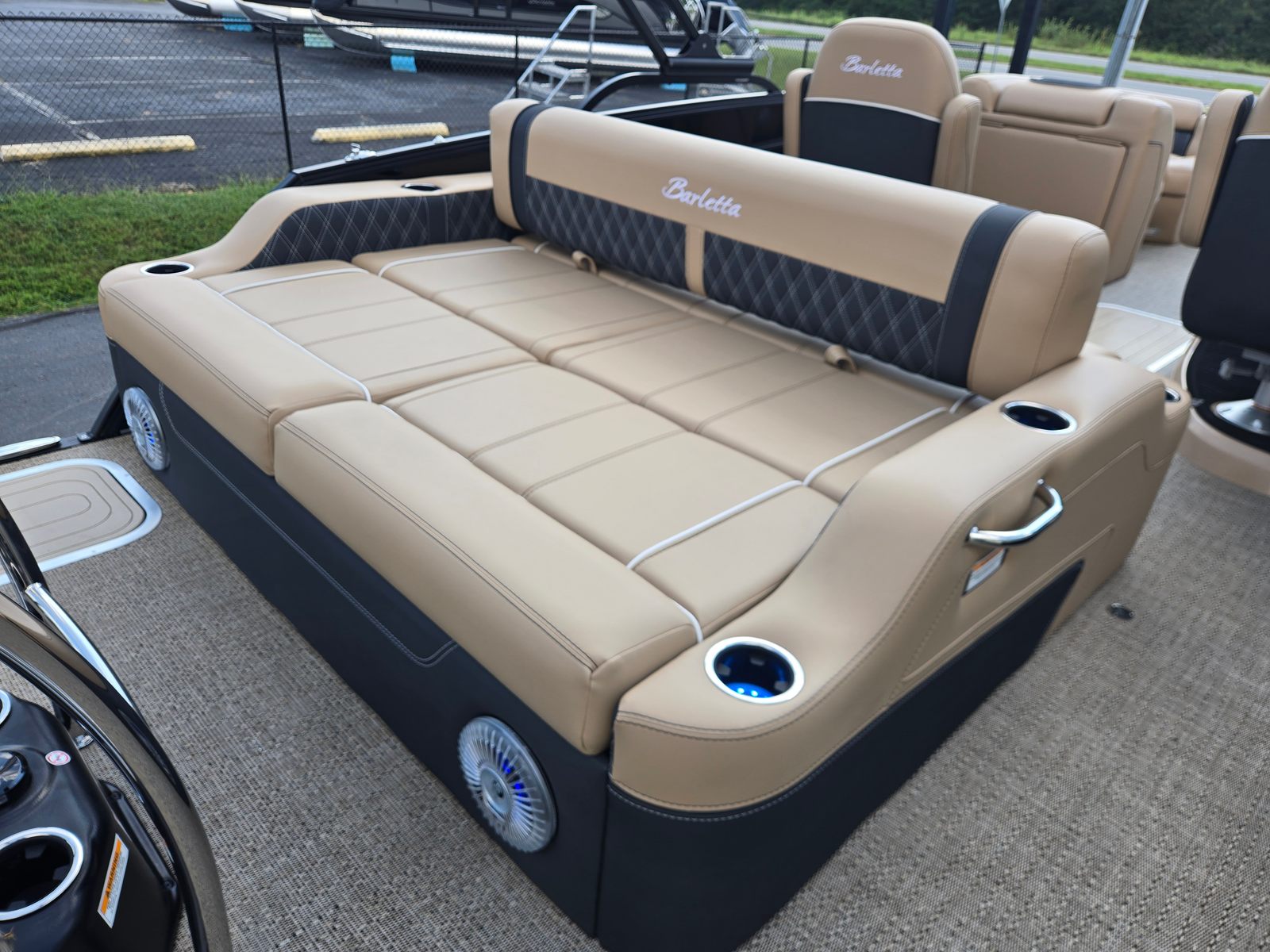 The 2026 Barletta Lusso L23UC stands out with its impressive 25.5-foot length, offering ample space for family, friends, and all your favorite water activities. As a brand-new pontoon boat, it showcases Barletta’s commitment to quality craftsmanship and attention to detail. The Lusso L23UC is designed to turn heads with its sleek Sweep Color and Accent Color in Black Diamond, complemented by the exclusive Blackout Package Lusso Railskin. The Carmella Tan with Onyx furniture and Amore Tan flooring create a warm, inviting atmosphere that exudes both comfort and style. This Barletta boat for sale is the perfect blend of elegance and functionality, making it a standout choice for those who demand the best.