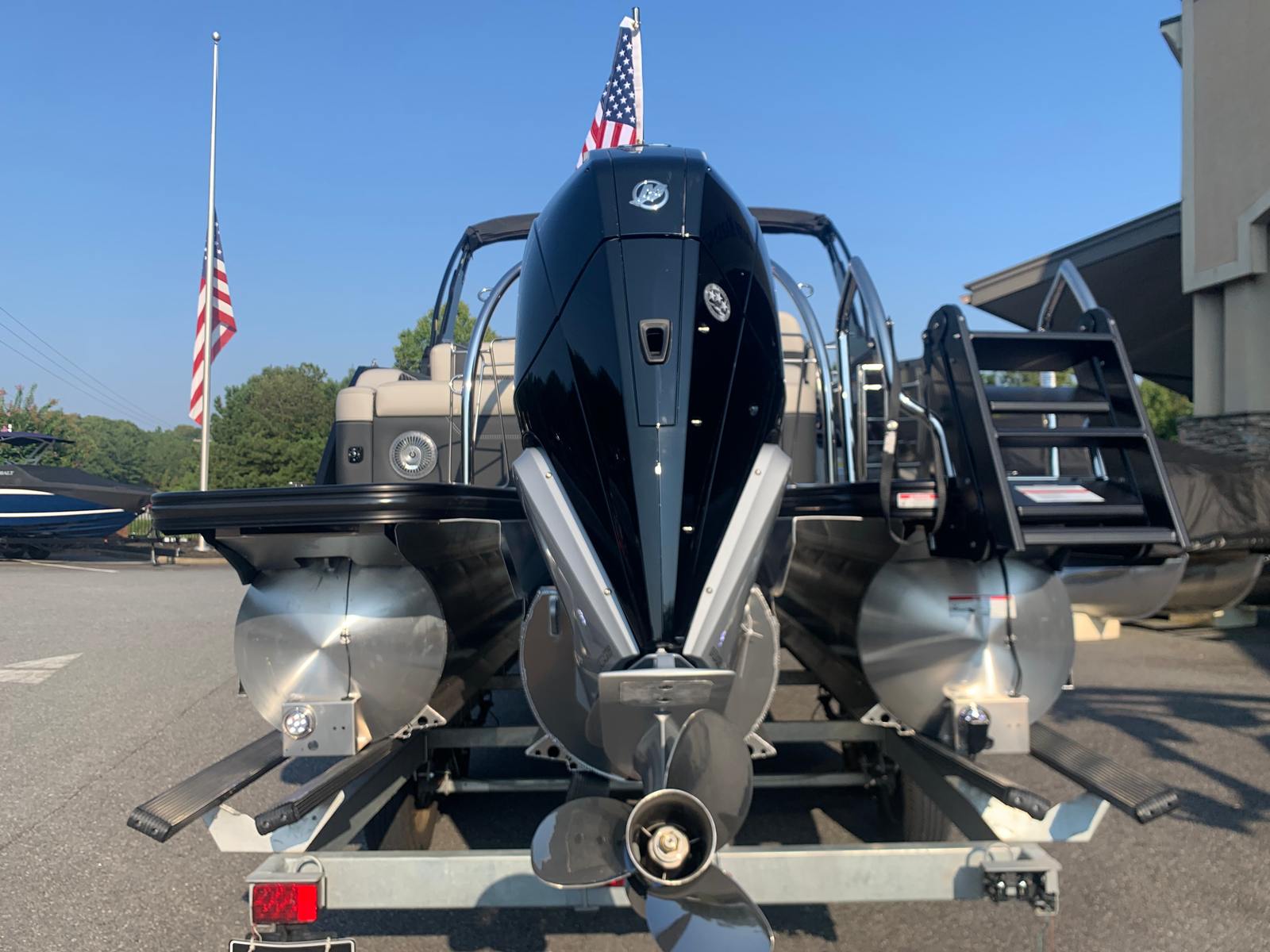 Under the deck, the Barletta Lusso L23UC is powered by a single Mercury 300L Verado V8 engine, delivering an impressive 300 horsepower. This setup provides exhilarating acceleration, smooth cruising, and reliable power for all your water activities. The Mercury Digital DTS Pre-Rig for VERADO engines with Vessel Link ensures seamless integration and precise control, while hydraulic and power assist steering make handling effortless, even at higher speeds or in challenging conditions. Whether you’re gliding across calm waters or heading out for a day of watersports, this pontoon’s performance is sure to impress.