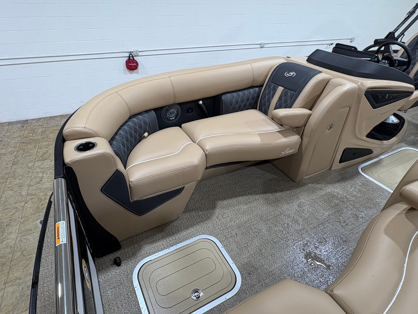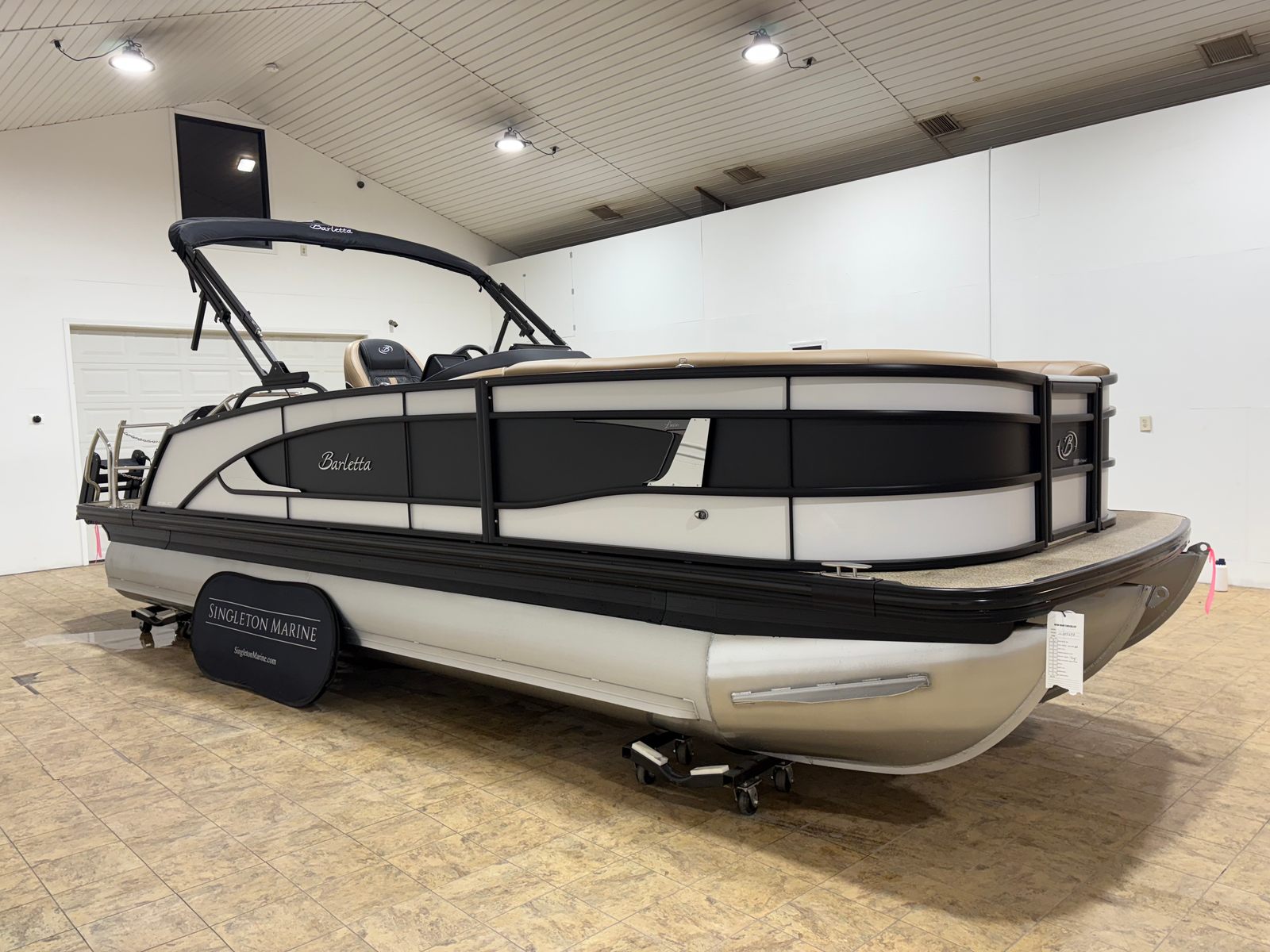 The 2026 Barletta Lusso L23UC stands out as a new pontoon boat that measures an impressive 25.5 feet in length, offering ample space for family, friends, and all your favorite water activities. Its sleek profile is accentuated by a Winter White sweep color and Matte Black accent, creating a striking presence whether docked or cruising across the lake. The Blackout Package Lusso adds a touch of modern elegance, while the Carmella Tan with Onyx furniture and Amore Tan flooring provide a warm, inviting atmosphere for every guest on board. Every detail of this pontoon is crafted to deliver both visual appeal and practical comfort, ensuring that every moment spent on the water is truly unforgettable.