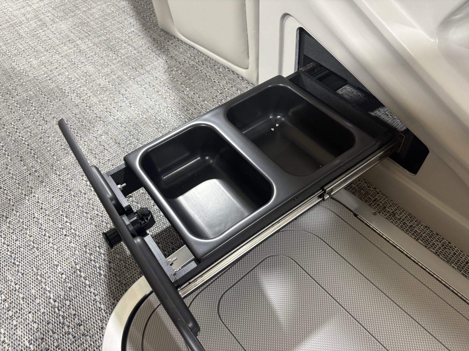 The Barletta Lusso L25MA is designed with practicality in mind, making ownership as enjoyable as it is convenient. The spacious layout provides plenty of storage for gear, water toys, and personal items, keeping the deck clutter-free and organized. The advanced rigging and digital controls simplify docking and maneuvering, even in tight spaces, while the efficient Mercury 350L V10 Verado engine ensures you can spend more time on the water and less time refueling. The durable flooring and high-quality finishes are easy to maintain, allowing you to focus on enjoying your time with family and friends.