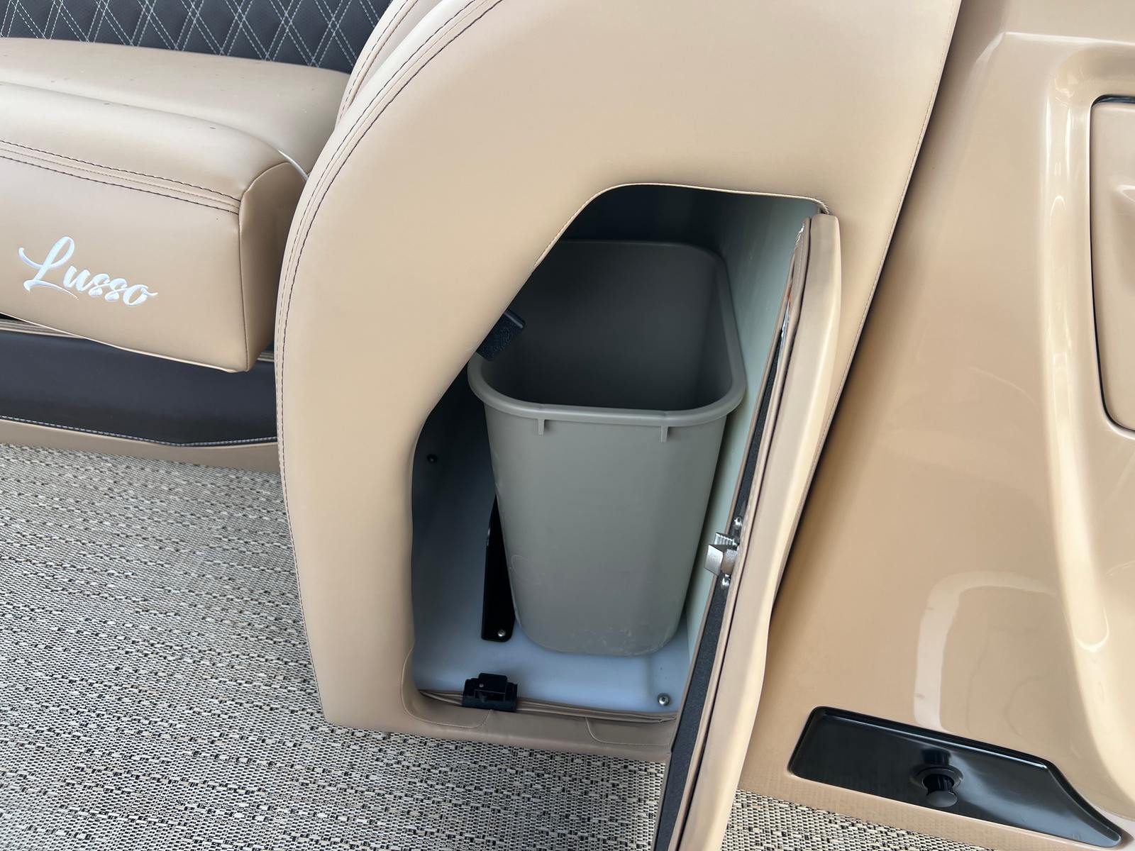 Step aboard the Barletta Lusso L25MA and you’ll be greeted by a host of premium features designed to enhance your boating experience. The Carmella Tan with Bison furniture offers plush comfort and sophisticated style, creating an inviting atmosphere for relaxation and socializing. The Amore Tan flooring adds warmth and durability, ensuring that your pontoon remains beautiful and easy to maintain season after season.For those who appreciate versatility and protection from the elements, the Double Bimini Arch Models canvas provides ample shade and shelter, allowing you to enjoy your time on the water regardless of the weather. The Metal Jacket Protectant on the exterior ensures long-lasting durability and a polished finish, keeping your pontoon looking its best for years to come.