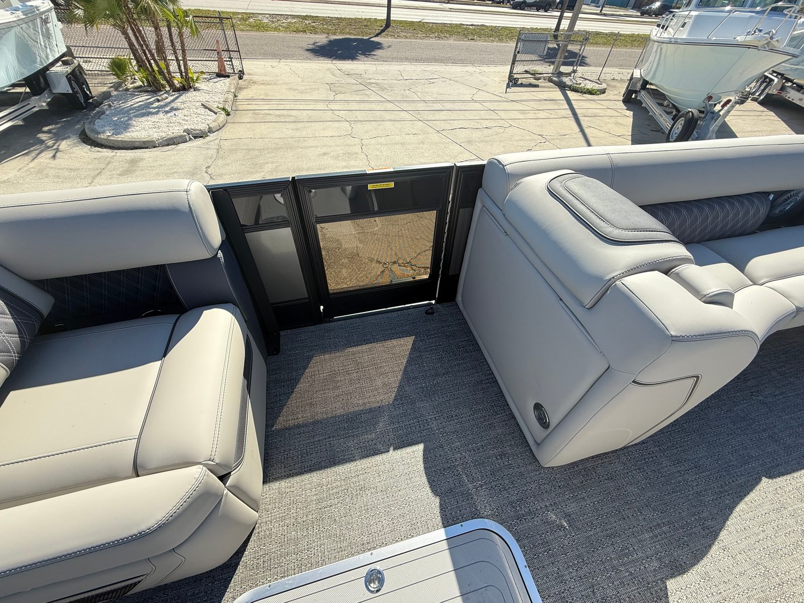 Owning the Barletta Lusso L25MA means embracing a lifestyle of fun, relaxation, and adventure. The spacious deck layout provides ample room for socializing, sunbathing, or enjoying a meal with friends and family. The plush Marquesan Gray furniture ensures everyone on board can relax in comfort, while the stylish flooring and blackout accents create a sophisticated ambiance. Whether you are hosting a sunset cruise, celebrating a special occasion, or simply unwinding after a long week, this pontoon boat offers the perfect setting.The Lusso L25MA is designed with both comfort and convenience in mind. The integrated electric steering and digital controls make piloting the boat effortless, even for less experienced boaters. The stainless steel prop and advanced Yamaha engine ensure reliable performance and fuel efficiency, so you can spend more time enjoying the water and less time worrying about maintenance or refueling.