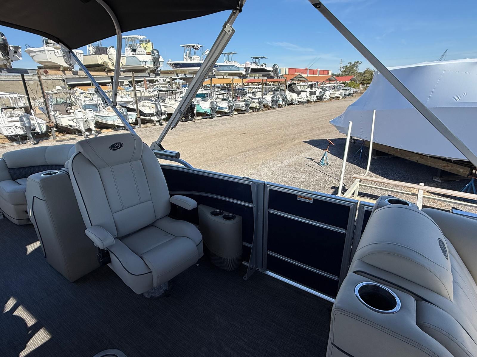 The Barletta Lusso L25QC is designed with both luxury and practicality in mind. Its spacious 25-foot length offers plenty of room for guests, gear, and activities, making it ideal for social gatherings and family outings. The boat’s layout maximizes comfort, with plush seating, ample legroom, and easy access to all areas of the deck. The Lusso L25QC’s construction reflects Barletta’s commitment to quality, ensuring a sturdy and reliable vessel that stands up to years of enjoyment.Special features of the Lusso L25QC enhance the overall boating experience, providing convenience and versatility for a wide range of activities. The boat’s design allows for easy movement and interaction, whether you’re hosting a party, enjoying a quiet afternoon, or preparing for a day of water sports. Every detail has been thoughtfully considered to create a welcoming and enjoyable environment on board.