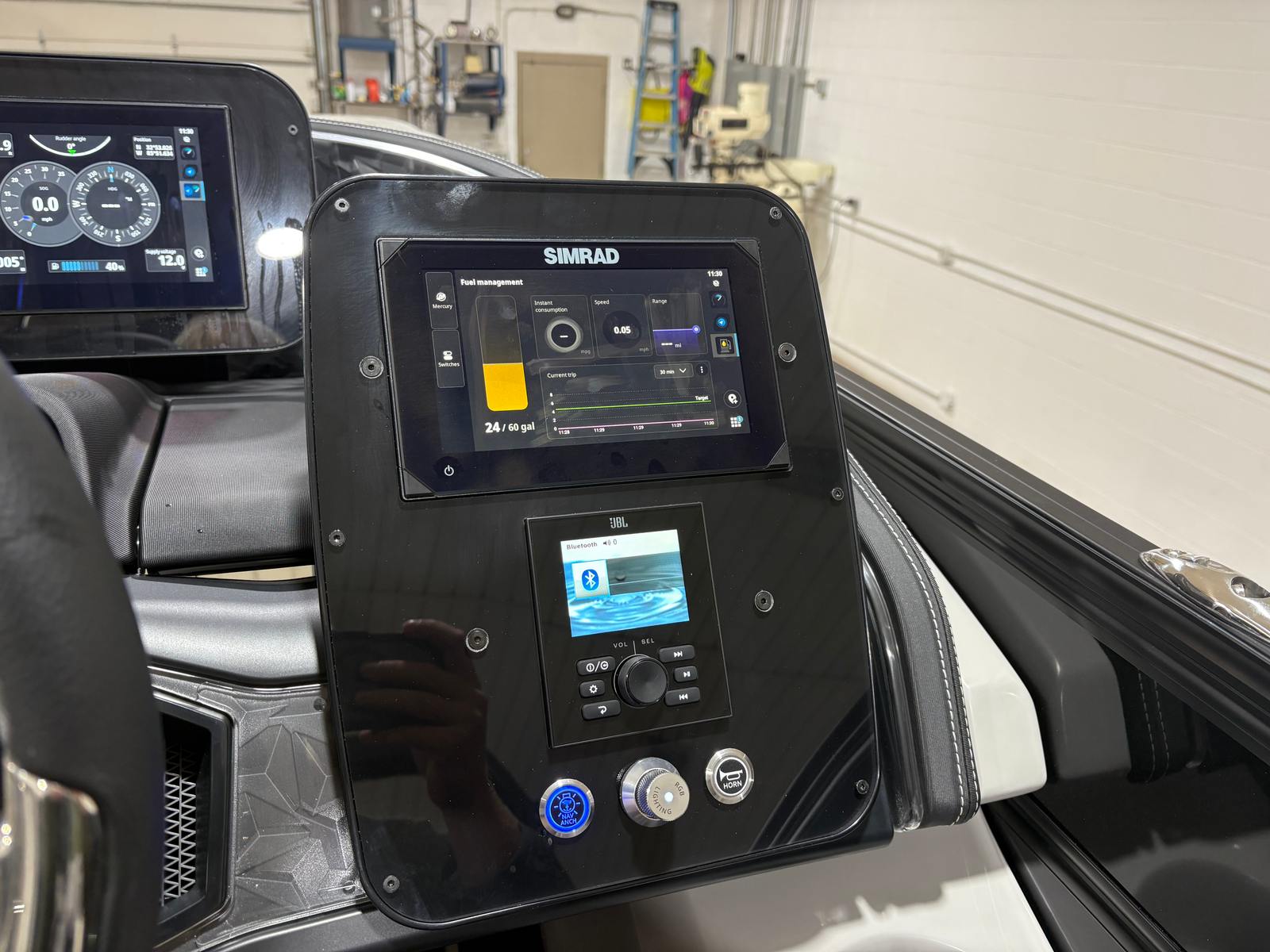 Powering the Barletta Lusso L25U is a single Mercury 300L Verado V8 engine, renowned for its smooth operation and impressive horsepower. With 300 HP at your command, this pontoon boat delivers exhilarating acceleration and reliable cruising speed, whether you’re exploring open water or towing water toys. The Mercury Digital DTS Pre-Rig for VERADO engines with Vessel Link ensures seamless integration and precise control, while hydraulic and power assist steering make handling effortless. The stainless steel prop enhances durability and performance, allowing you to navigate with confidence and agility.