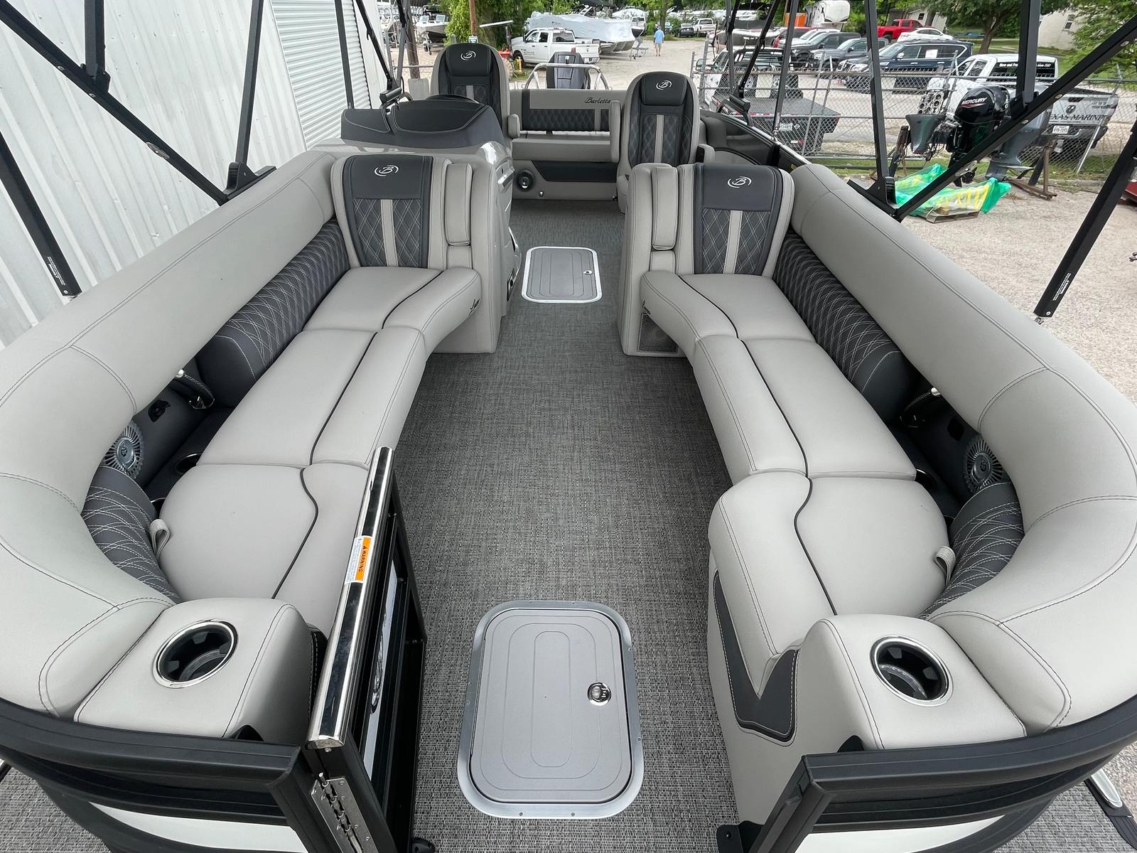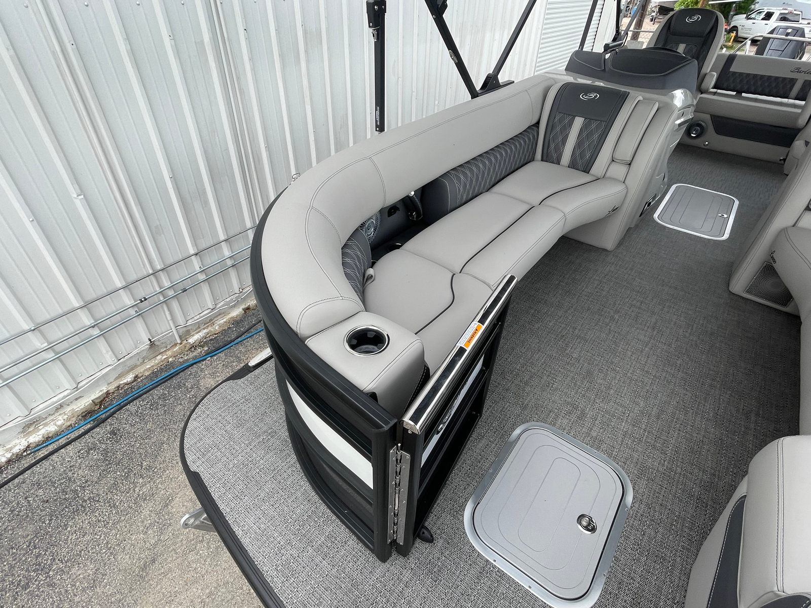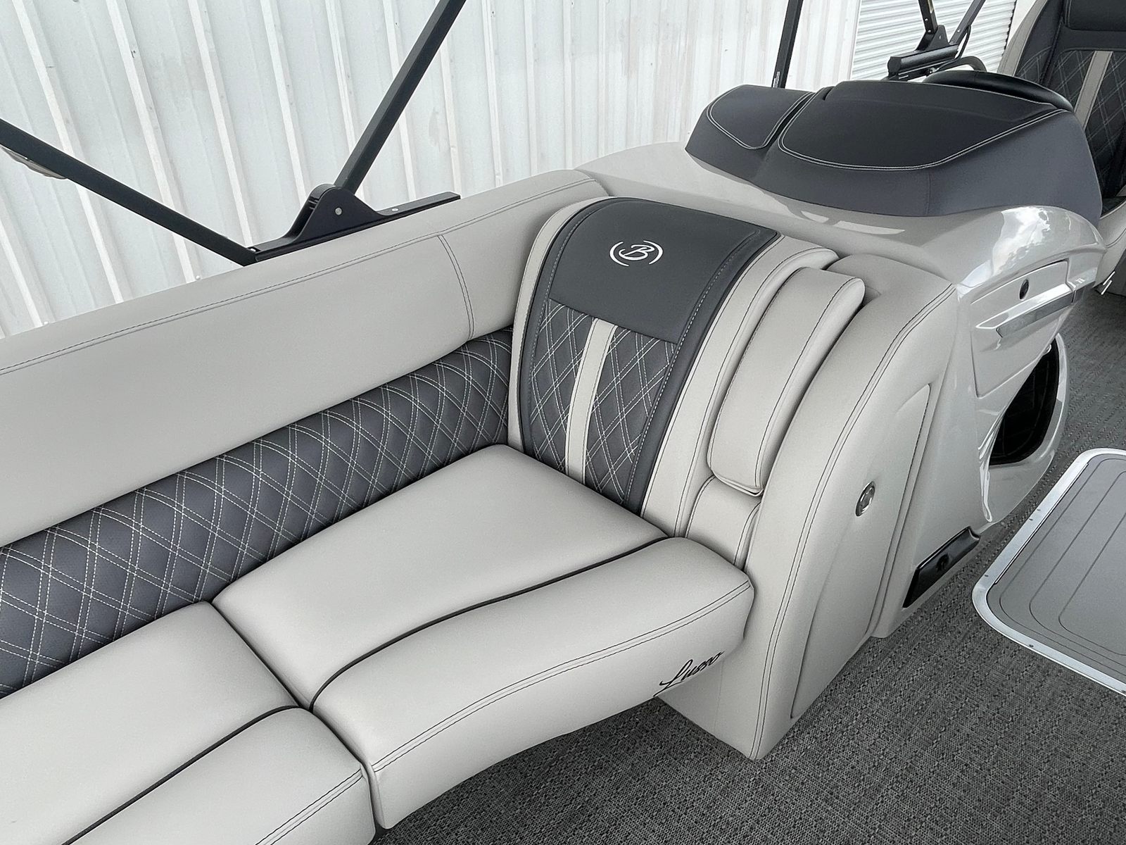 The 2025 Barletta Lusso L25UC is a new, meticulously crafted pontoon that measures an impressive 27.5 feet in length. This spacious platform offers ample room for relaxation, socializing, and adventure, making it ideal for both intimate gatherings and lively parties on the water. The Lusso series is renowned for its attention to detail, and the L25UC model exemplifies this with its sophisticated design and premium finishes. Whether you are hosting friends for a sunset cruise or enjoying a peaceful day with family, this Barletta boat for sale delivers an unmatched boating experience.