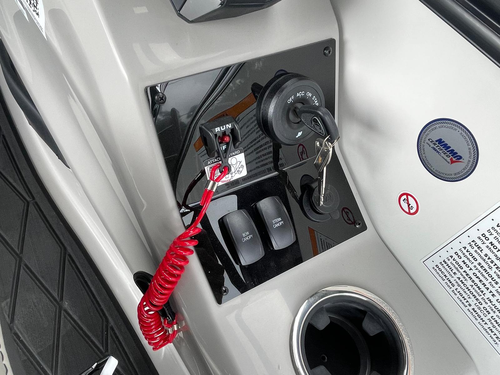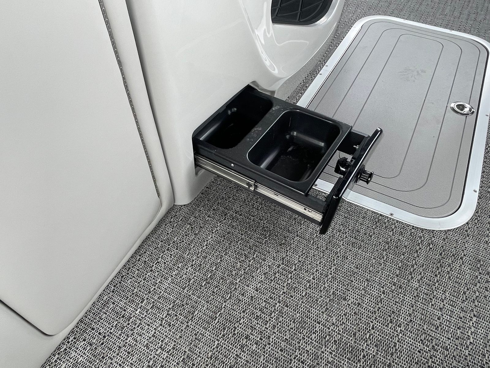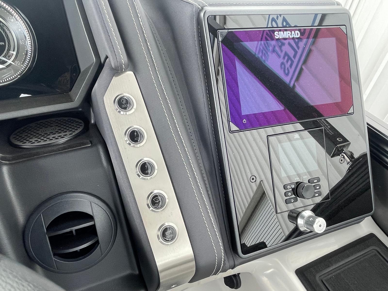 Under the hood, the Barletta Lusso L25UC is powered by a single Mercury (D) 400L V10 Verado engine, delivering a robust 400 horsepower. This powerhouse of an engine ensures exhilarating acceleration, smooth cruising, and reliable performance, whether you are gliding across calm lakes or navigating busier waterways. The Mercury Digital Pre-Rig for V10 and expertly rigged engine with a V10 prop guarantee seamless integration and optimal efficiency, providing you with confidence and control at every turn. With this level of performance, the Lusso L25UC is perfect for water sports, fast-paced adventures, or simply enjoying a leisurely ride with loved ones.
