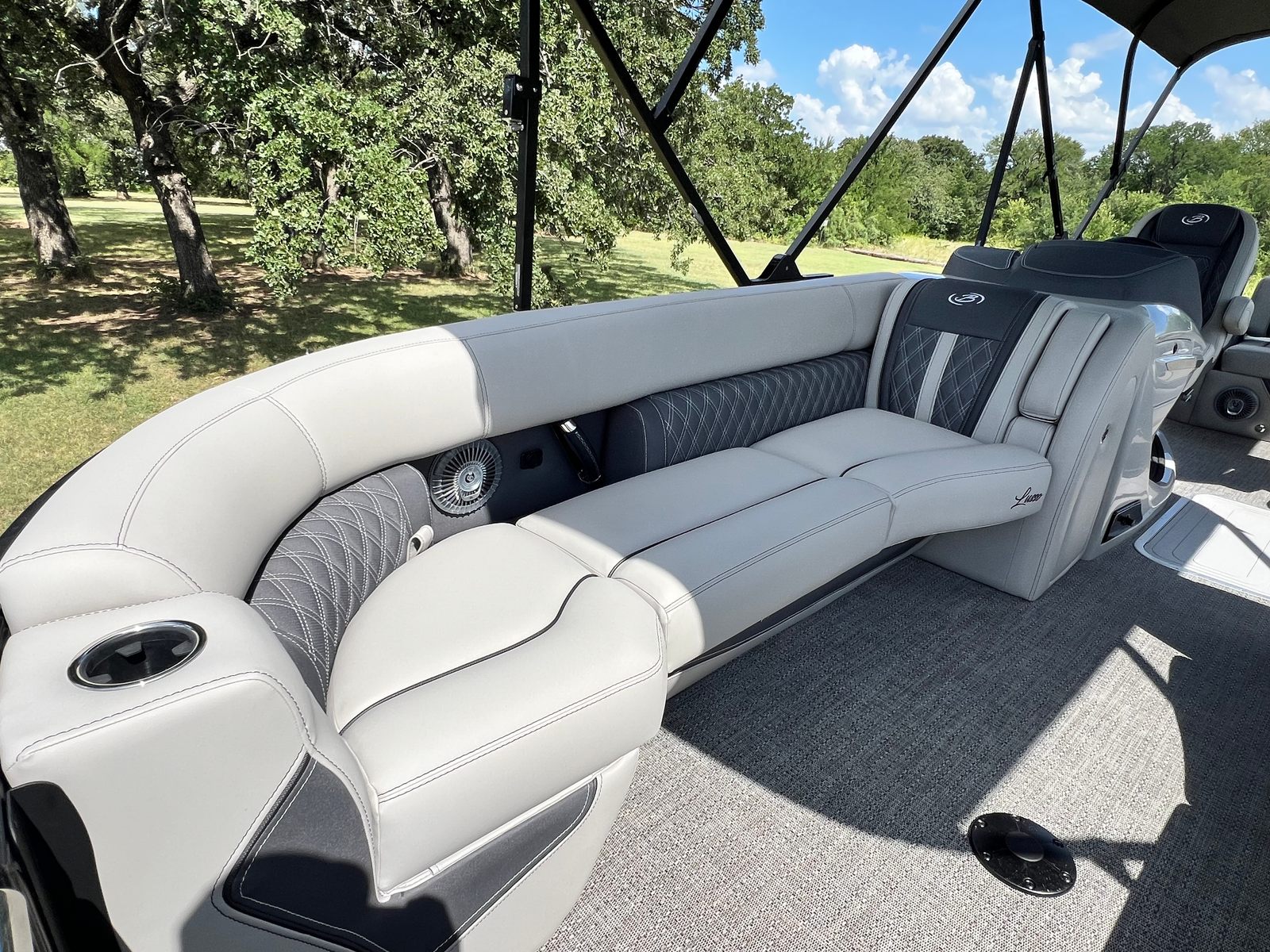 The 2025 Barletta Lusso L25UC shines in a variety of settings, making it the ideal choice for families, friends, and boating enthusiasts alike. Picture yourself embarking on a leisurely cruise with loved ones, the double bimini providing shade as you glide across the water. Host a lakeside picnic with the convenient table and cupholders, or enjoy a day of swimming and sunbathing on the spacious deck.For those who love water sports, the powerful engine delivers the speed and agility needed for tubing, wakeboarding, or simply zipping across the lake. The Lusso L25UC is equally at home during quiet mornings spent fishing or relaxing with a good book, offering a peaceful retreat from the hustle and bustle of everyday life. No matter how you choose to spend your time on the water, this pontoon boat is designed to elevate every experience.