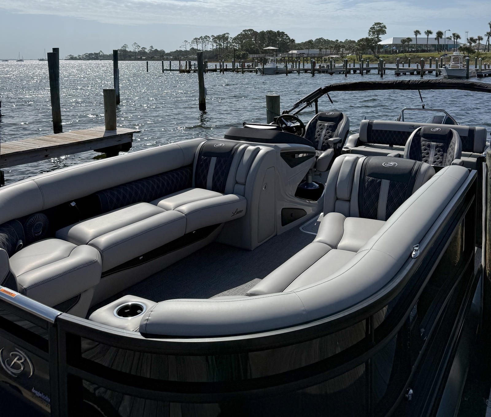 The Barletta Lusso L25UC is a 27.5-foot pontoon boat that embodies sophistication and versatility. Built for the 2026 season, this model showcases Barletta’s commitment to quality craftsmanship and innovative design. The Lusso series is renowned for its spacious layouts, plush furniture, and attention to detail, making it a top contender for anyone searching for a Barletta boat for sale. Whether you’re planning a relaxing day on the lake or hosting a lively gathering, the Lusso L25UC offers the perfect platform for unforgettable memories.