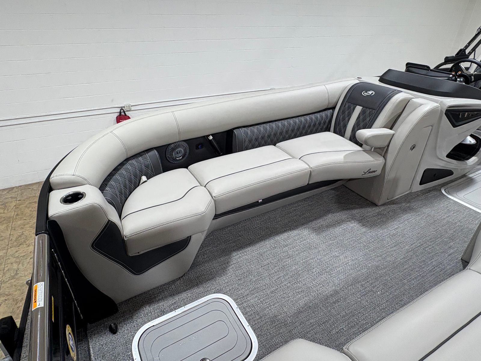 The 2026 Barletta Lusso L25UC measures an impressive 27.5 feet in length, offering ample space for relaxation, socializing, and fun on the water. This new pontoon boat is meticulously crafted to deliver a premium boating experience, from its sophisticated exterior to its plush, inviting interior. The Marquesan Gray furniture with Onyx accents and Amore Gray flooring create a modern, upscale atmosphere that is both stylish and comfortable. Whether you are planning a day of cruising, entertaining friends, or enjoying a peaceful sunset, this Barletta boat for sale is designed to elevate every moment.