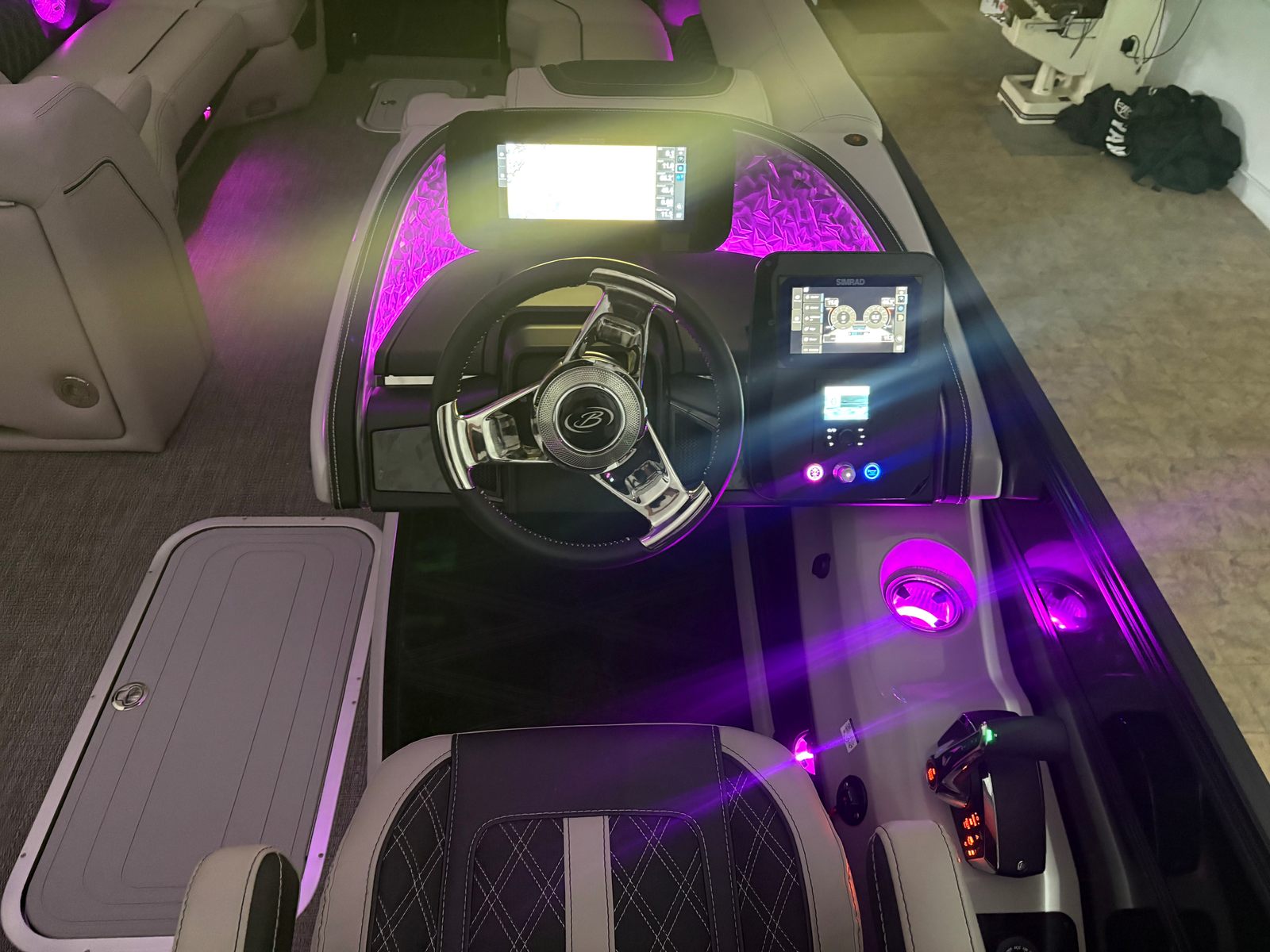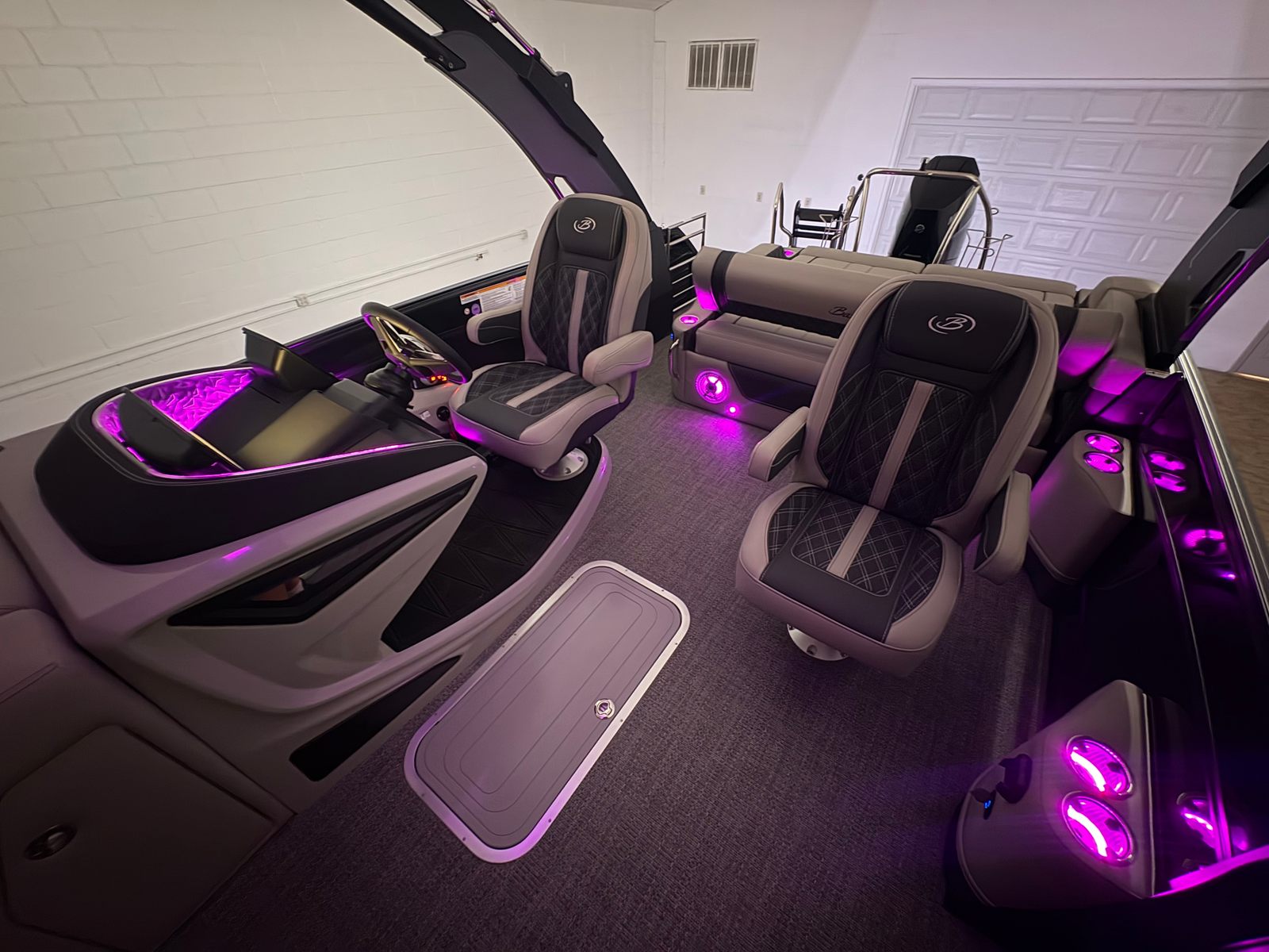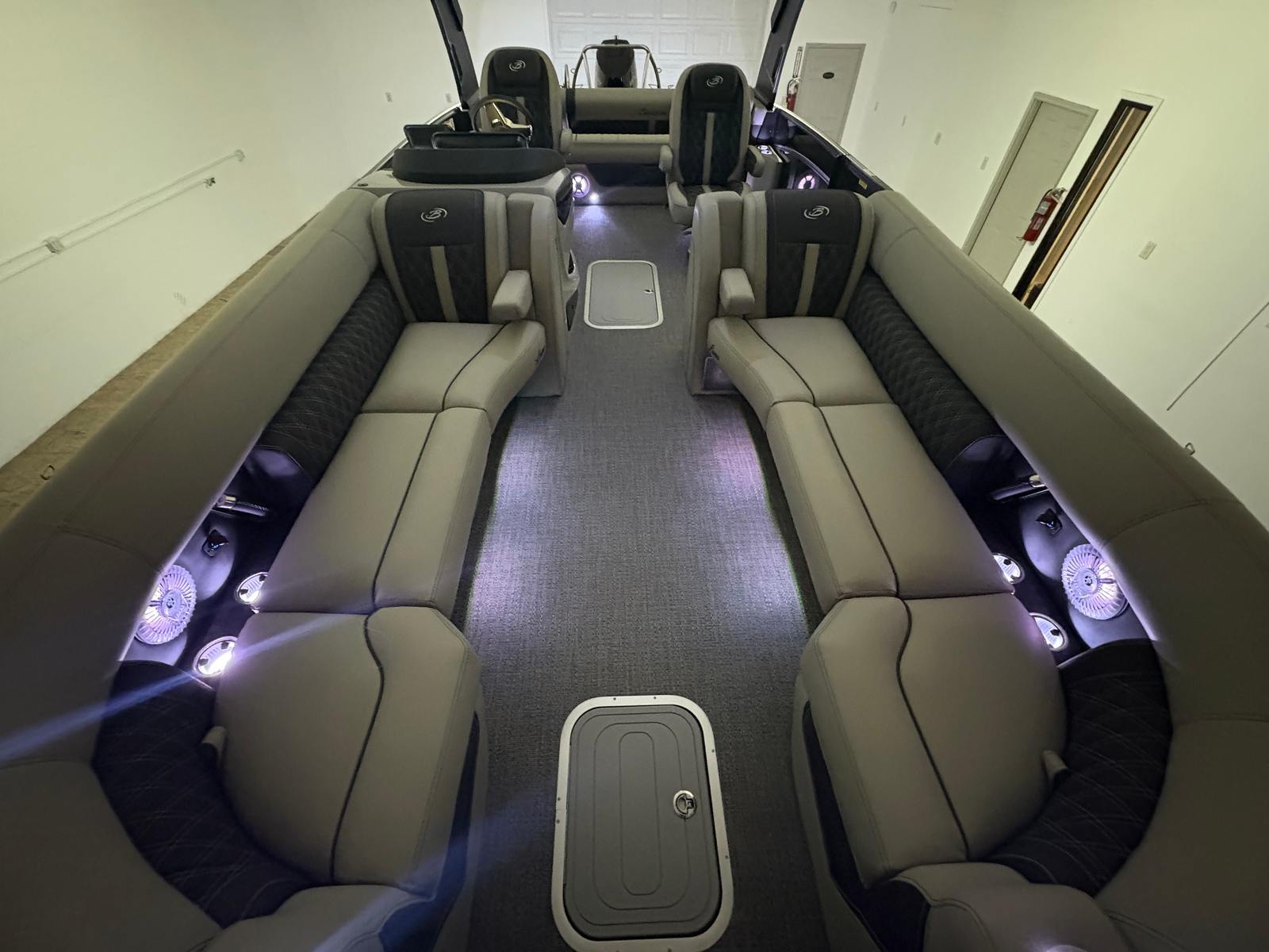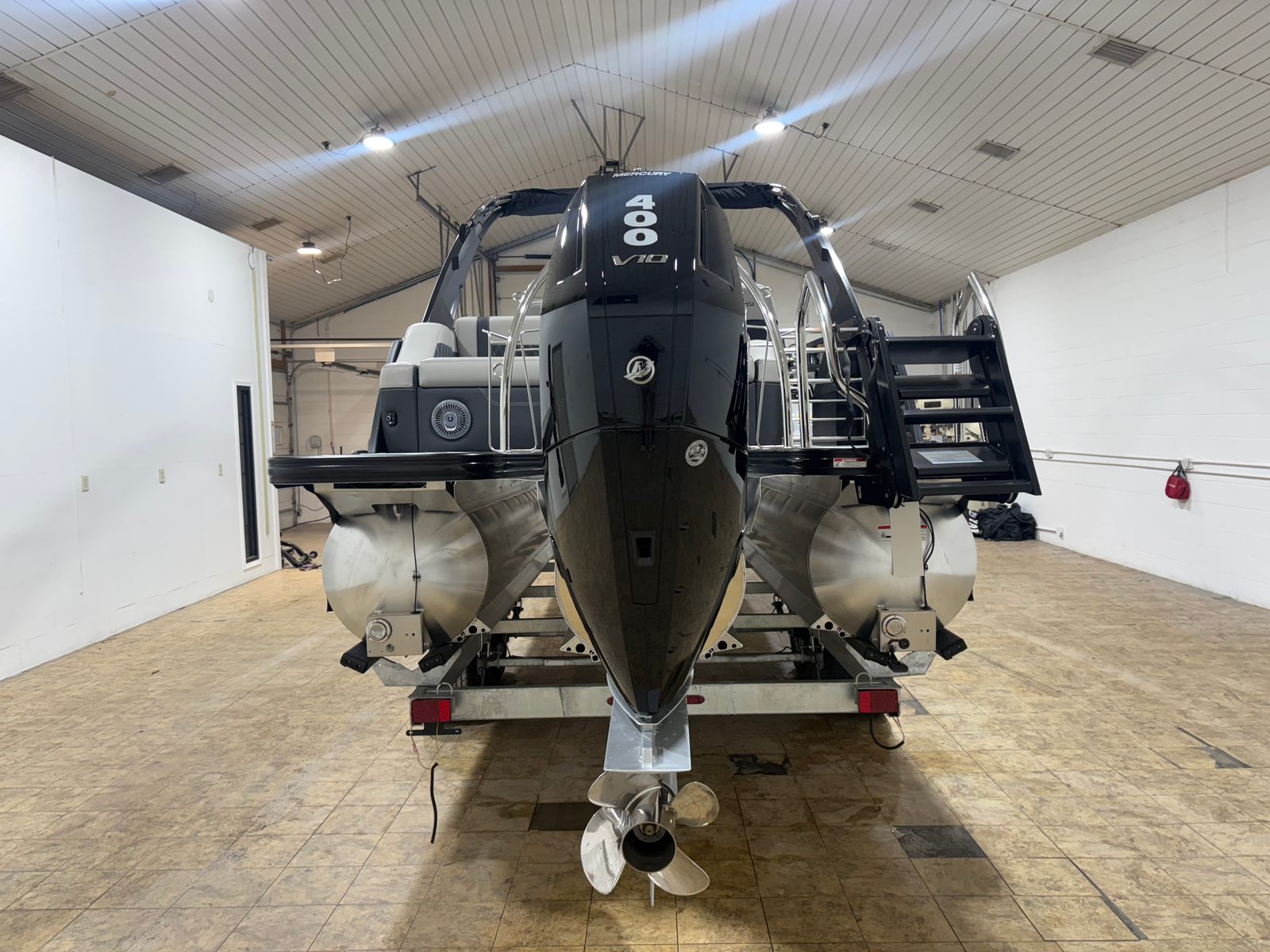 At the heart of this pontoon boat is the powerful Mercury 400L V10 Verado engine, delivering an impressive 400 horsepower. This single-engine setup is expertly rigged with a V10 prop, ensuring smooth acceleration, responsive handling, and reliable performance in various water conditions. The Mercury Digital Pre-Rig for V10 enhances engine management and control, making every outing effortless and enjoyable. Whether you’re seeking thrilling speed or a leisurely cruise, the Lusso L25UCA’s advanced propulsion system guarantees a dynamic and exhilarating ride.