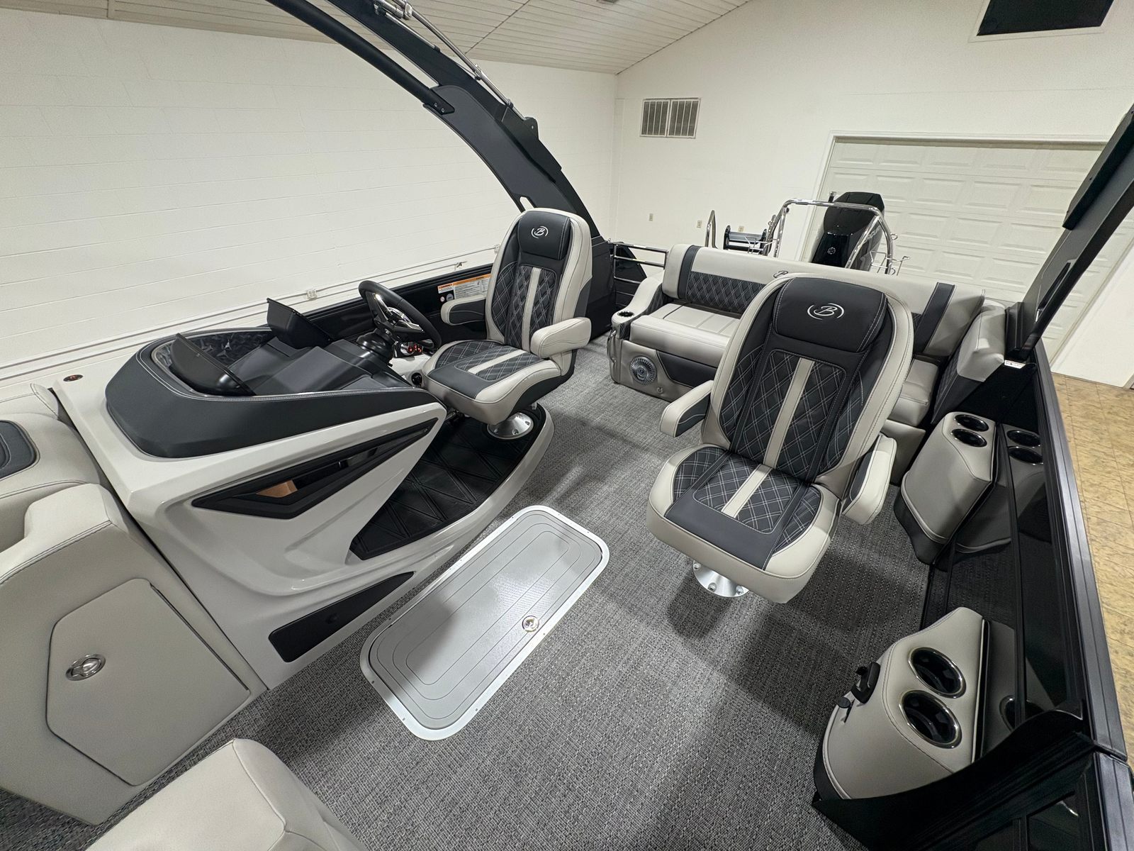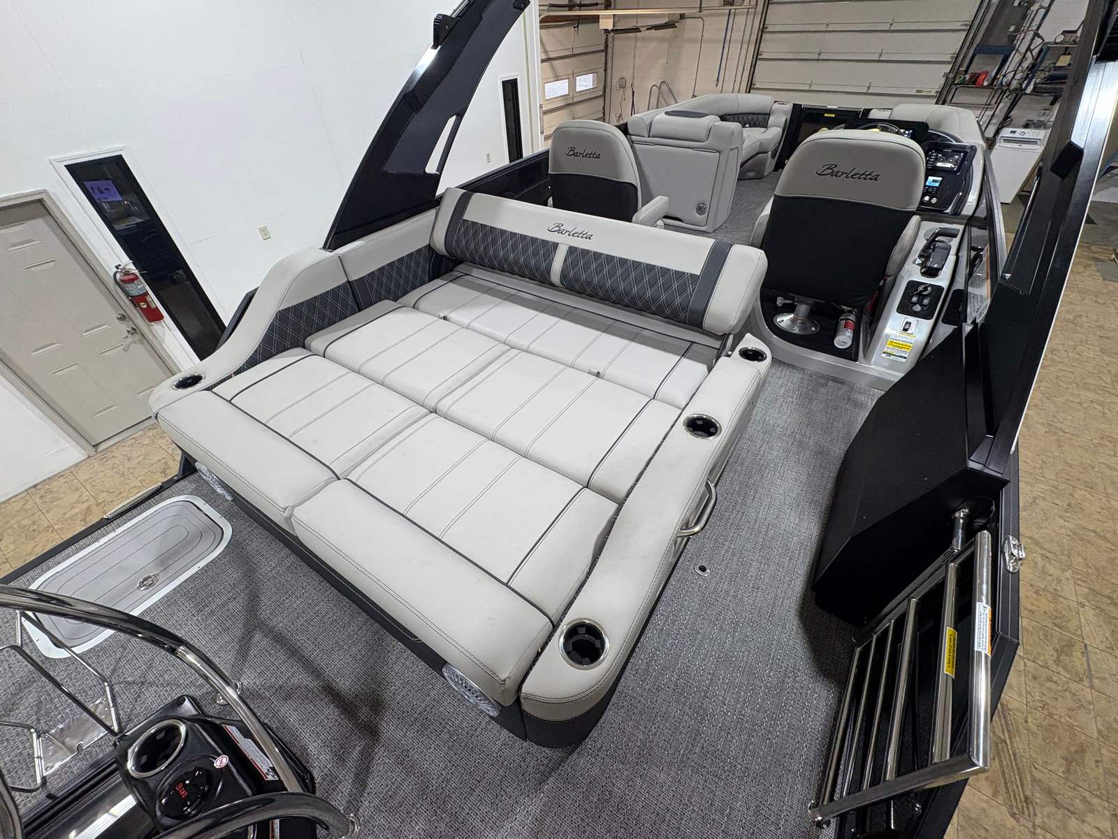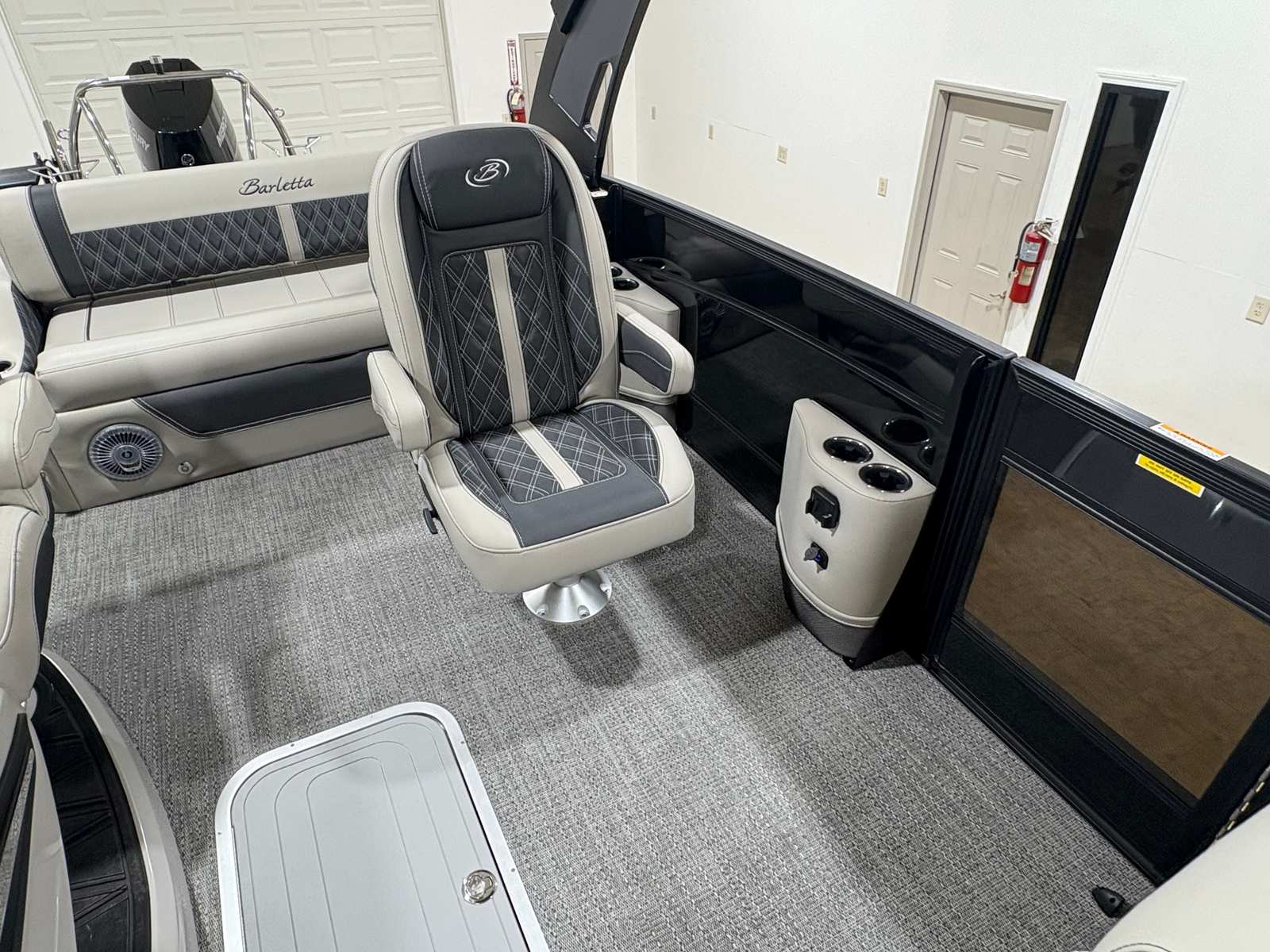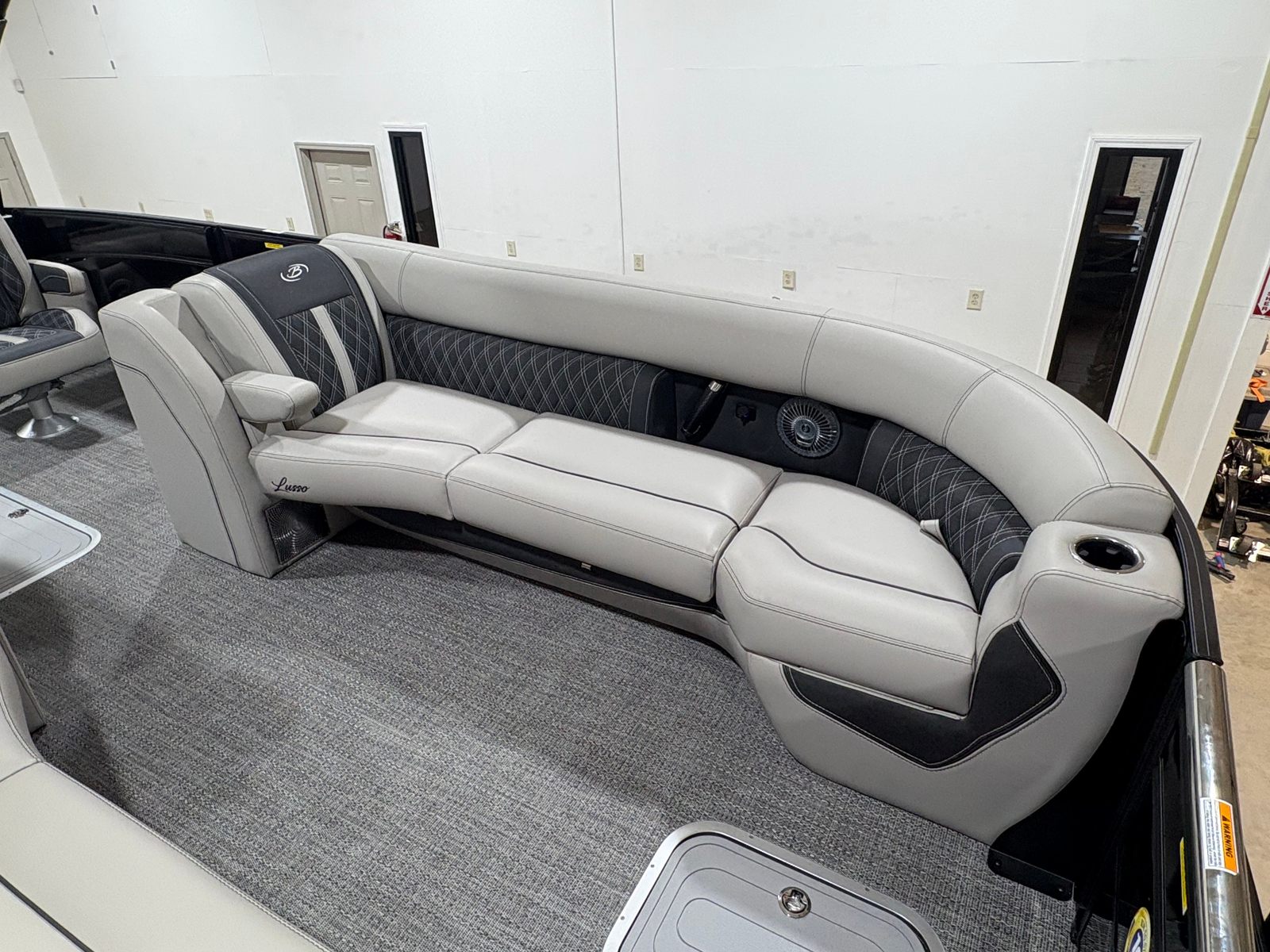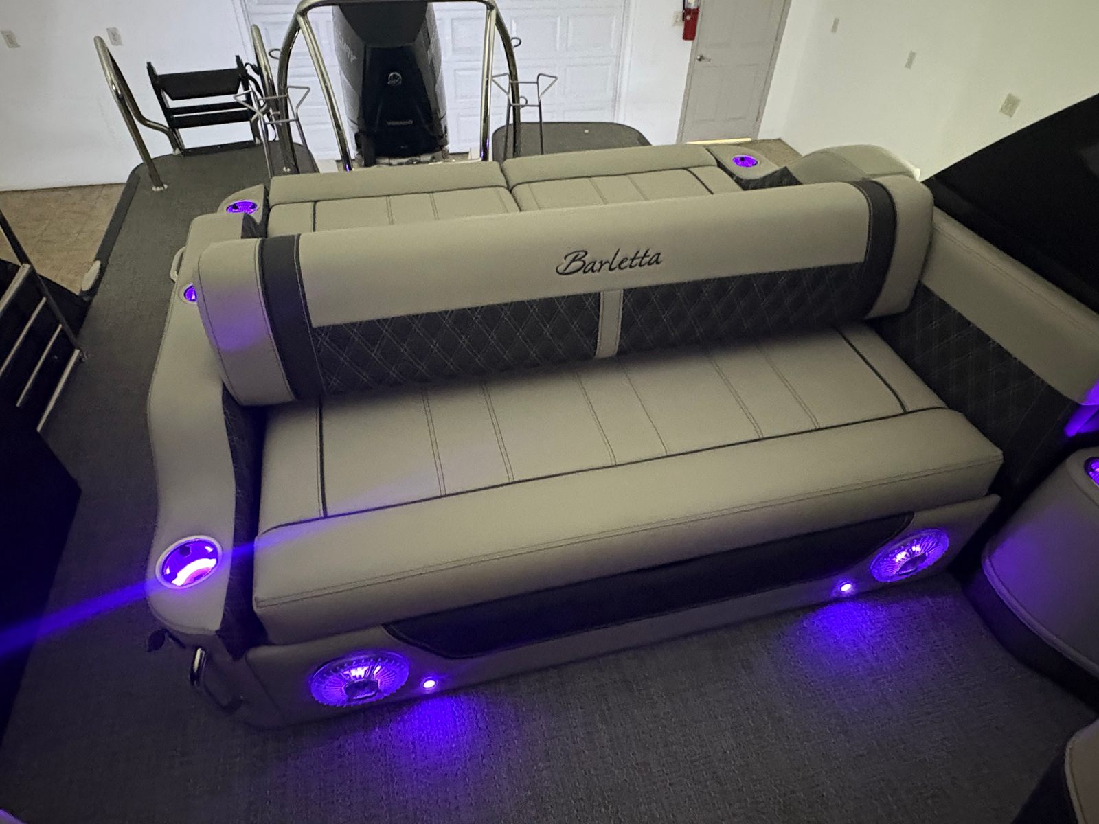 The 2026 Barletta Lusso L25UCA is packed with premium features designed to elevate your boating experience. The striking Sweep Color and Accent Color in Black Diamond create a bold, modern aesthetic, complemented by the Blackout Package Lusso railskin for a sleek, unified look. Inside, the Marquesan Gray furniture with Onyx accents offers plush seating and sophisticated style, while the Amore Gray flooring provides durability and comfort underfoot.Exterior lighting, including white underdeck and underwater illumination, adds a touch of elegance and enhances visibility during evening cruises. The Mercury Digital Pre-Rig for V10 ensures seamless integration with the engine, while the rigging with a V10 prop maximizes performance and efficiency. Every detail of the Lusso L25UCA is thoughtfully designed to provide both luxury and functionality, setting a new standard for pontoon boats.