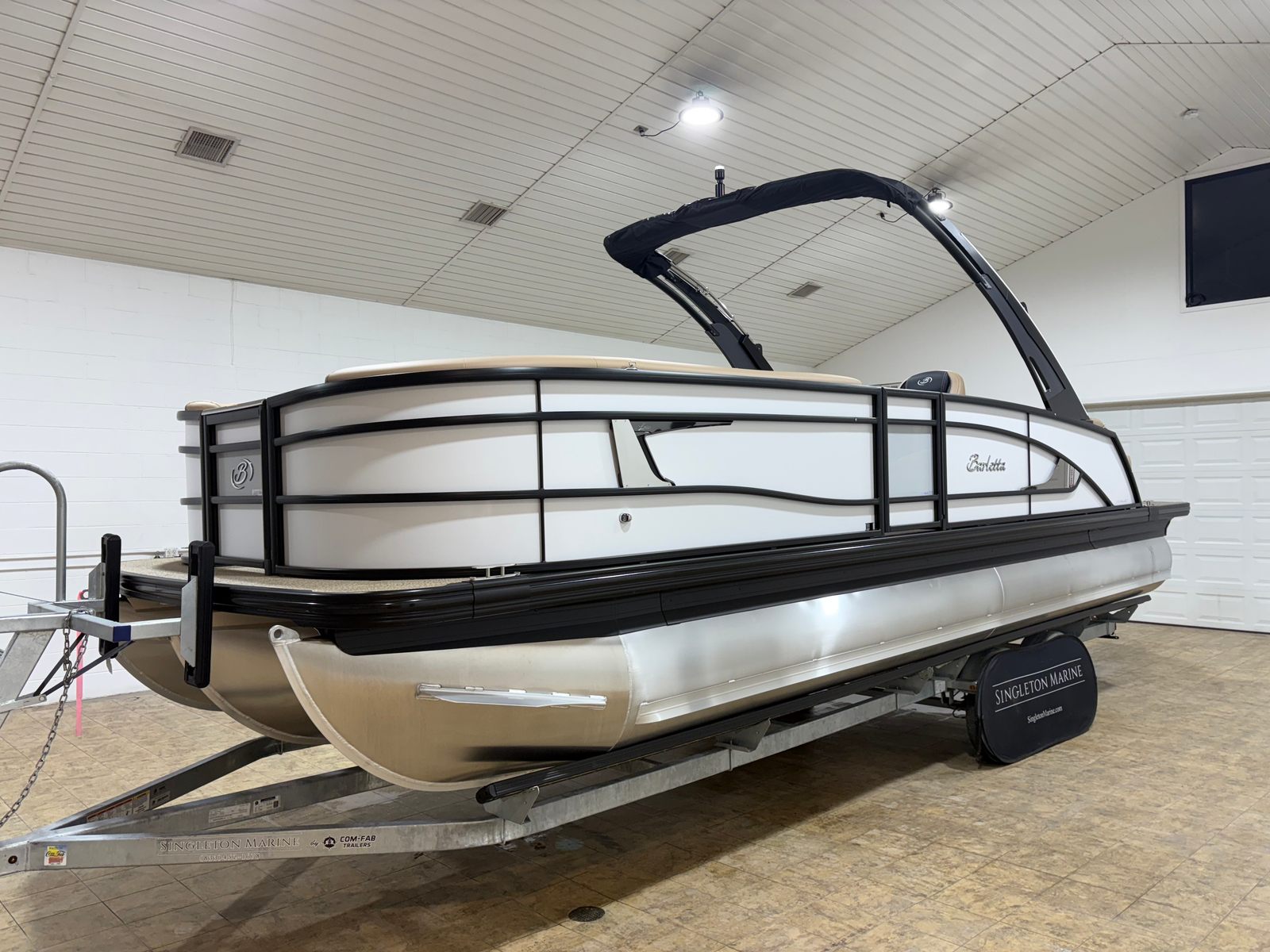 The 2026 Barletta Lusso L25UCA is a brand-new pontoon boat measuring an impressive 27.5 feet in length. Its sleek and modern profile is accentuated by the Winter White sweep and accent colors, creating a timeless and sophisticated look that will turn heads at any marina or lake. The Blackout Package Lusso railskin adds a bold touch, while the Carmella Tan with Onyx furniture and Amore Tan flooring provide a warm, inviting atmosphere for every passenger. As a new Barletta boat for sale, this Lusso L25UCA is designed to deliver both style and substance, making it an ideal choice for those who demand the best in recreational boating.