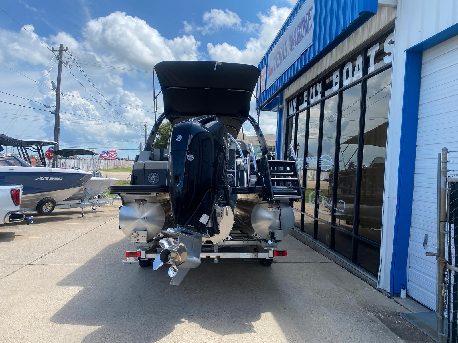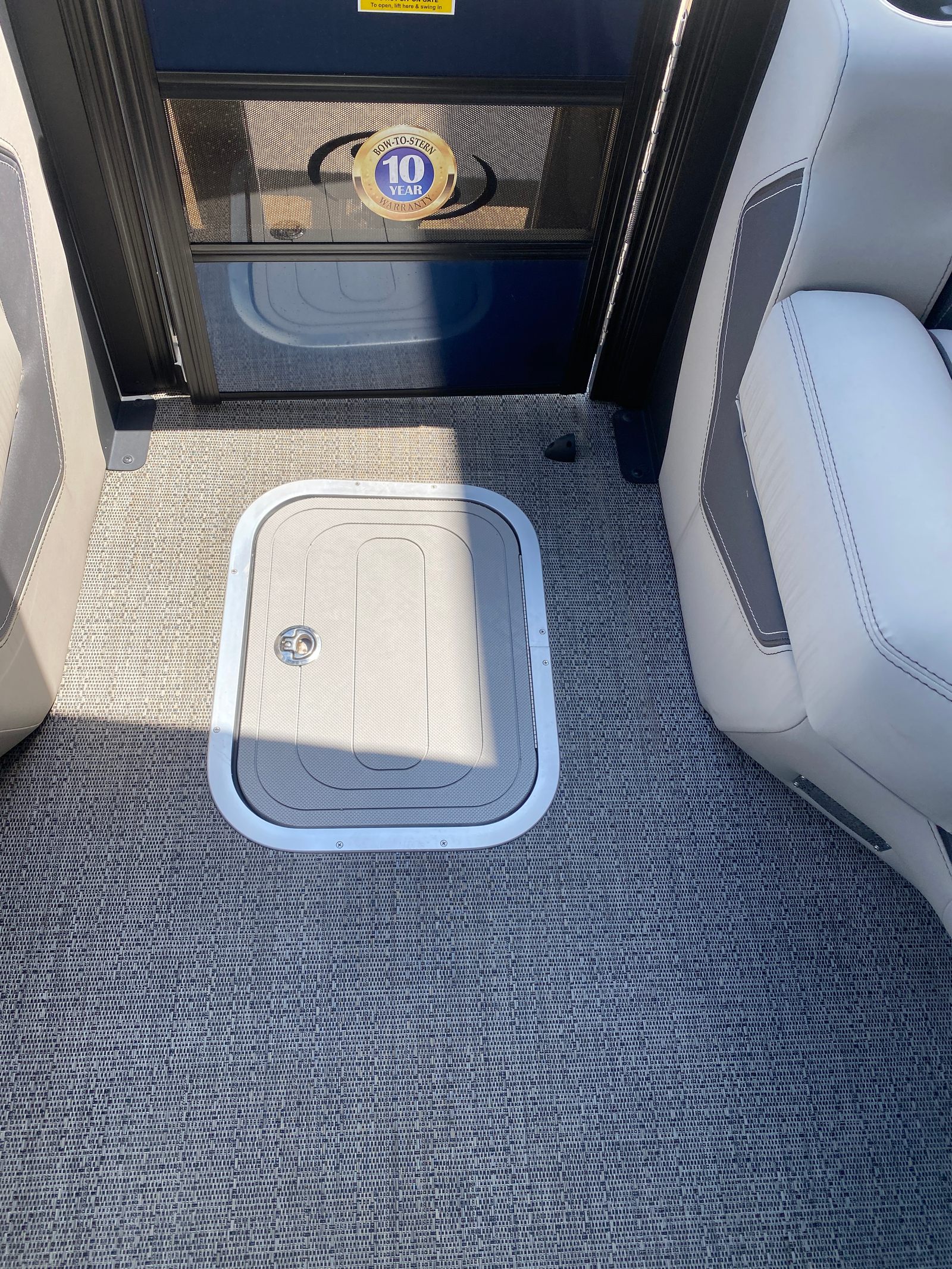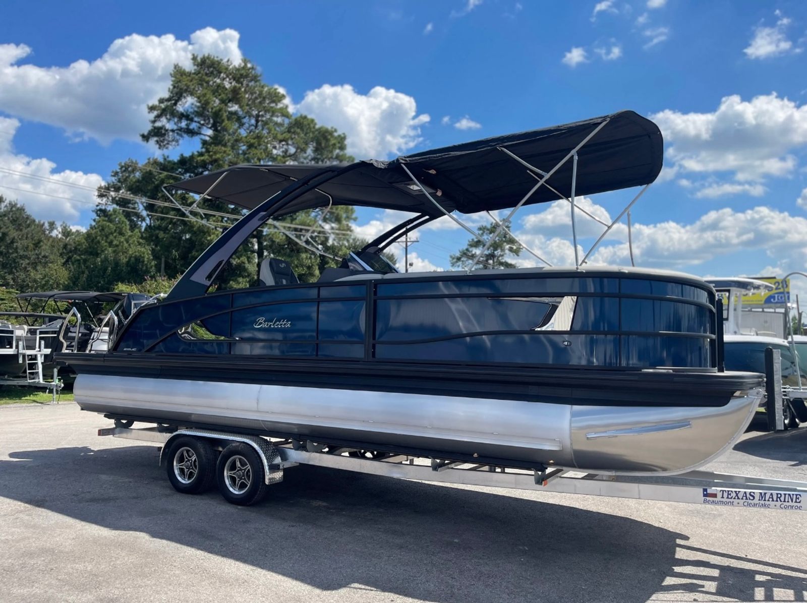 The 2025 Barletta Lusso L25UCA is loaded with special features that enhance both comfort and style. The adjustable pedestal on the captain's chair allows for personalized comfort, ensuring the captain enjoys every moment at the helm. The double bimini arch models provide ample shade, making long days on the water more enjoyable and protecting you from the sun’s rays. The exterior lighting, including white underdeck and underwater lights, creates a captivating ambiance during evening cruises and adds a layer of safety and visibility. The Metal Jacket Protectant on the exterior ensures your boat maintains its pristine appearance, offering added durability against the elements. The Blue Sapphire accent color further elevates the boat’s visual appeal, making it a true head-turner on any lake or river.