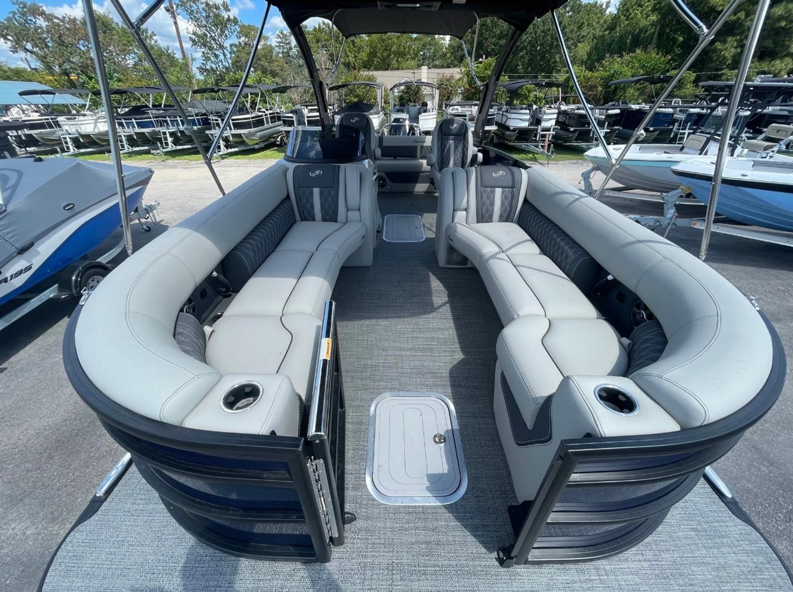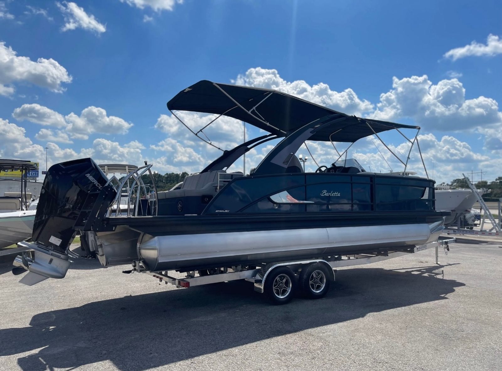 This Barletta boat for sale is perfect for a wide range of activities and occasions. Imagine setting out for a relaxing day of cruising with family, enjoying the comfort of the adjustable captain’s chair and the shade of the double bimini. Host unforgettable gatherings with friends, taking advantage of the spacious seating and stylish ambiance. For those who love adventure, the powerful 400 horsepower engine allows you to explore new waters and reach your favorite destinations with ease. Whether you are planning a peaceful sunset cruise, a lively party, or a weekend getaway, the Lusso L25UCA is equipped to deliver exceptional experiences every time.