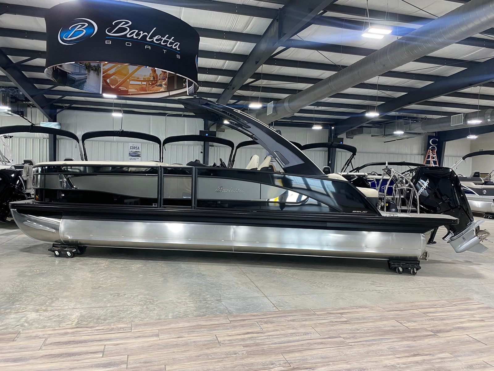 The Barletta Lusso L25UCA is a 27.5-foot pontoon boat that redefines what it means to enjoy leisure time on the water. With its generous length, this model offers ample space for entertaining, lounging, and enjoying the scenery. The 2026 model year brings fresh style and advanced engineering, making it one of the most sought-after Barletta boats for sale. Its sleek profile, highlighted by the Black Diamond sweep color and Gray Moonstone accent, ensures you’ll turn heads at every dock and marina.