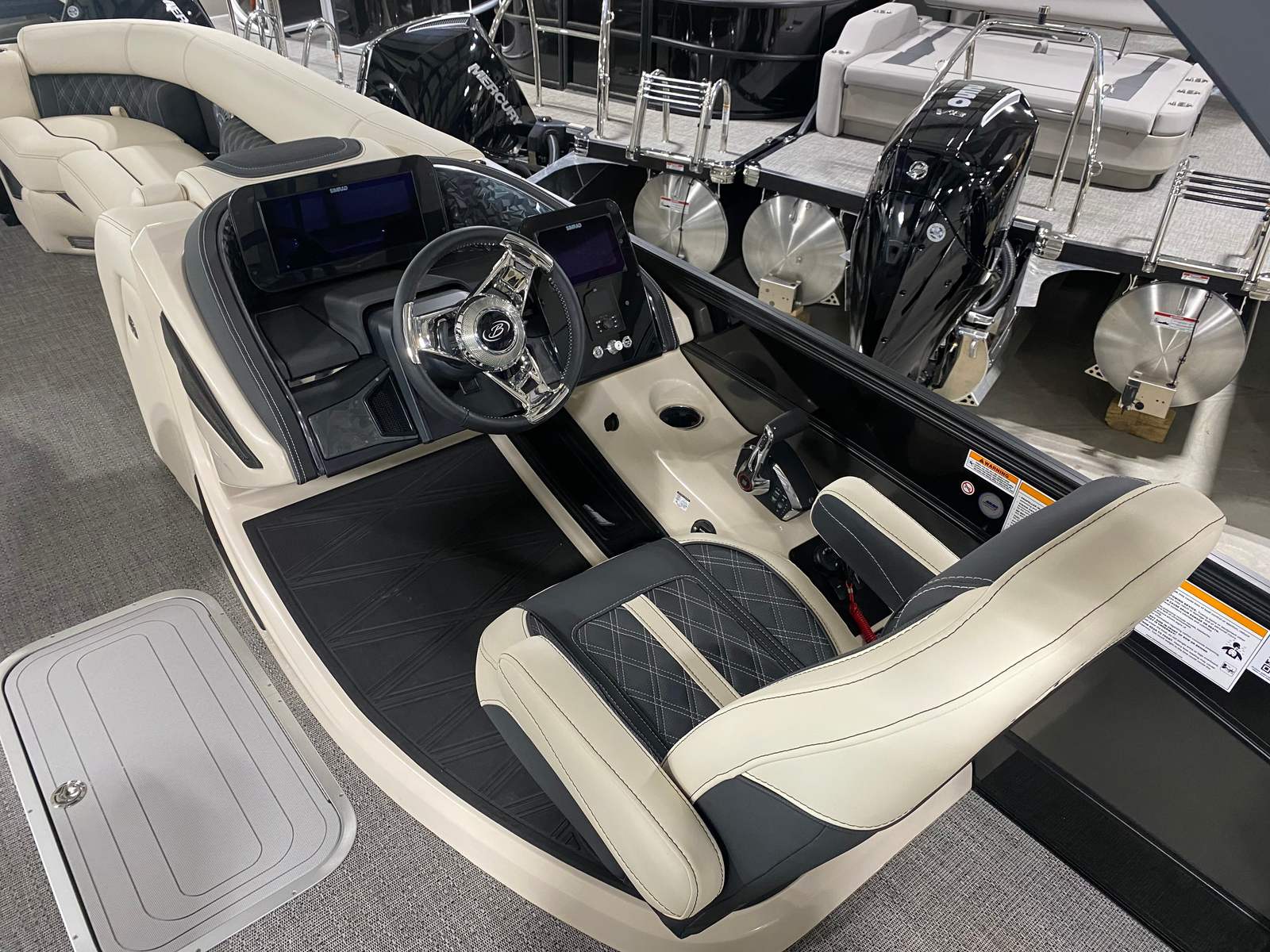 Beyond its beauty and performance, the Barletta Lusso L25UCA offers practical advantages that make ownership a breeze. The spacious deck provides plenty of room for gear, coolers, and water toys, making it easy to prepare for a day of fun. The pontoon’s design facilitates easy docking, so you can pull up to your favorite waterfront restaurant or marina with confidence. The efficient Mercury V10 Verado engine helps keep fuel costs manageable, allowing you to spend more time on the water and less time at the pump.Maintenance is straightforward thanks to the high-quality flooring and durable furniture, which are designed to withstand the rigors of regular use. The advanced lighting system not only enhances safety but also makes nighttime docking and storage simpler. Whether you’re a seasoned boater or new to the lifestyle, the Lusso L25UCA is engineered to make every aspect of ownership enjoyable and stress-free.