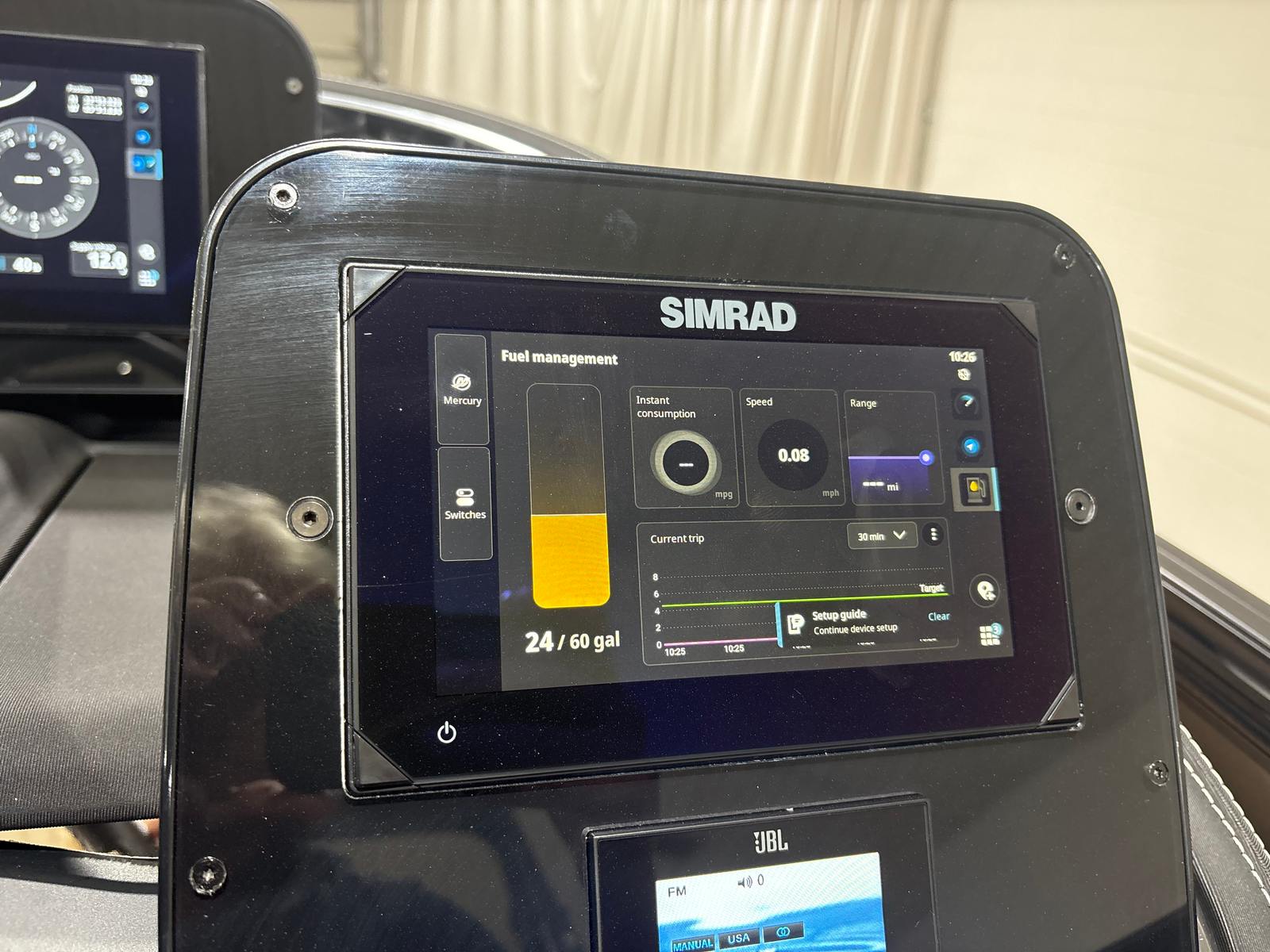 At the heart of the Barletta Lusso L25UE is a powerful Mercury 300L Verado V8 engine, delivering an impressive 300 horsepower with just one engine hour. This state-of-the-art outboard motor is renowned for its smooth, quiet operation and exceptional fuel efficiency, making it ideal for both leisurely cruises and exhilarating rides across the water. The Mercury Digital DTS Pre-Rig for VERADO engines with Vessel Link ensures seamless integration and precise control, while the hydraulic and power assist steering provides effortless handling and maneuverability. With digital gauges and a stainless steel prop, you can expect reliable performance and a responsive driving experience every time you set out.