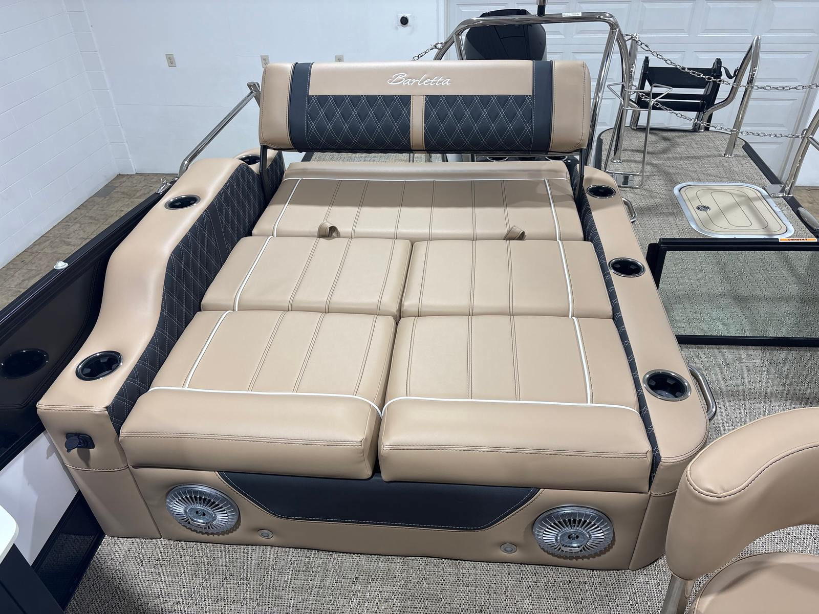 In summary, the 2026 Barletta Lusso L25UE is a top-tier pontoon boat that combines cutting-edge technology, luxurious comfort, and stunning style. With its powerful Mercury 300L Verado V8 engine, advanced digital controls, and premium features like the Blackout Package Lusso, Carmella Tan with Onyx furniture, Amore Tan flooring, and captivating exterior lighting, this boat is designed to deliver exceptional performance and unforgettable experiences on the water.If you’re searching for a pontoon boat for sale that offers the perfect blend of elegance, power, and versatility, the Barletta Lusso L25UE is the ultimate choice. Don’t miss your chance to own this remarkable vessel—contact your local dealer today to learn more and start your next adventure on the water.