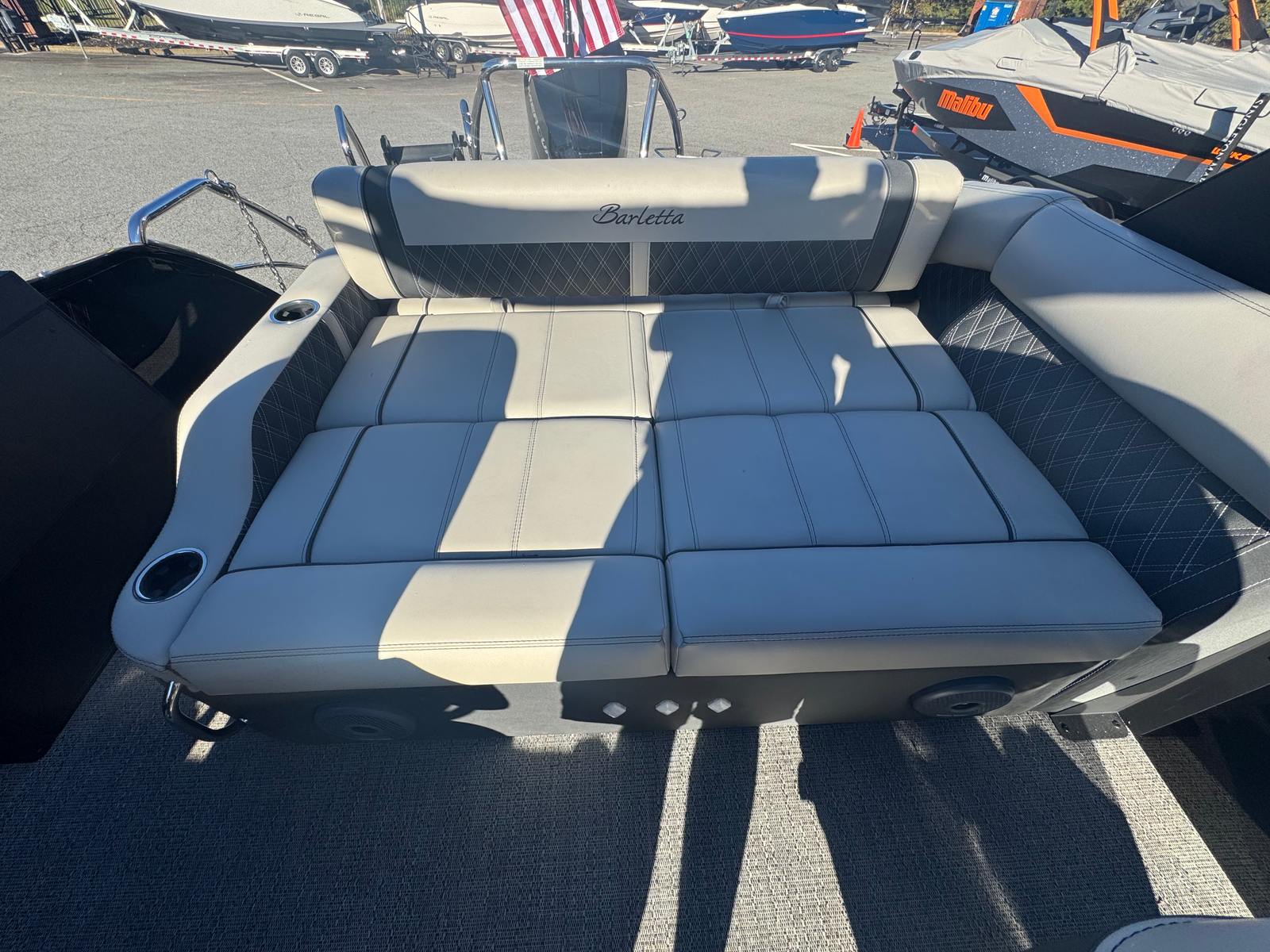 Owning the Barletta Reserve Leggera 23UCA means embracing a lifestyle of fun, relaxation, and social connection. The spacious deck layout provides plenty of room for family gatherings, parties with friends, or quiet moments soaking up the sun. The plush Marquesan Gray with Onyx furniture invites you to unwind in style, while the Amore Gray flooring ensures a comfortable and slip-resistant surface for all your activities.The powerful Mercury 400L V10 Verado engine offers exhilarating performance, making every outing an adventure. Whether you’re cruising at sunset, exploring hidden coves, or enjoying water sports, this pontoon boat delivers the versatility and excitement you crave. The advanced rigging and digital pre-rig systems make operation seamless, so you can focus on making memories with your loved ones.