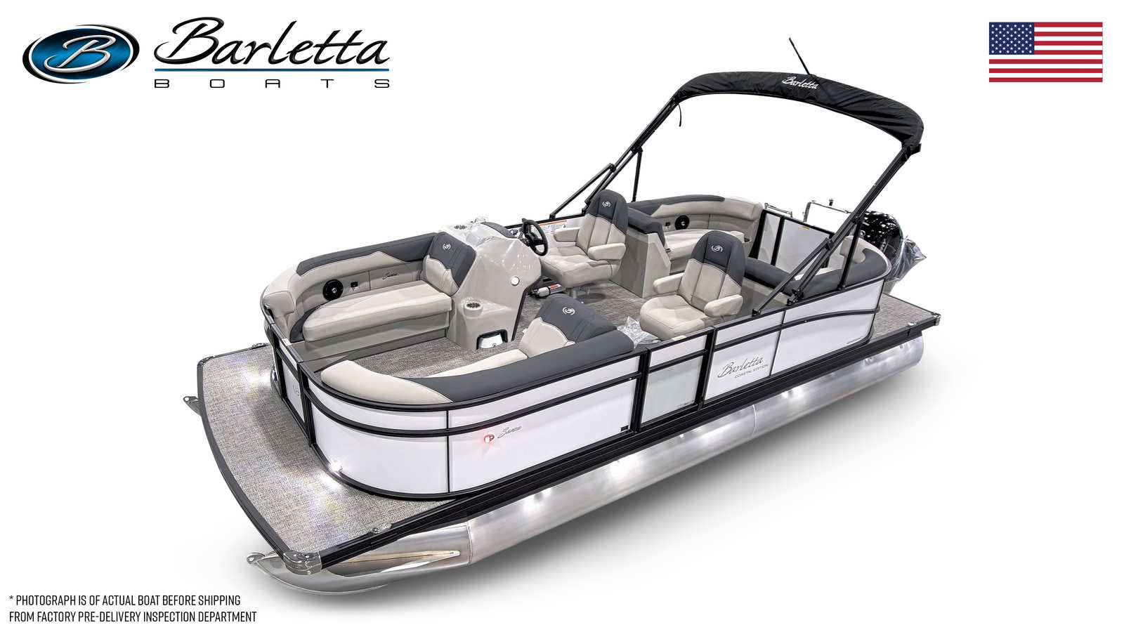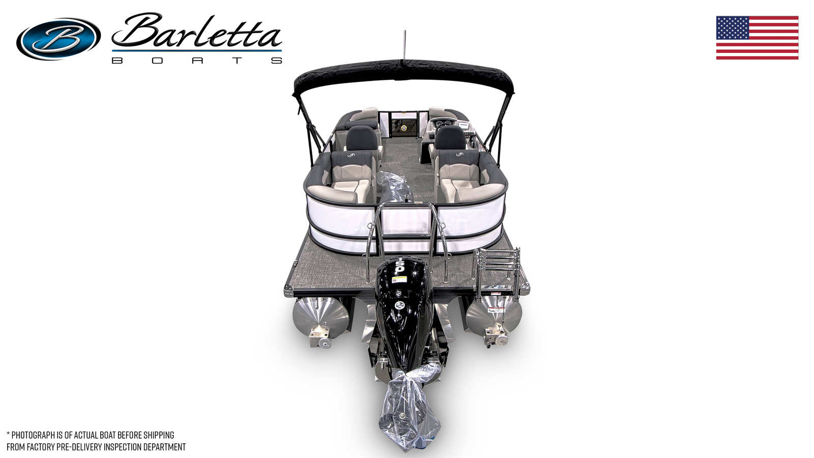 The 2026 Barletta Sanza S22QC comes loaded with features designed to maximize comfort, style, and enjoyment. The Coastal Edition Sanza ensures durability and performance in a variety of water conditions, while the Triple Toon Package Sanza adds an extra layer of stability and buoyancy. The striking Railskin Color in Winter White, paired with the Blackout Package Sanza, gives this pontoon a sophisticated and contemporary appearance.Step aboard and you will be greeted by luxurious Marquesan Gray with Onyx furniture, offering plush seating and ample space for relaxation. The Amore Gray flooring is both stylish and practical, providing a comfortable surface that is easy to clean and maintain. The stainless steel flag pole with an American flag adds a patriotic touch, making this pontoon boat a true standout on the water.