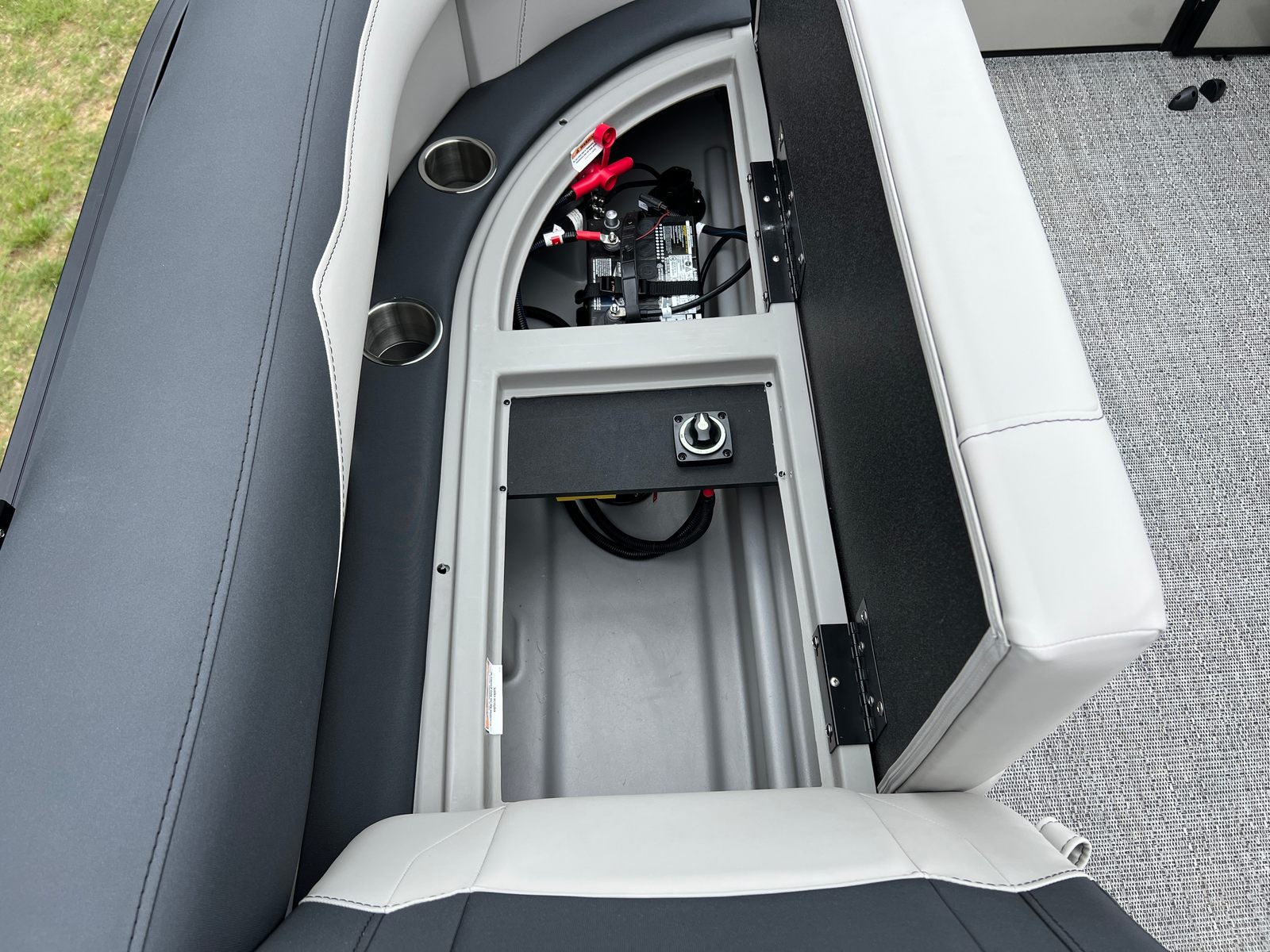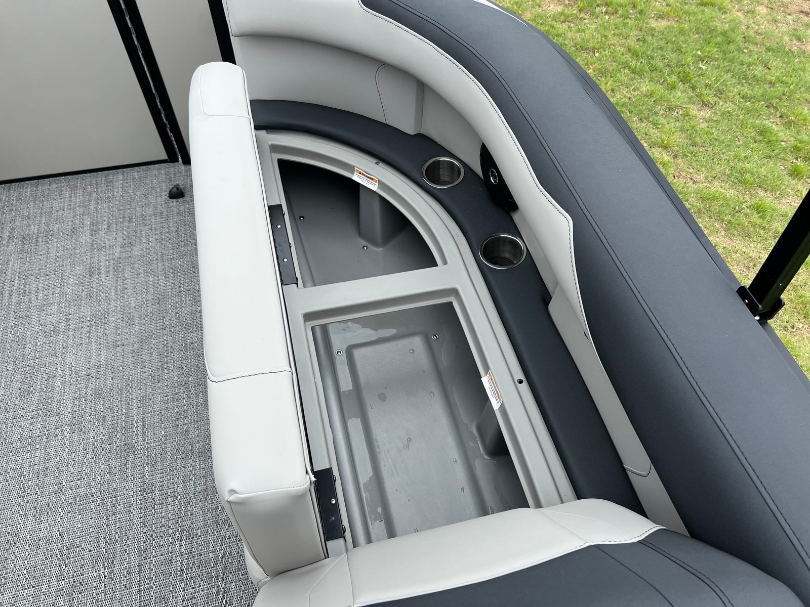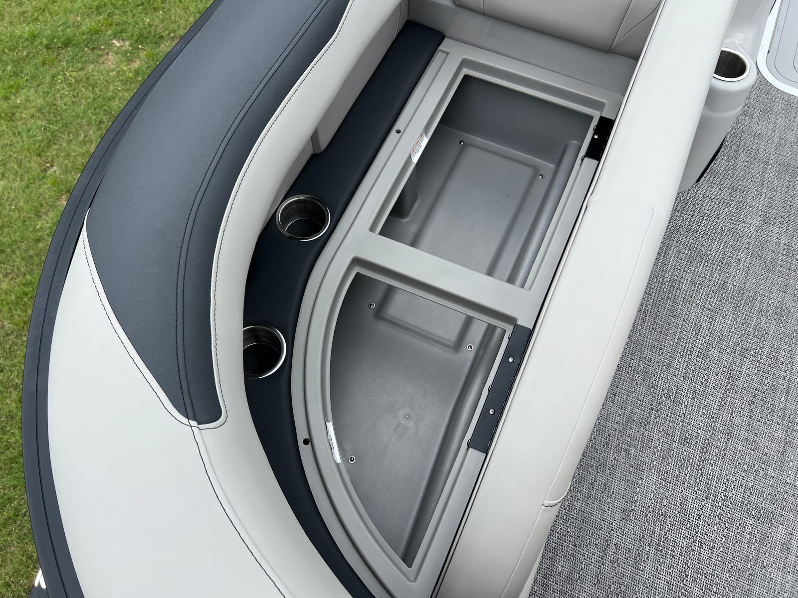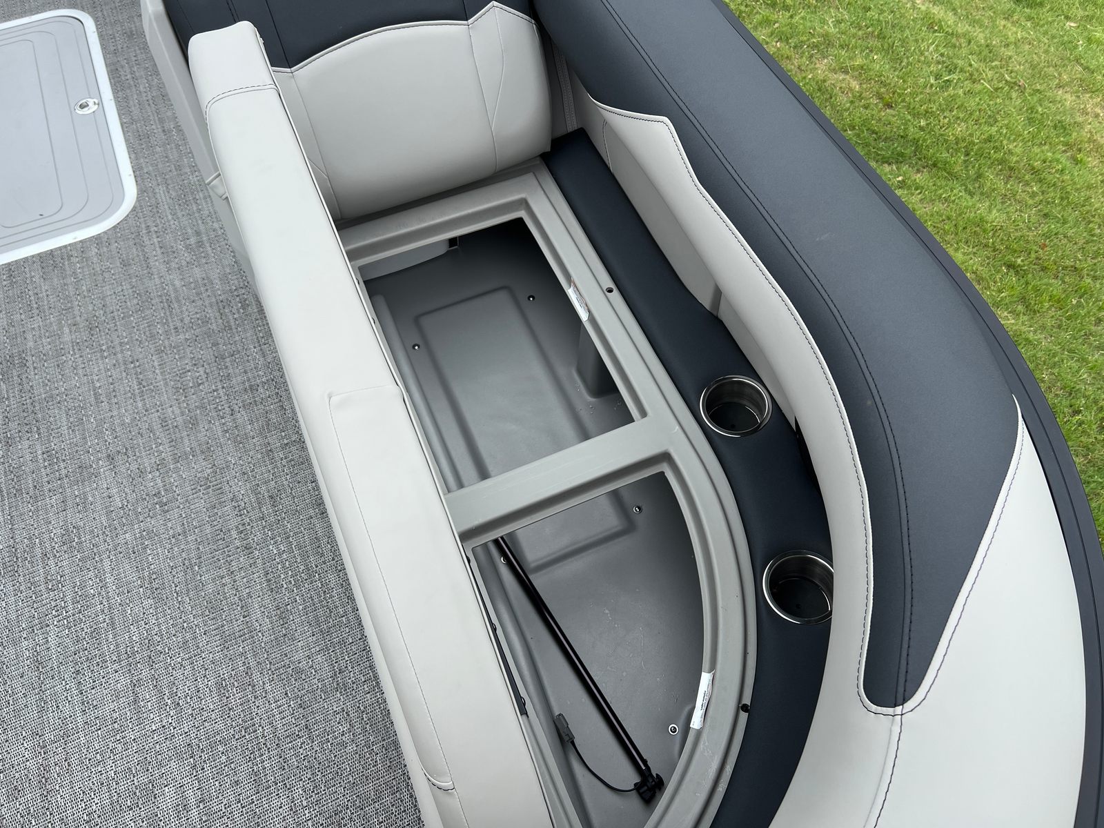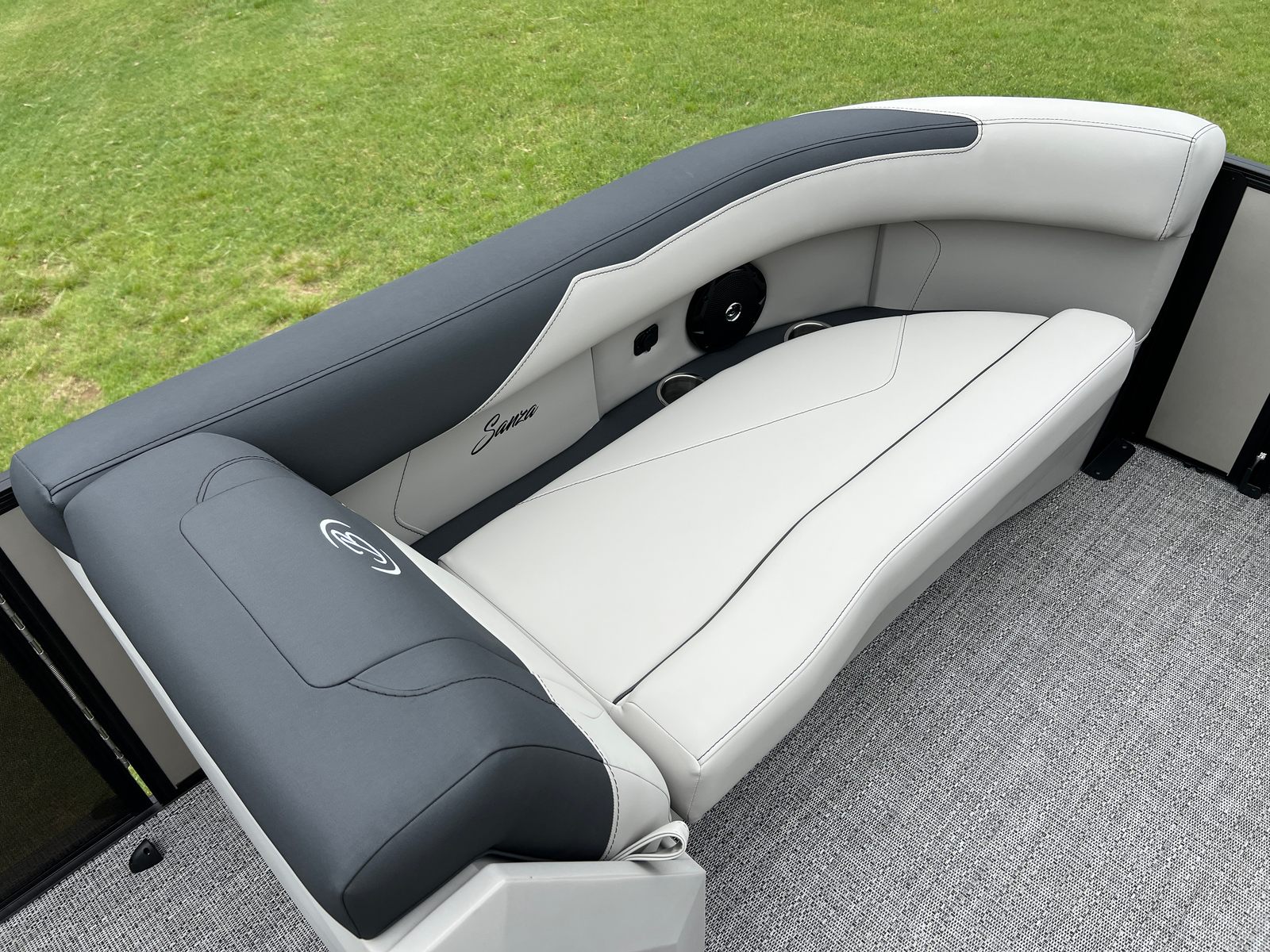 Step aboard the Barletta Sanza S22QC and discover a world of comfort and convenience. The Marquesan Gray with Onyx furniture creates a sophisticated and inviting atmosphere, perfectly complemented by the Amore Gray flooring that is both stylish and easy to maintain. The Sanza Triple Toon Package enhances stability and ride quality, making this pontoon boat ideal for a variety of water conditions.One of the standout features is the in-floor midship storage, providing ample space to stow away gear, water toys, and personal items. This thoughtful addition helps keep the deck clutter-free and organized, so you can focus on enjoying your time on the water. Every detail, from the premium upholstery to the innovative storage solutions, is designed to maximize your comfort and convenience.