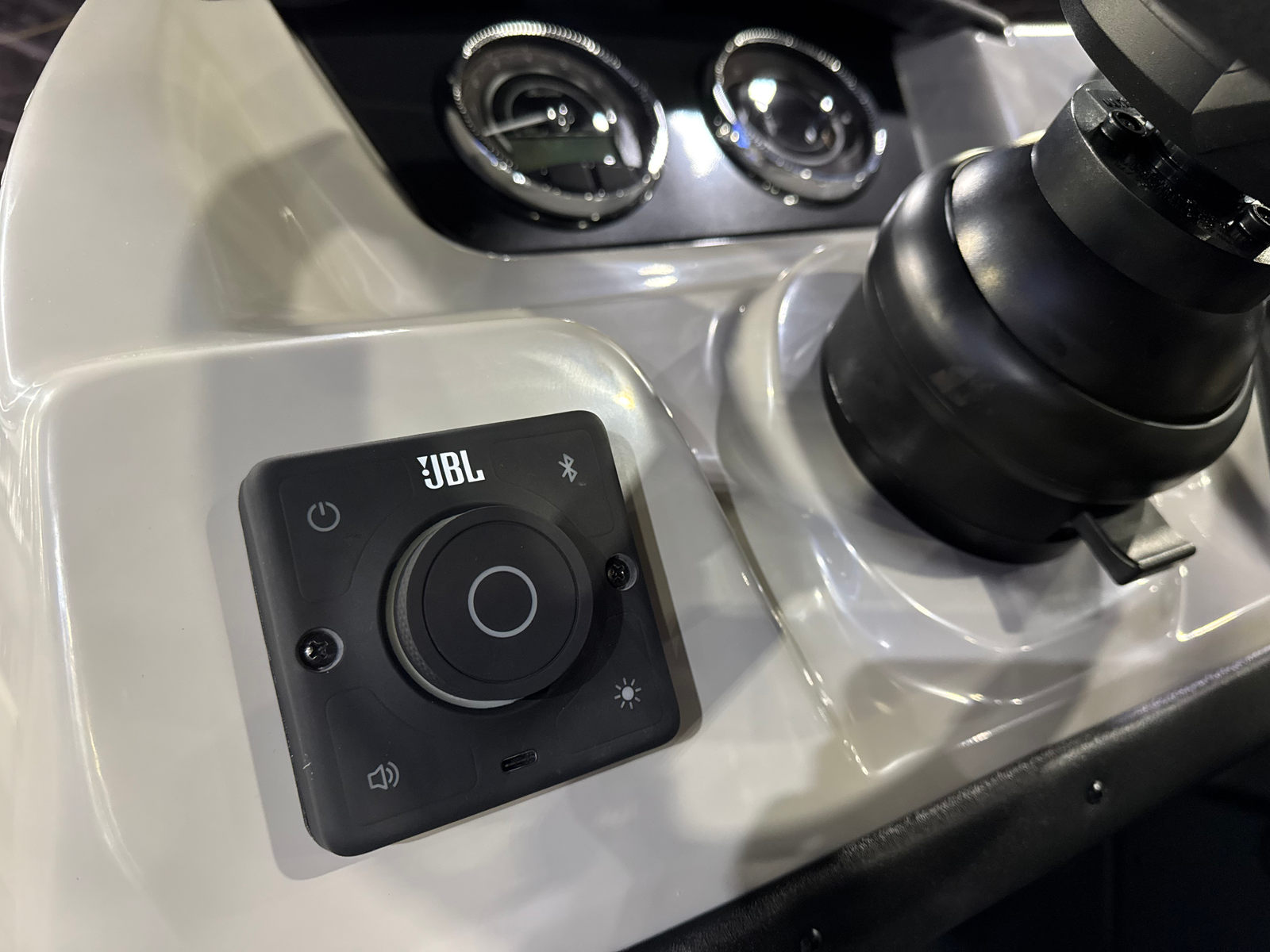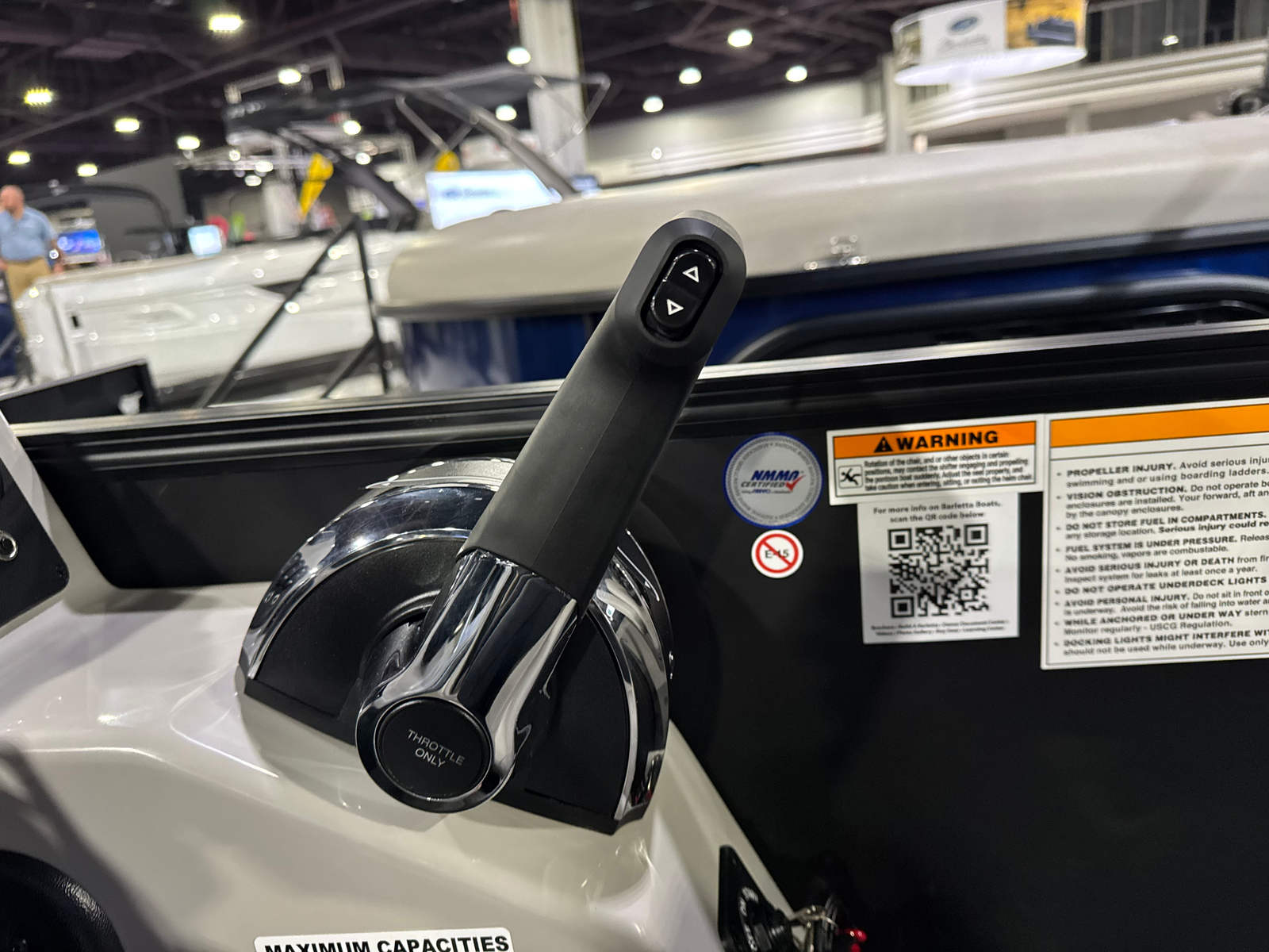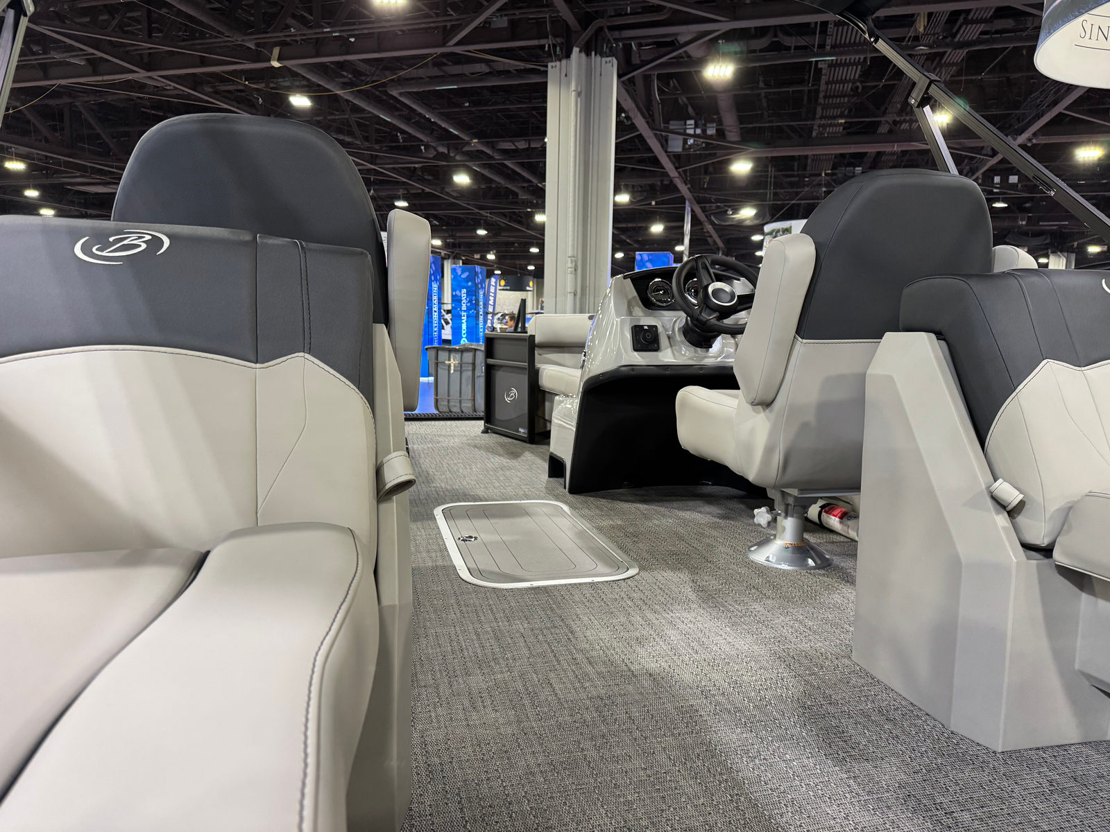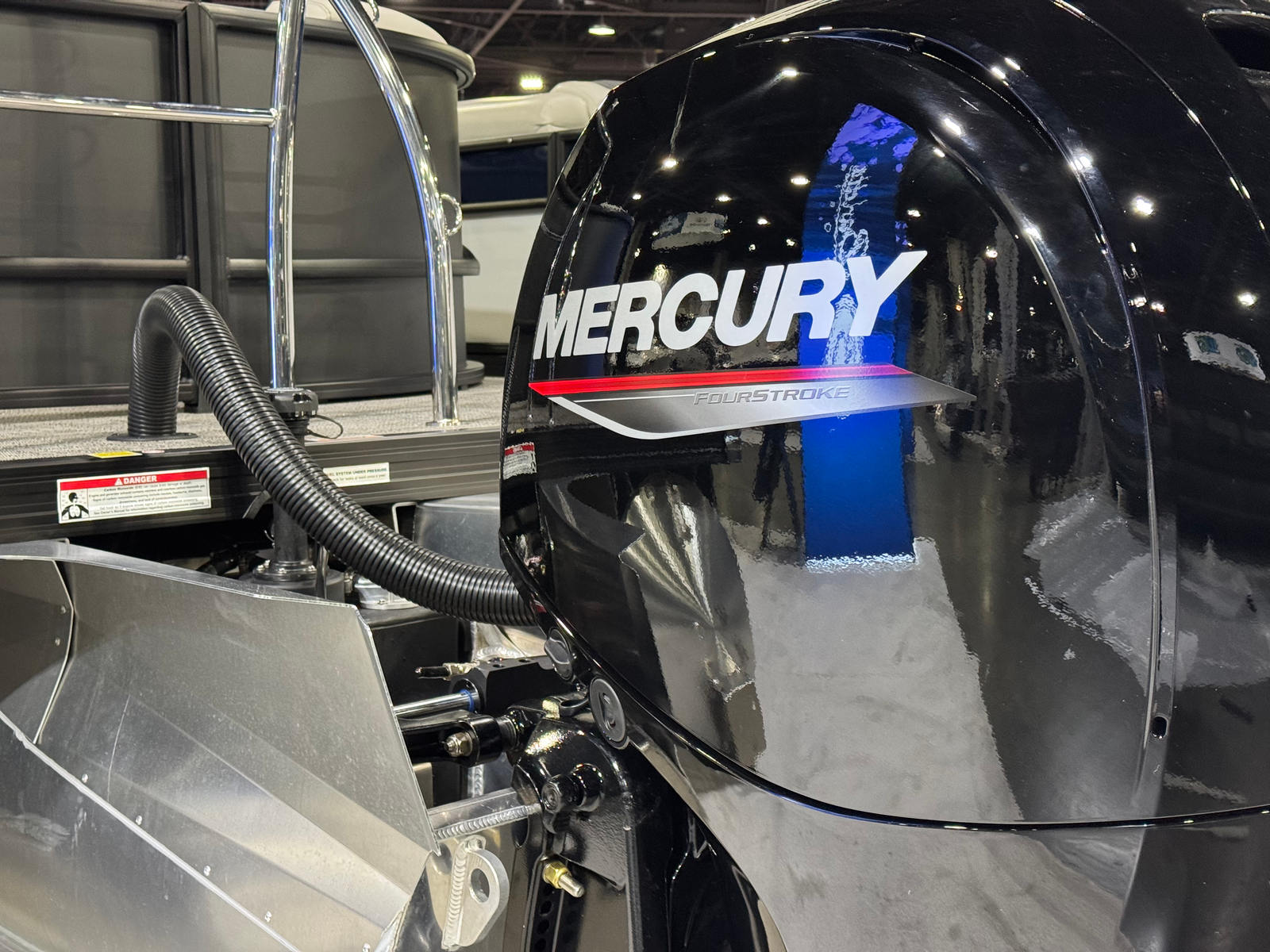 The Barletta Sanza S22QC is packed with special features that elevate your boating experience. The Matte Black Railskin color and Blackout Package Sanza provide a striking exterior look, while the Marquesan Gray with Onyx furniture offers plush seating and a contemporary vibe. The Amore Gray flooring is not only stylish but also durable and easy to maintain, ensuring your boat stays looking great season after season.One of the standout features is the Triple Toon Package Sanza, which adds an extra pontoon for enhanced stability and performance. This package also enables the inclusion of in-floor midship storage, providing ample space to stow your gear, water toys, and personal items securely and conveniently. The Mercury mechanical pre-rig and rigging with a standard prop make engine setup straightforward, so you can spend less time preparing and more time enjoying the water.