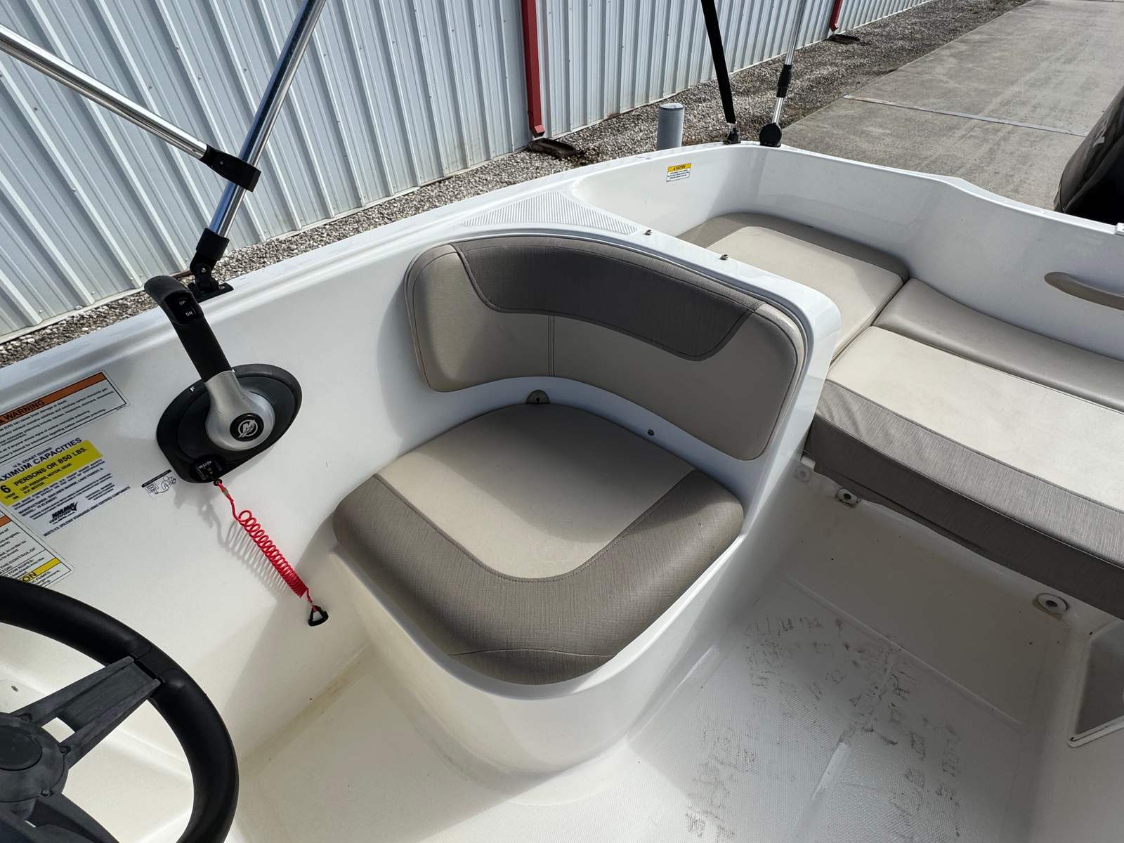 The Bayliner Element E16 is a deckboat that shines in a variety of scenarios. It’s perfect for family outings, where kids and adults alike can enjoy swimming, tubing, or simply relaxing in the sun. Anglers will appreciate the stable platform for casting lines and reeling in the day’s catch. Couples and friends can use the Element E16 for scenic cruises, picnics, or sunset adventures. Its compact size and easy handling make it a great choice for exploring new waterways or visiting secluded coves. Whether you’re planning a weekend getaway or a spontaneous day trip, this Bayliner boat for sale is ready to deliver fun and excitement.