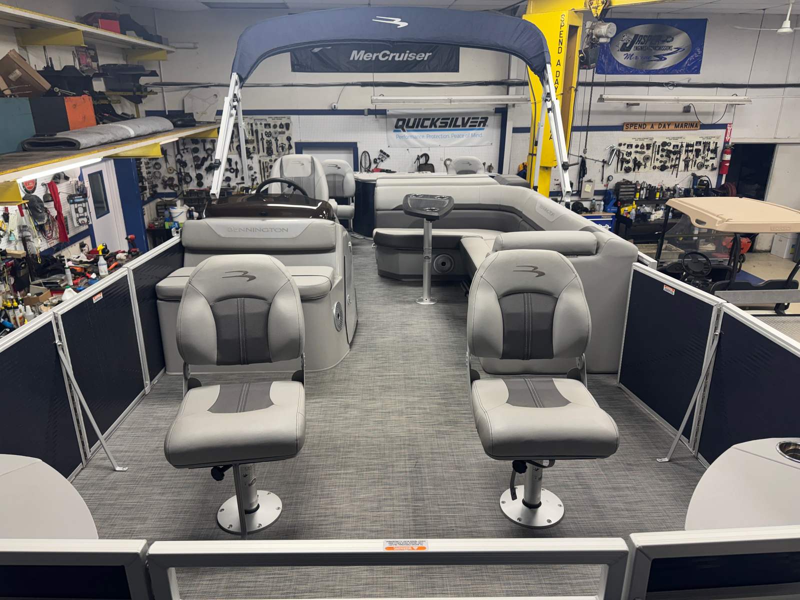 At the heart of the Bennington 22 SXF is a single, robust engine delivering 90 horsepower. This setup strikes the perfect balance between fuel efficiency and spirited performance, allowing you to cruise comfortably across lakes, rivers, or coastal waters. The 90 HP engine provides smooth acceleration and responsive handling, making it easy to navigate tight marinas or open stretches of water. Whether you are towing a tube, heading to your favorite fishing spot, or simply enjoying a leisurely cruise, the Bennington 22 SXF offers the power and reliability you need for a wide range of activities.