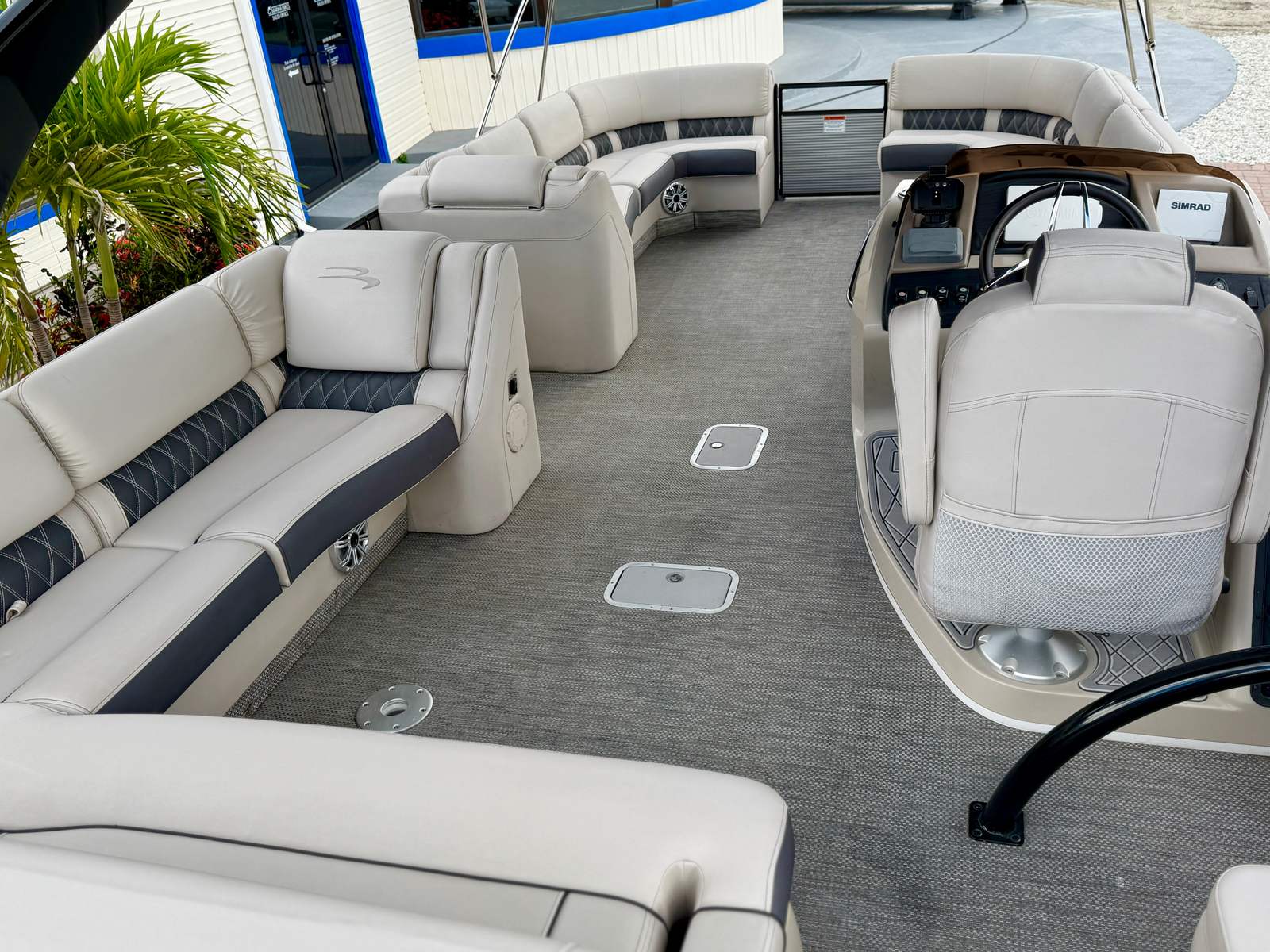 Powering this Bennington pontoon is a robust single engine with an impressive 425 horsepower, delivering smooth and reliable performance on the water. With only 298 engine hours, this boat has plenty of life left for countless adventures. The powerful engine ensures quick acceleration, effortless cruising, and the ability to handle a variety of water conditions with confidence. Whether you are towing water toys, exploring new coves, or simply enjoying a leisurely cruise, the performance of this Bennington boat for sale will exceed your expectations.